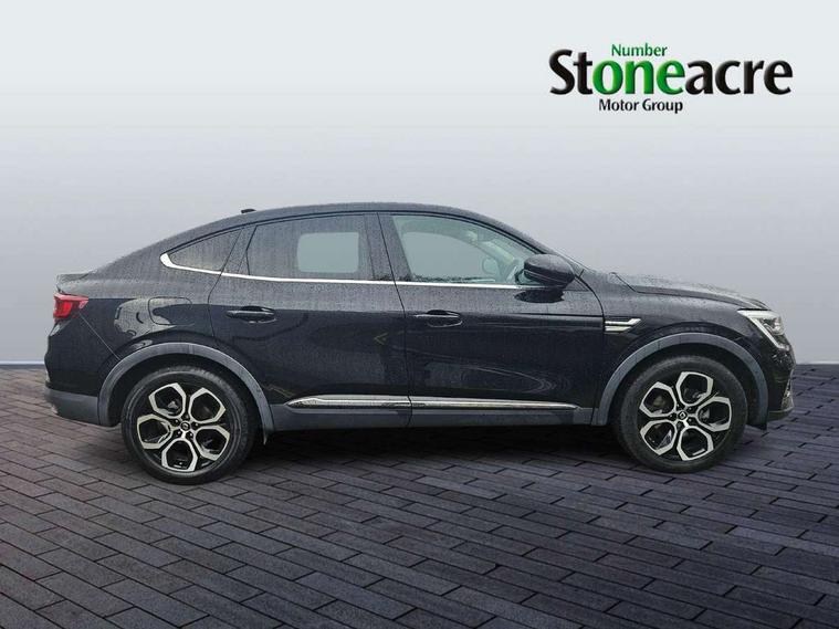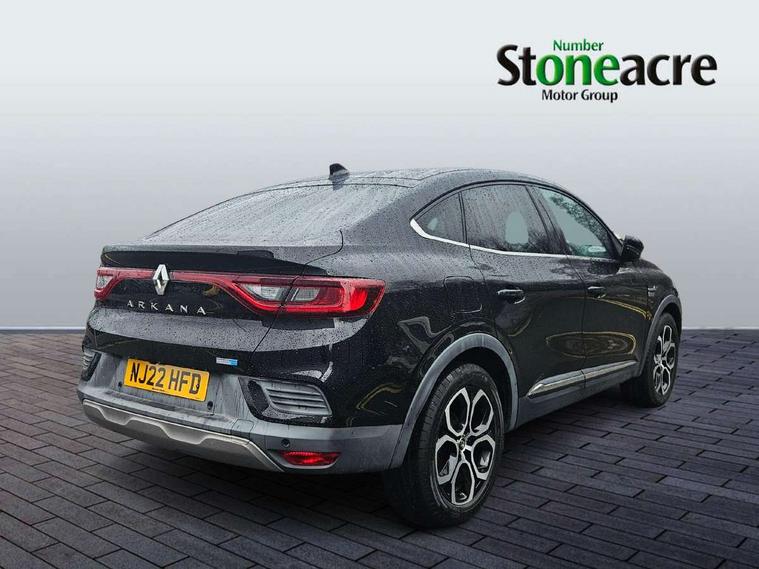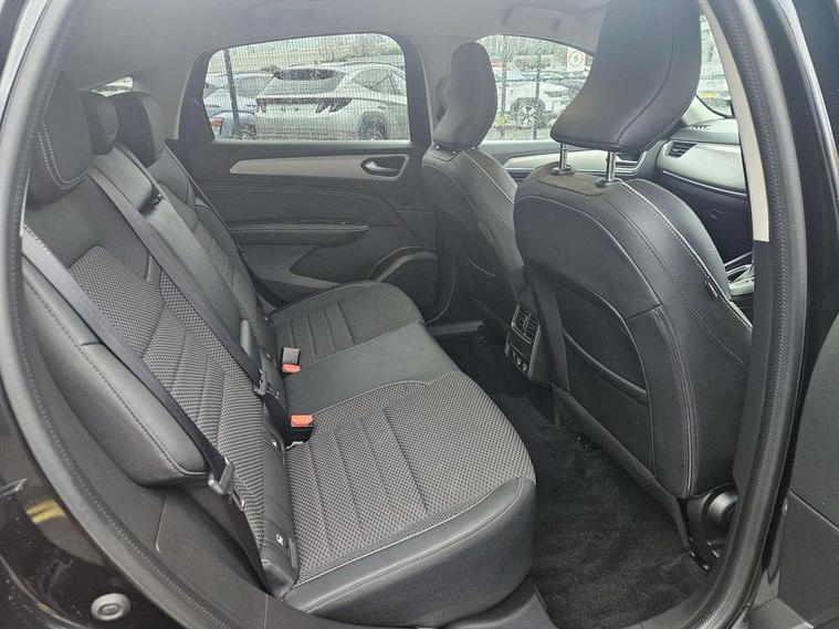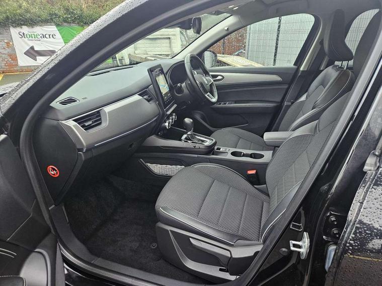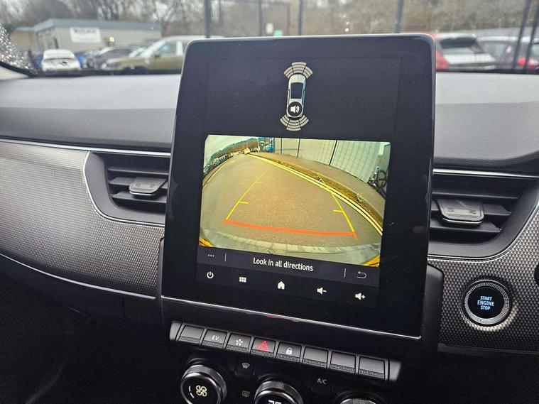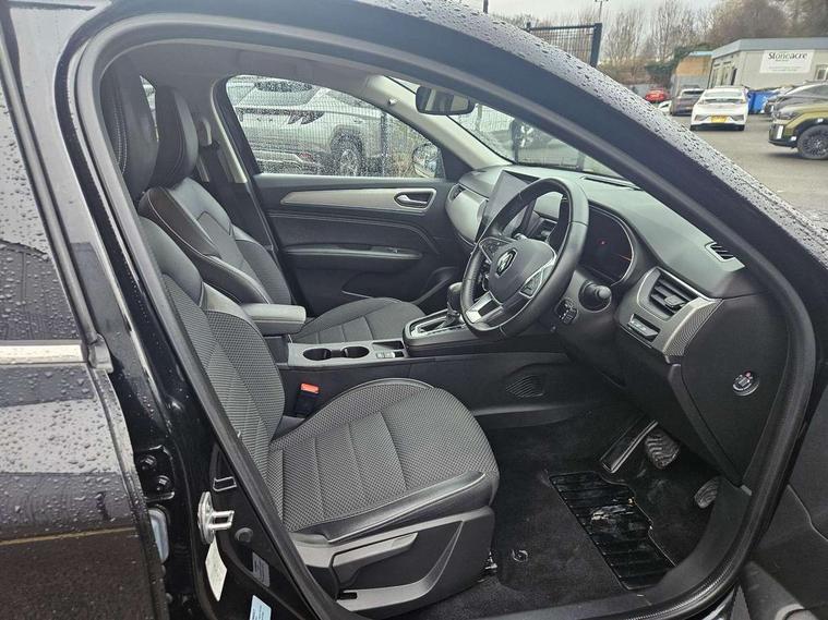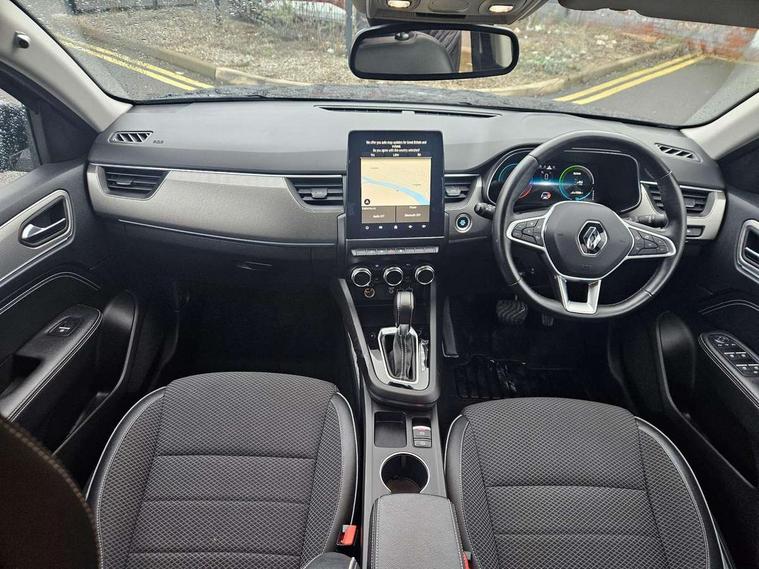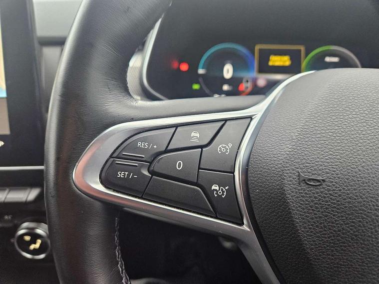 7" TFT Driver information display, Blind spot warning, Bluetooth system, EASY LINK 9.3" portrait touchscreen with navigation, Google search and traffic information, eCall emergency call system, Eco mode, EV button to activate pure mode, Front and rear parking sensors, Gear change indicator, Lane departure warning, Lane keep assist, Multi-sense - 3 driving modes and 8 ambient lighting, Rear cross traffic alert, Rear view camera, Renault automatic emergency assist, Smartphone integration compatible with Apple CarPlay and Android Auto, Traffic sign recognition with over speed prevention, Trip computer, Variable assistance electric power steering, Arkamys classic sound system with 6 speakers, DAB radio, USB port, 3rd brake light, Auto dimming rear view mirror, Automatic headlights, Automatic high / low beam, Automatic windscreen wipers with rain sensor, Black side door protection with chrome insert, Body coloured bumpers, C-shaped LED front signature lighting, Chrome decopart on wing (fender molding), Chrome window lower lining, Extra tinted rear windows and tailgate, Front and rear electric windows, Front driver window with one touch facility and anti-pinch function, Front grille with chrome on upper part, Full LED headlights, Grey front and rear skid plates, Heated rear window, Rain sensor, Rear windscreen wiper, Shiny black shark fin antenna, Side mirrors adjustable electrically, electrically foldable, with defrosting and temperature sensor, automatically foldable at vehicle closure, 3 seat bench in 2nd row, 60:40 split and fixed base rear seats, Automatic climate control with combined filter, humidity sensor and AQS, Central console with storage, Front and rear head restraints, Height and reach adjustable steering wheel, ISOFIX child seat fixing points on rear outermost seats, Leather steering wheel, LED front and rear roof lights, Rear air vents, Single front passenger seat, 3x3 point rear seat belts, ABS+EBA, Active emergency braking system, B Brake Mode - One pedal driving with increased regenerative braking, Distance warning alert, Driver airbag, Driver and passenger front and side airbag deactivation, Driver and passenger side airbags, Driver height adjustable seat belt, Electronic parking brake with auto hold, ESC (Electronic Stability Control), Front and rear no seatbelt warning sound, Front curtain airbags, Front head airbags, Hill start assist, Passenger airbag, Tyre pressure warning light, Anti drill door locks and locking fuel cap, Central door locking, Deadlocking system, Hands free keycard with Keyless access and start, RAID (Renault Anti-Intruder Device) automatic door locking, Rear side wing door and window child locking function (front driver door control panel), Superlocking, Thatcham alarm, 18" Pasadena diamond cut alloy wheels with grey inserts,