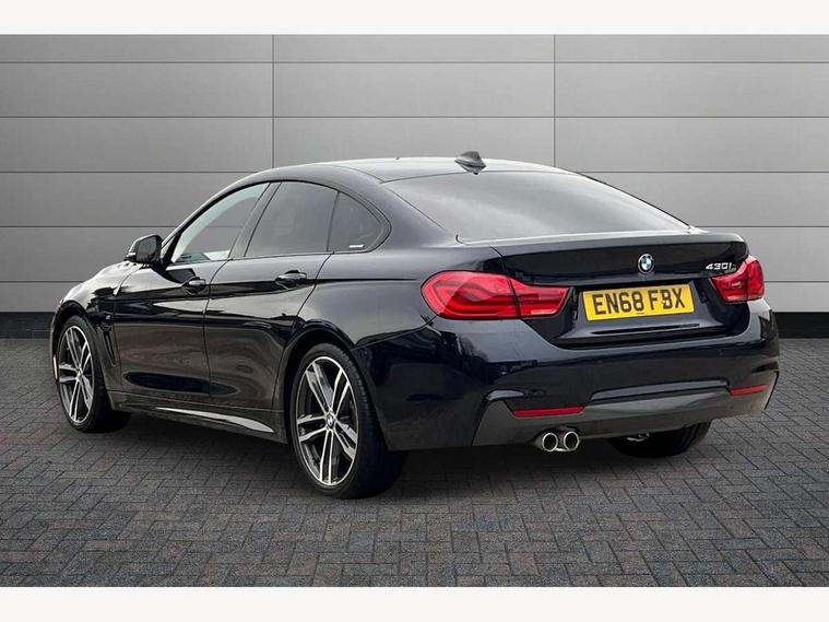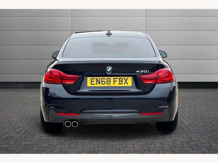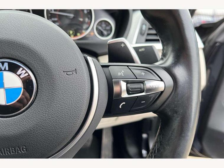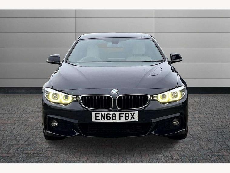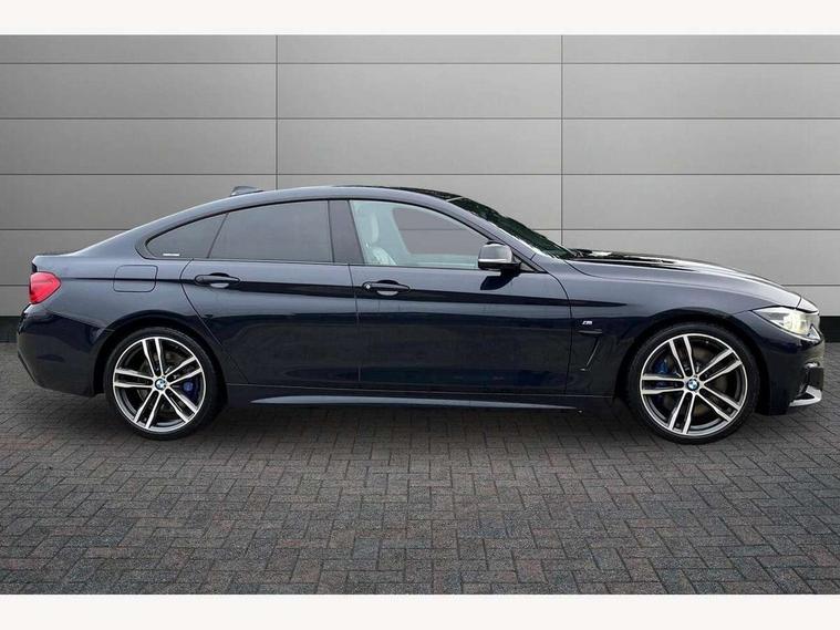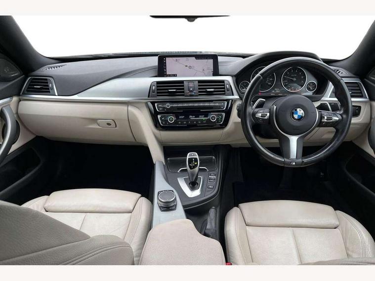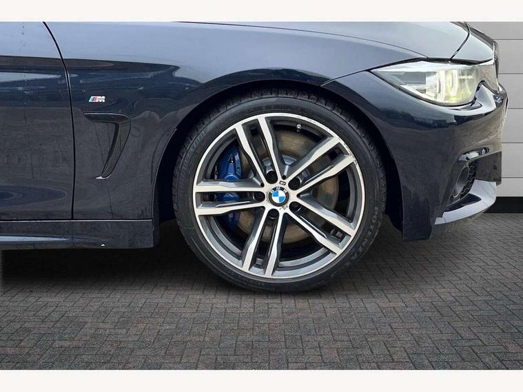 Auto start-stop, Automatic tailgate operation, BMW Online services, BMW remote services, BMW Teleservices, Brake pad wear indicator warning light, Check Control warning system for monitoring of lights and door/luggage compartment open warning, Control display - 6.5" colour display screen, Front/rear park distance control (PDC), iDrive Controller with 8 favourite buttons, Instrument cluster with speedometer with mph readout, tachometer, fuel gauge and oil temperature gauge, Lights on warning by audio warning signal when ignition is switched off, M Sport instrument cluster, Oil sensor for level and grade, warning by check control system, On board computer - average speed, fuel consumption, outside temp display with acoustic warning, clock/date, service interval, odometer/trip meter, Optimum shift indicator, Personal Profile - automatic lock when driving away selectable, Run flat indicator, Aluminium front suspension, Drive performance control with ECO PRO comfort + sport mode, Electronic differential lock, Five link rear suspension, Incorrect fuelling protection, Sport automatic transmission with steering-wheel mounted gearshift paddles and launch control, DAB tuner, Auto dimming rear view mirror, Body colour door handles, Body colour front bumper, Body colour mirror caps, Body colour roof mouldings, Chrome kidney grille with extra wide black, high gloss black vertical slats, Direction indicator, side repeaters, integrated in exterior mirrors, Door sill finishers with M designation, Dual exhaust tailpipes in left with chrome finisher, Dynamic brake lights, Electric front windows with fingertip open/close + anti-trap facility, Follow me home headlights, Front air inlet with high gloss black finish, Front and rear bumper system, Green tinted heat protection glazing, Heated windscreen washer jets, Heated, electrically adjustable exterior mirror aspheric on driver side, convex on passenger side, High gloss black rear bumper insert, High gloss shadow line, High level third brake light, LED daytime running lights, LED direction indicator lenses, LED eyebrow light, LED front fog lights, LED tail lights with 3D L-shaped LED light design, Lightweight engineering, M aerodynamic bodystyling, M designation side badges, Rain sensor including auto headlights activation, Shark fin antenna, Two speed adjustable intervals windscreen wipers, Visible VIN plate, Welcome lighting, Windscreen with grey shadeband, 12V sockets in front centre console and passenger footwell, 2 Rear seat headrests, 3 spoke leather M sport multifunction sports steering wheel, 4 grab handles, Air conditioning and radio control panel in high gloss black, Anthracite headlining, Automatic air conditioning with two zone control, Chrome centre console panel highlight, Driver and front passenger seat heating, Folding front centre armrest with storage compartment, Folding storage compartment with glasses holder + coin tray, Front and rear side armrests integrated into door trim, Front door storage with bottle holder, Front head restraints, Front sports seats with electric side bolster adjustment, Glove compartment, Glove compartment opener with chrome trim, Interior lighting, front centre over interior mirror and rear centre automatic interior light activation when door is opened, ISOFIX child seat preparation+airbag deactivation, Leather gearknob and handbrake lever, Load lashing eyes in luggage compartment, Reach + rake adjustable steering column, Rear centre armrest with 2 cupholders, Rear coded belt buckles, Storage compartment in rear centre console, Sunvisors with vanity mirrors and ticket pocket, Toolkit located in luggage compartment, Two front cup holders with a sliding lid, Velour floor mats, Extended lighting package - 4 Series Gran coupe, Media pack - Professional - 4 Series M Sport, Airbag - Front driver and passenger, front and rear head, front side, curtain head protection, manual deactivation of front passenger airbag possible, Anti lock braking system (ABS) with brake assist, Automatic Stability Control (ASC), Battery safety cut-off, BMW emergency call, Brake drying, Brake energy regeneration, Brake pretensioning, Cornering brake control (CBC), Crash sensor activating central locking release, hazard warning lights, Dynamic brake control, Dynamic stability control + (DSC+), Dynamic Traction Control - DTC, Front and rear ventilated brake disc, Front seatbelt force limiters, Hill start assistant, Pyrotechnically pre-tensioned front seatbelts, Seat belt security check for driver, Side impact protection, Twin horns, Tyre pressure monitoring with three level warning strategy, Variable torque distribution, Warning triangle and first aid kit, Central locking switch for all doors, fuel filler cap and luggage compartment, Electronic engine immobiliser, Remote control integrated key with blue inset, Start/stop button with Comfort Go keyless engine start and auto Start/stop deactivation button, Thatcham category 1 alarm, Reduced rolling resistance tyres, Run flat tyres,