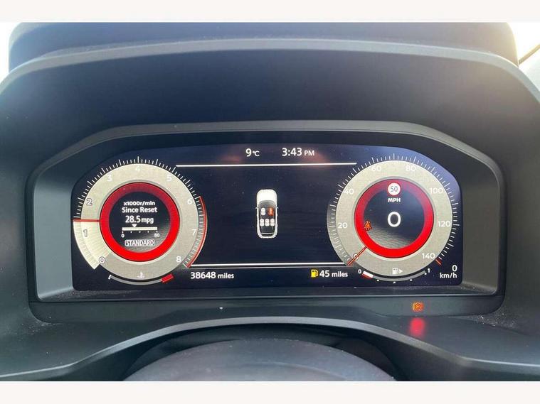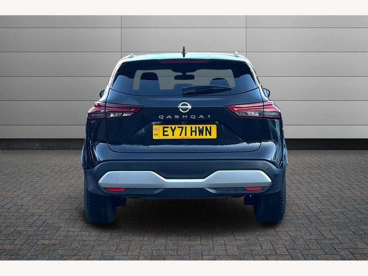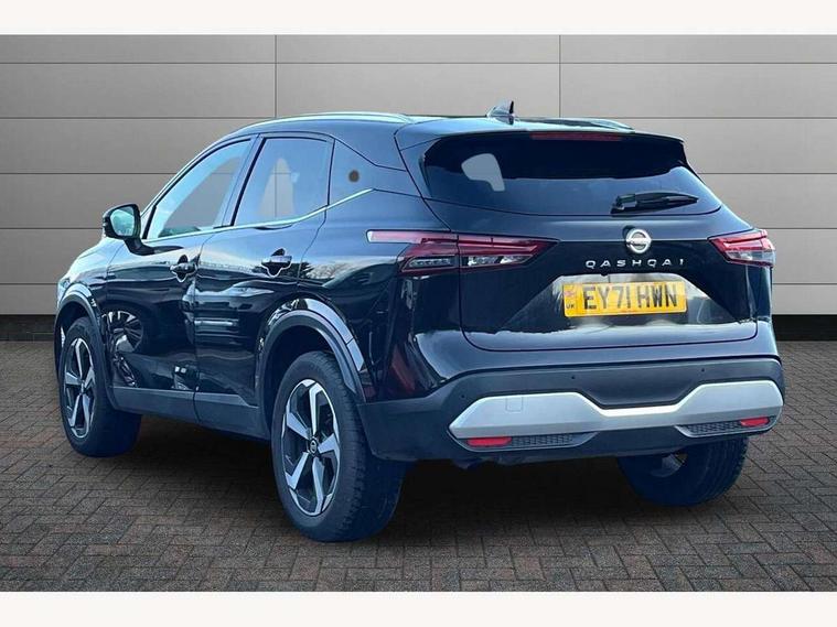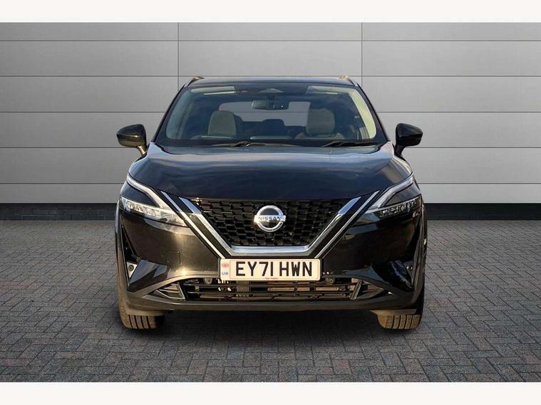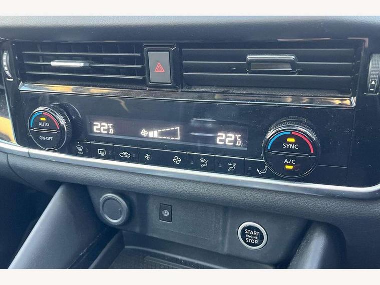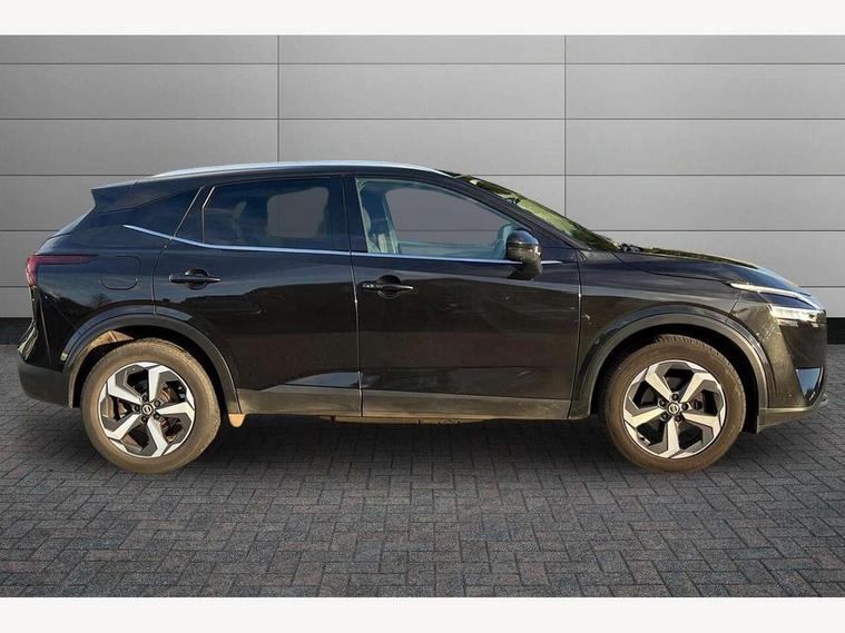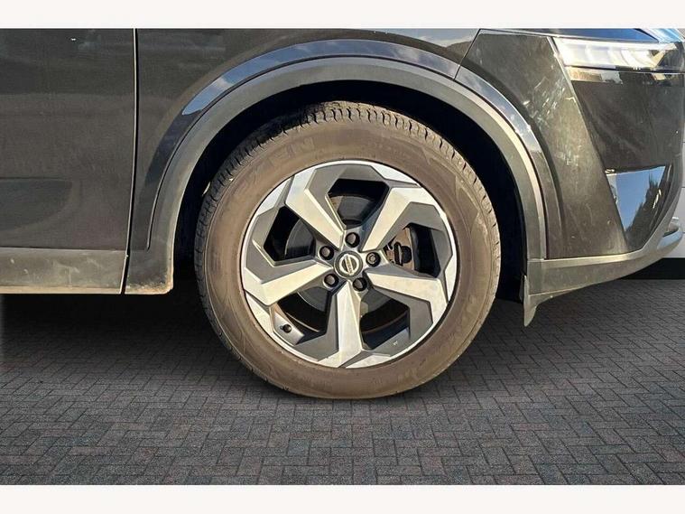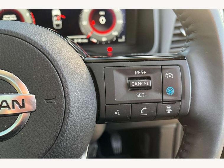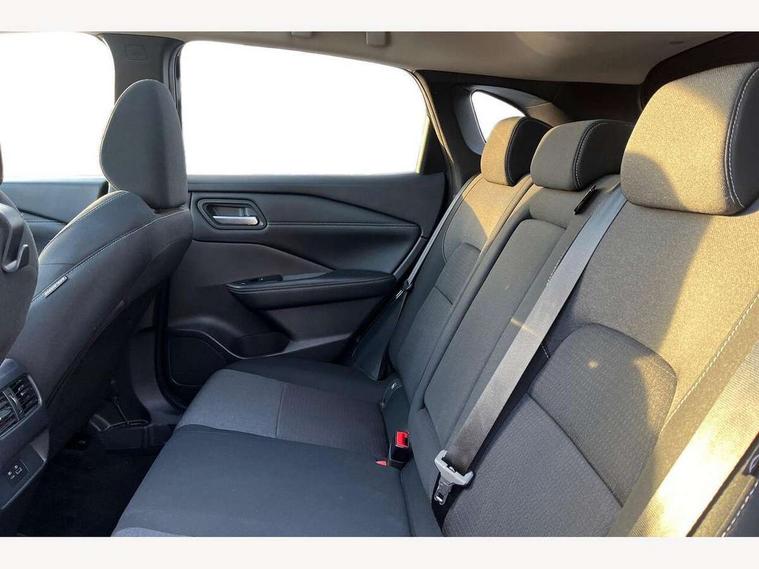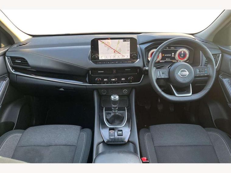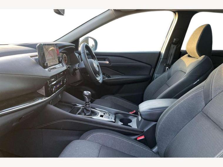 Blind spot warning, Drive modes (sport, normal, eco), Electric speed sensitive power steering, Emergency and breakdown call, Front and rear parking sensors, Full Digital 12.3" TFT Digital Combimeter, Idle stop/start system, Intelligent Cruise control (ICC), Intelligent driver alert system, Intelligent forward collision warning, Intelligent lane intervention, Lane departure prevention, Lane departure warning system, Moving object detection, Push button starter, Rear cross traffic alert, Traffic sign recognition with legal speed adjustment, Trip computer, 6 speakers, AM/FM audio system with DAB, Bluetooth audio streaming, Front USB connections (Type-A and Type-C), Rear USB charging only ports (Type-A and Type-C), 3rd brake light, Auto dimming rear view mirror, Auto rear wiper when reversing, Body colour mirror caps, Body coloured door handles, Bodyside mouldings, Chrome side window finisher, Electric auto folding door mirrors, Electrically adjustable and heated door mirrors with LED turn indicator, Fixed panoramic glass roof with electric sunshade, Follow me home headlights, High beam assist, Intelligent auto headlights, LED daytime running lights, LED rear lights, One touch front and rear electric windows with remote opening and closing, Partially body coloured bumpers, Privacy glass, Rain sensor, Rear roof spoiler, Rear side wing doors, Rear styling plate, Roof rails, Shark fin antenna, Splash free rain sensing wipers, Super UV and infrared cut glass, Three blink turn signal, 12v power socket in dashboard and luggage, 2 way electrical driver lumbar adjustment, 2x Rear coat hooks, 3 bench rear seats in 2nd row, 3 rear headrests, 4 grab handles, 6 Luggage hooks - 4 on floor, 2 on side, 60/40 split folding rear seat bench, Ambient lighting around centre console, Centre console storage tray, Chrome interior door handles, Cloth monoform upholstery, Driver and front passenger sunvisors with illuminated vanity mirrors, Driver seat back pocket, Dual zone automatic climate control with pollen filter, Front centre console and armrest, Front cupholder, Front door with bottle holders, Glovebox with light, Hard trunk cover, Height adjustable driver's seat, Height adjustable front headrests, Leather shift knob, Leather steering wheel, Luggage board system, Luggage space lighting, Manually adjustable passenger (slide recline + lifter), Multifunction steering wheel, Passenger seat back pocket, Rear armrest with 2 cupholders, Rear door bottle holders, Single front passenger seat, Soft PVC kneepad, Steering wheel switches, Tilt/telescopic adjustable steering wheel, Two rear isofix child seat anchorage points with top tether, Welcome light and console tray ambient lighting, Connectivity Pack - Qashqai, Tech Pack (Drive Assist + HUD), 3x3 point rear seatbelt pretensioners + load limiters, ABS, ESP, EBD and brake assist, Active brake limited slip, Auto hold function, Child locks on rear doors, Curtain and front side, far side airbags, Driver and passenger airbags, Driver, passenger and 2nd row rear seat belt reminder, Electronic parking brake, Front seatbelt pretensioners + load limiters, Height adjustable front seatbelts, Hill start assist, Intelligent blind spot intervention, Intelligent front emergency braking with pedestrian, cyclist recognition and junction assist, Intelligent rear automatic braking, Tyre pressure monitoring system, Vehicle dynamic control, Capless fuel filler, Engine immobiliser, Nissan i-key, Remote central door locking with deadlocking, Thatcham Cat.1 alarm, 18" Diamond cut alloy wheels,