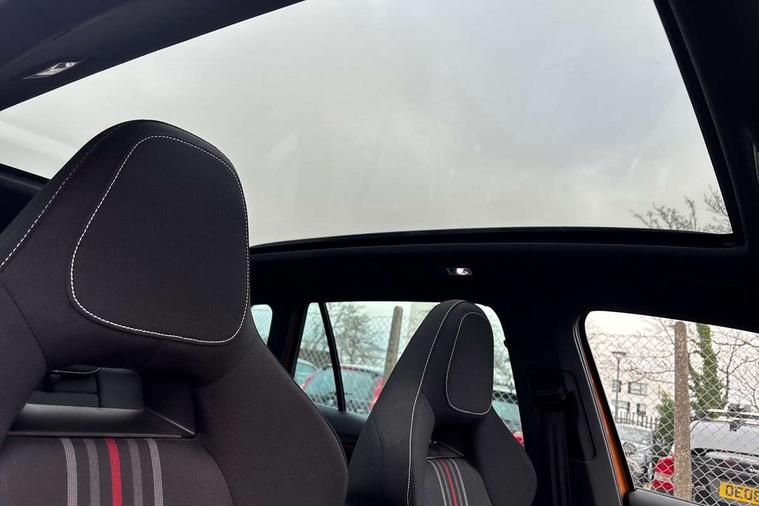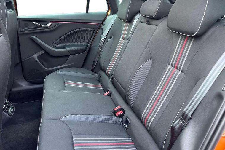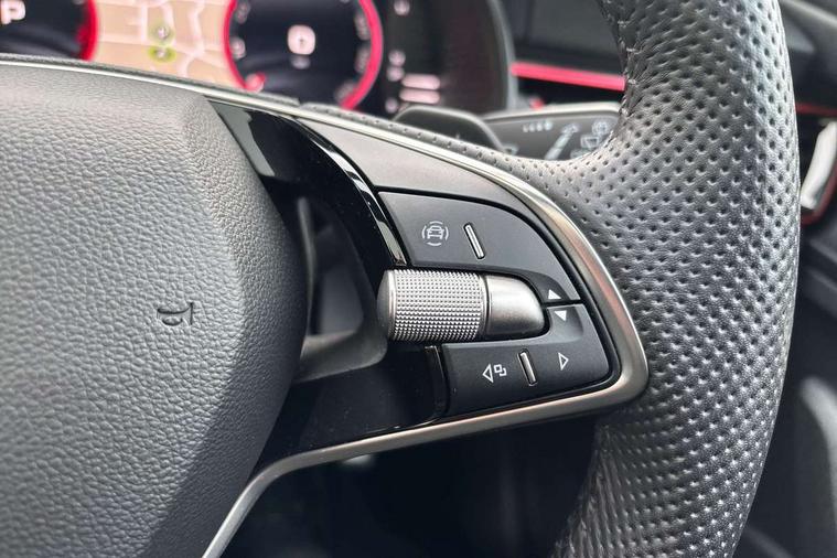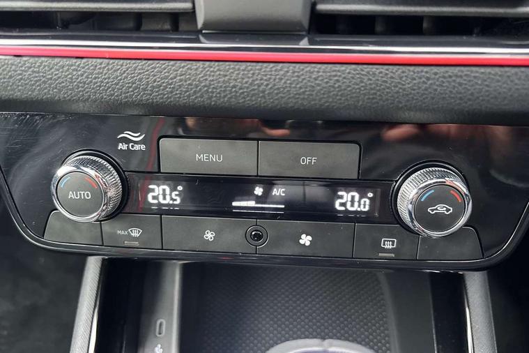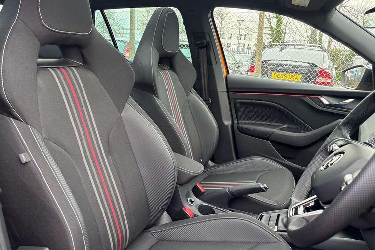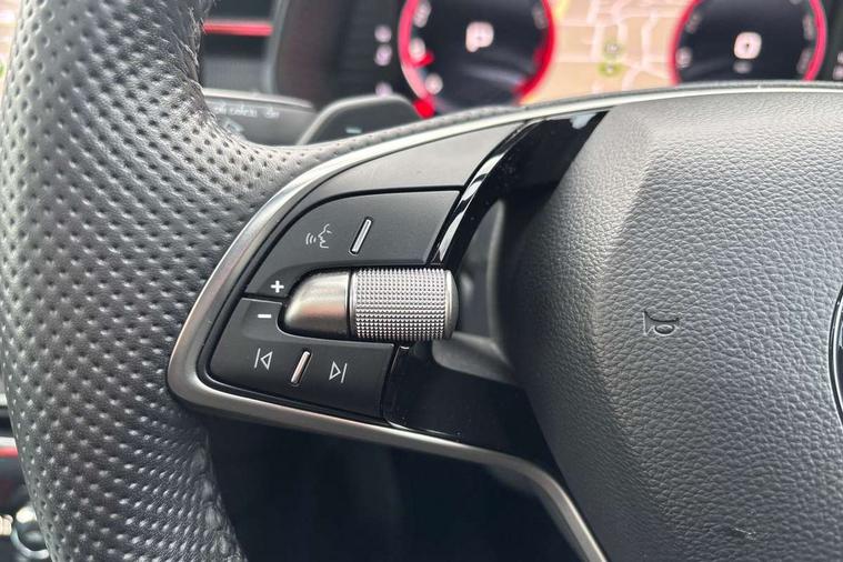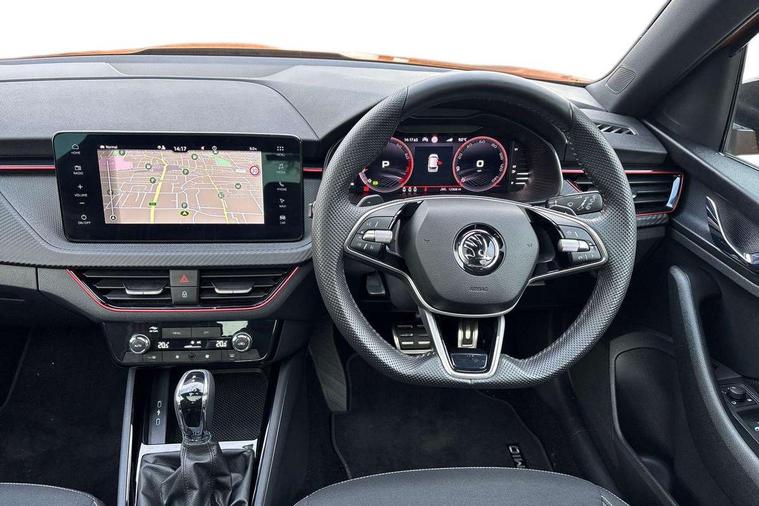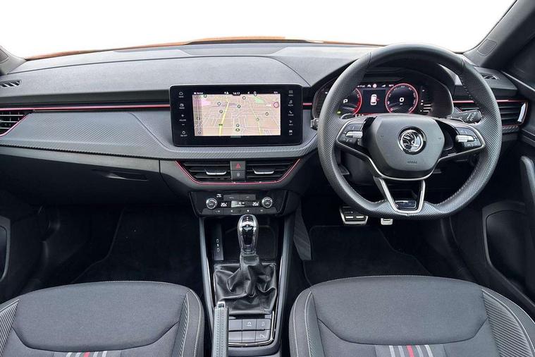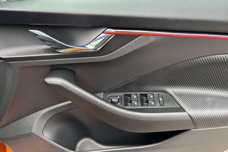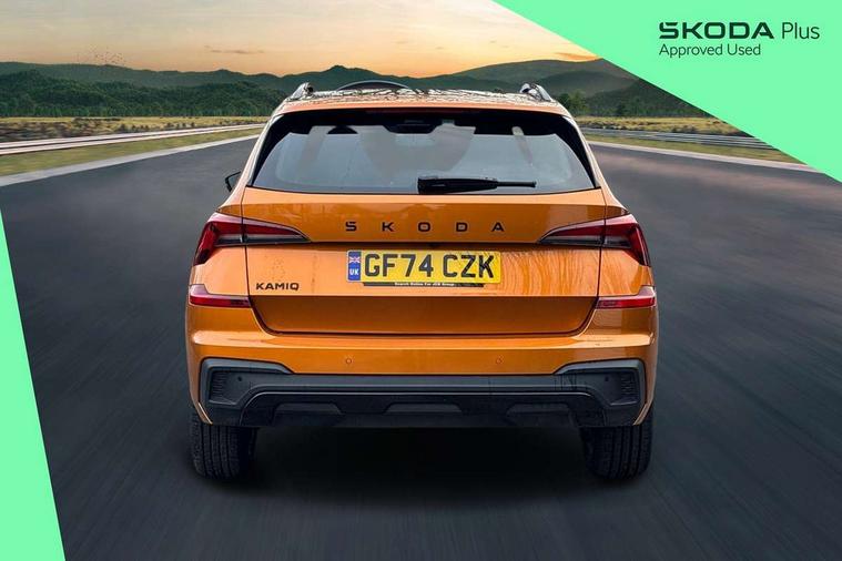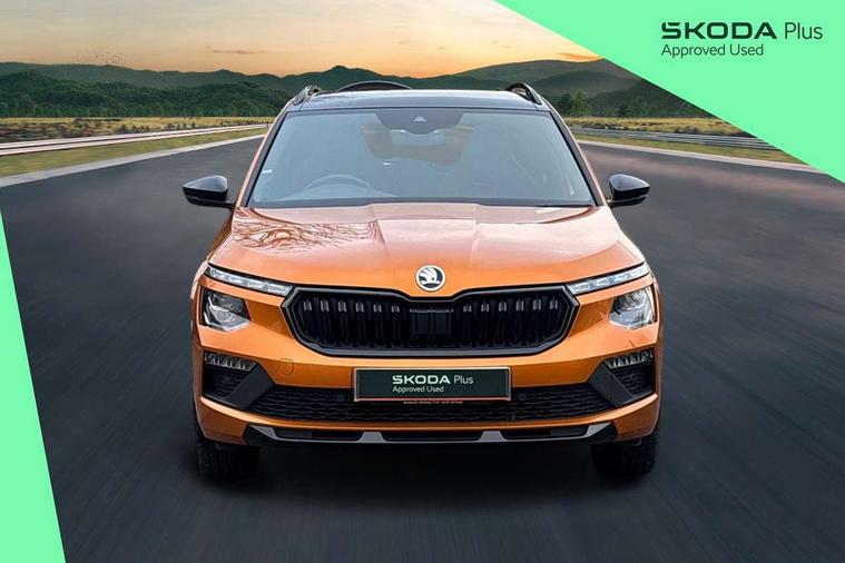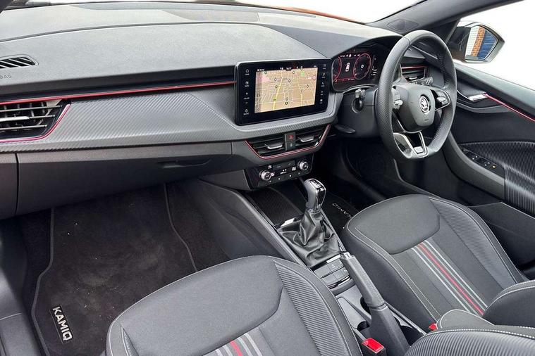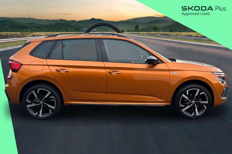 Advanced driver attention and drowsiness monitor, Bluetooth system, E-call, Front assist system, PAS, Rear parking sensors, Service indicator, Speed limiter, Traffic sign recognition, Virtual cockpit with 10.25" display, Voice control system, Wireless smartlink, 4 USB C ports, 8 Speakers, 9.2" Skoda navigation display, DAB Digital radio, Auto dimming rear view mirror, Automatic headlight control with coming home and leaving home feature, Black door mirrors, Black radiator grille, Black rear diffuser, Black roof spoiler, Body colour bumpers, Body colour door handles, Boot lettering in black, Extended tailgate glass, Fixed panoramic sunroof with black roof rails, Front and rear electric windows, Heated rear window, LED daytime running lights, LED high beam, LED low beam, LED third brake light, Light sensors, Monte carlo plaque, Privacy glass, Rear side wing doors, Rear wiper, Ticket holder inside windscreen, 12V socket in luggage compartment, 3 seat bench in 2nd row, Aluminium pedals, Ambient lighting in white/red, Art leather carbon decor inserts, Art leather carbon door inserts, Black roof lining, Cargo elements, Chrome inner door handles, Driver and passenger sun visors with vanity mirror, Dual zone climate control, Front and rear roof lights, Front centre armrest, Front head restraints, Glove compartment with illumination, Height adjustable driver seat, Height adjustable front passenger seat, Ice scraper, Inner circulation control with pollen filter, ISOFIX on front passenger seat, Isofix preparation for back seats, Leather gearknob and handbrake lever, Manual lumbar support for front seats, Monte Carlo cloth upholstery, Net package and top tether hooks in boot space, Net under rear shelf, Pocket on the back of both front seats include mobile phone pockets, Rake/reach adjustable steering wheel, Reading lights, Rear centre armrests, Red hotstamping, Single front passenger seat, Sports seats, Textile floor mats, Third rear headrest, Top tether for front passenger seat, Umbrella in driver's door, Light and view plus package - Kamiq, 3x3 point rear seatbelts, Airbags - driver and front passenger, Disc brakes, ESP, Extended and predictive pedestrian/cyclist protection, Front passenger airbag deactivation switch, Front side airbags with curtain airbags, Hill hold control, Manual leather parking brake, Manual rear child locks, One tone horn, Seatbelt reminder for driver an co-driver, Traction control, Tyre pressure monitor, Anti-theft alarm system with interior monitoring, backup horn, towing protection and remote central locking with SAFE system, Anti-theft wheel bolts, Electronic engine immobilizer, 18" Ursa black diamond cut alloy wheels,