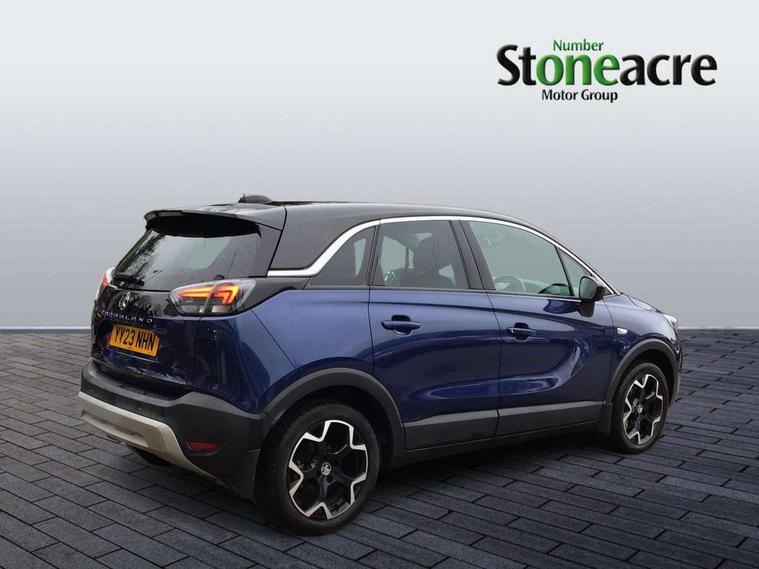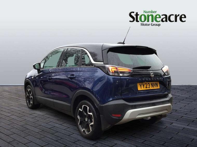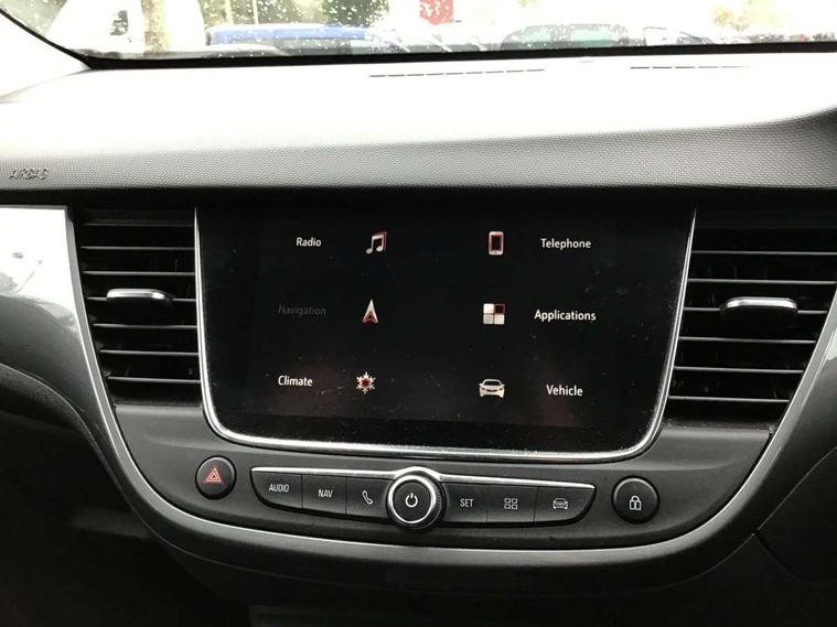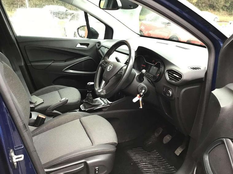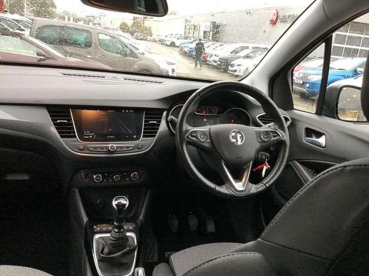 3.5" monochrome instrument colour display, Audible lights on warning, Bluetooth connectivity, Cruise control + speed limiter, Digital clock with automatic RDS time adjustment, Driver drowsiness alert system, E-call, Forward collision warning, Instrumentation - Speedometer, rev counter, low fuel gauge warning light + water temperature gauge warning light, shift up/down indicate light, Lane departure warning system, Multi function trip computer, Multimedia sat nav pro with 8" colour touchscreen, AM/FM, Bluetooth streaming, Bluetooth mobile phone portal, apple CarPlay/Android Auto + 6 speakers, Outside temperature display with ice warning, Refridgerant low indicator, Service interval indicator, Speed sensitive power steering, Speed sign recognition, Vauxhall connect, Front wheel drive, 2 x USB connections, DAB Digital radio, Steering wheel mounted audio/phone/cruise controls, 2 speed wipers/wash wipe/intermittent wipe, Alloy effect front and rear skid plates, Automatic anti dazzle rear view mirror, Automatic headlamp levelling system, Automatic high beam control with cornering light, Automatic lighting control, Black door mirror housings, Black radiator grille with chrome bar, Black roof, Body colour door handles, Body colour front and rear bumpers, Chrome effect upper window moulding, Dark tinted rear side windows + tailgate window, Electrically adjustable and heated door mirrors, Front power windows with express up/down and anti-pinch function, Hazard warning lights, Headlamps for left side traffic, Heated rear window, Integrated tailgate spoiler, Intermittent rear wash/wipe, LED daytime running lights, LED front fog lights, LED Headlights, LED side repeat indicators, LED tail lights, Rain sensitive windscreen wipers, Rear fog lights, Rear power windows with express up/down and anti-pinch function, Rear side wing doors, Rear wing door, Reversing light, Side window demist vents, Solar heat absorbing windscreen and windows, Third brake light, Welcome lighting, Windscreen demist vents, 12v power outlet - front, 2 way adjustable front passenger seat, 2 way front passive headrests, 3 rear seats, 3 spoke flat bottomed leather covered steering wheel with bezel decoration, 4 way electrically adjustable lumbar support for drivers seat, 60/40 split folding rear seat backrest, Adjustable rear seat backrest, Air recirculation facility, Ambient lighting, Anti submarining ramps in front seats, Cabin particulate filter - removes dust, airborne particles and pollen, Centre console, Driver and front passenger illuminated vanity mirrors with flip up covers, Driver's seat armrest, Drivers ergonomic active seat with 8 way manual adjustable driver seat , height, reach and backrest, Dual zone electronic climate control, Fade up/fade down on interior lighting, Four adjustable facia vents, Front door pockets with bottle holders, Front map reading lights, Fully carpeted luggage area, Glovebox with lid, Height adjustable front/rear head restraints, Illuminated load area, Interior courtesy light operated by all doors, Isofix system on outer rear seats, Jet black premium leather side bolsters, Luggage compartment cover, Multi-speed fan with Illuminated control, Open storage compartment in centre console, Passenger assist handles, Reach + rake adjustable steering column, Rear centre headrest, Rear door pockets with bottle holders, Rear floor ventilation ducts, Rear reading lights, Satin chrome effect bezel on steering wheel, Seat cushion extension, Single front passenger seat, Sparkle cloth/vinyl upholstery, Storage pockets on front seat backs, Two drinks holders in centre console, Rear view camera plus pack - Crossland, Winter pack - Crossland, 3x3 point rear seatbelts, 6 airbags - Driver and co-driver front, front side, head curtain roof airbags, front and rear row coverage airbags, ABS, Automatic emergency braking with pedestrian detection, Child locks on rear doors, CSC - Cornering stability control, Deactivate switch for side impact airbags, Deformation zones front and rear, Dual seatbelt pretensioners on front seats, EBD - Electronic brakeforce distribution, Energy absorbing steering column, Engine drag torque control, ESP + traction control, Front and rear seatbelt unfastened audible warning and warning light, Front side impact airbag, Hill start assist, Hydraulic Brake Assist (HBA), Hydraulic brake boost, Inertia reel lap and diagonal seatbelts for all seats, Passenger airbag deactivate switch, Pedestrian detection, Rear seat belt pretensioners, Reinforced passenger safety cell, Seatbelt load limiter, Side impact protection beams, Smart seatbelt reminder for front and rear seats, Tyre pressure monitoring system, 2 remote folding keys, Electronically protected audio equipment, Engine immobiliser, Locking wheel nuts, Remote central deadlocking, Remote control central locking activation switch on driver door, Remote control central locking operates on doors, tailgate and fuel filler flap, Remote security alarm system, Visible vehicle identification number, Black facia with silver trim insert, Black trim inserts on front doors, Cluster black with chrome rings, 17" five twin spoke diamond bi colour alloy wheels,