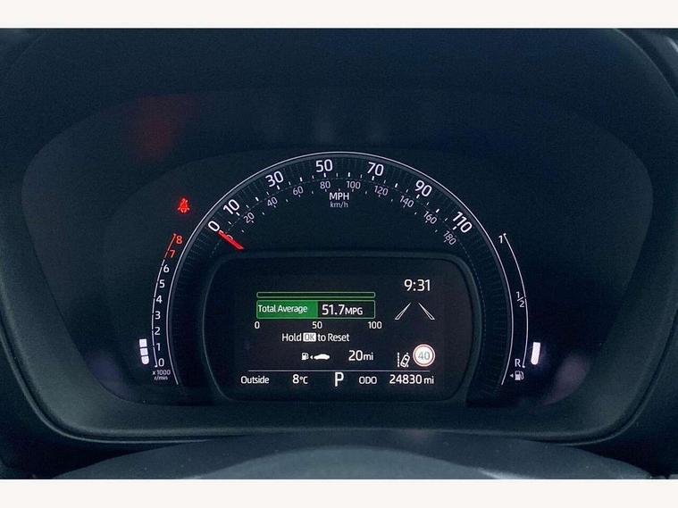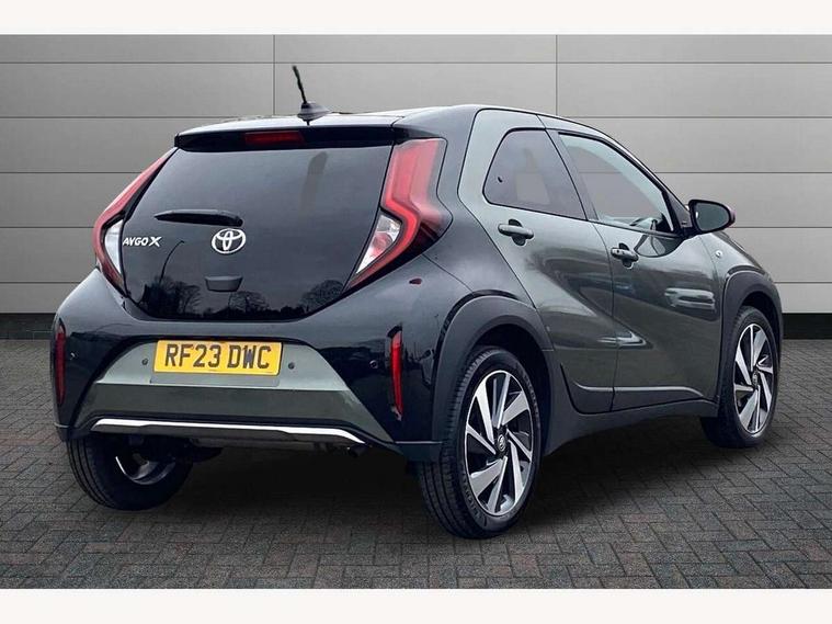4.2" TFT colour screen, Adjustable speed limiter, Analogue speedometer, Bluetooth connectivity, Digital tachograph, Driver attention alert system, eCall emergency call system, ECO-driving indicator, Electric power steering, Front and rear parking sensors with auto brake, Intersection turn assist, Key reminder warning, Noise reduction kit, Pre collision system with emergency steering assist, Remote boot door release on key, Reversing camera with static guide lines, Smart entry and push button start, Speed limit display, Start and stop, Wireless charger, Wireless Smartphone Integration includes Apple CarPlay and Android auto, Vehicle Stability Control (VSC), 4 speakers, 9" HD multimedia display touch screen with Toyota smart connect, DAB digital audio broadcast, USB connector, Auto headlights, Auto wipers, Automatic headlights cut-off, Automatic high beam On/Off switch, Bicycle towing hook, Black fog light surrounds, Black side protection mouldings, Black wheel arch mouldings, Body colour door handles, Body coloured front bumper, Boot door scuff plate, Eclipse black rear bumper, Electric heated door mirrors, Follow me home headlights, Front and rear underruns in silver, Front fog lights, Front power windows, Gloss black door mirrors, Gloss black upper front grille, Headlight cut-off reminder, LED daytime running lights guide, LED front light guide, LED High mounted stop lamp, LED projector headlights, Manual day/night rear view mirror, Manual headlight levelling, Pagoda roof, Power adjustable door mirrors, Power back door, Privacy glass, Rain sensor, Rear combination lights LED bulb type, Rear side wing doors, Rear windscreen defogger, Rear windscreen wiper, Remote hazard lights system, Short antenna, Variable intermittent windscreen wipers, 12v power outlet - front, 2 seat bench in 2nd row, 3 spoke leather steering wheel, 50/50 split folding rear seat, Adhesive roof headlining, Adjustable speed limiter switch on steering wheel, Audio and telephone switches on steering wheel, Auto air conditioning, Black roof lining, Body colour satin anodised insert on steering wheel, Boot light, Centre room light, Chrome interior door handles, Chrome surround on air conditioning buttons, Clean air filter, Console box storage, Floor mats, Front and rear cup holders, Front head rest deco art, Front head restraints, Gear shift indicator, Height adjustable driver seat, Intelligent adaptive cruise control switch on steering wheel, ISOFIX child restraint system on rear seats, Lane departure alert switch on steering wheel, Leather gearshift knob, Light blue ambient lighting in centre console, Manual tilt steering wheel, Manually reclining and sliding driver seat, Manually reclining and sliding front passenger seat, Multimedia switches on steering wheel, Paddle shift levers on steering wheel, Partial synthetic leather upholstery, Pollen filter, Rear door pockets, Rear head restraints, Remote air-conditioning system, Satin silver insert on gear shift knob, Single compartment glovebox with lights, Single front passenger seat, Soft tonneau cover, Sun visors with mirror on driver and passenger side, Voice recognition switch on steering wheel, Toyota safety sense pack - Aygo X, Anti lock braking system + Electronic brake force distribution, Child safety door lock, Emergency brake light signal (EBS), Hill start assist control (HAC), Passenger airbag on/off switch, Seat belt reminder for front and rear seats, Supplement restraints system (SRS) - 6 airbags, Traction control, Tyre pressure warning system, Immobiliser, Remote power door locks, Black wheel centre caps, Tyre repair kit,