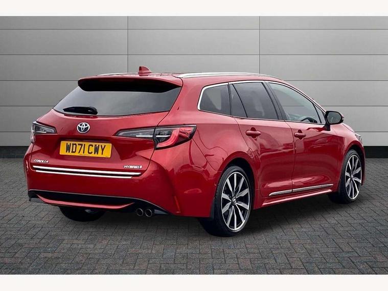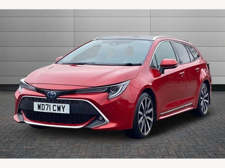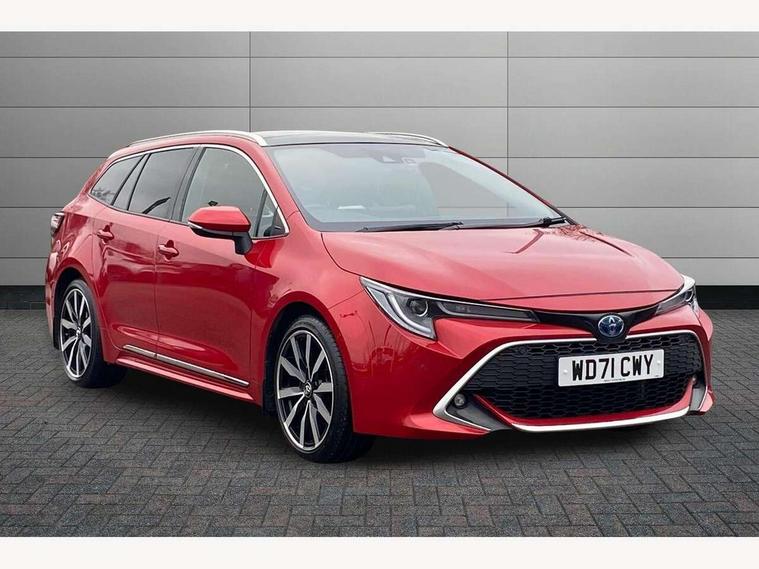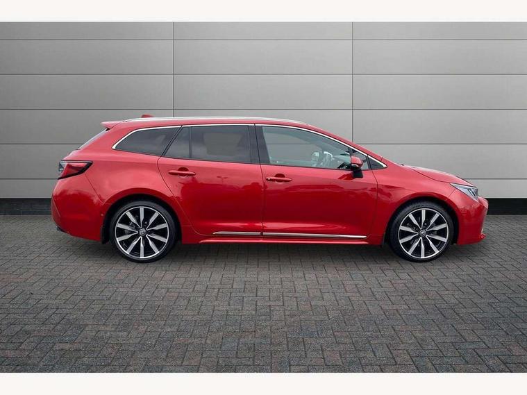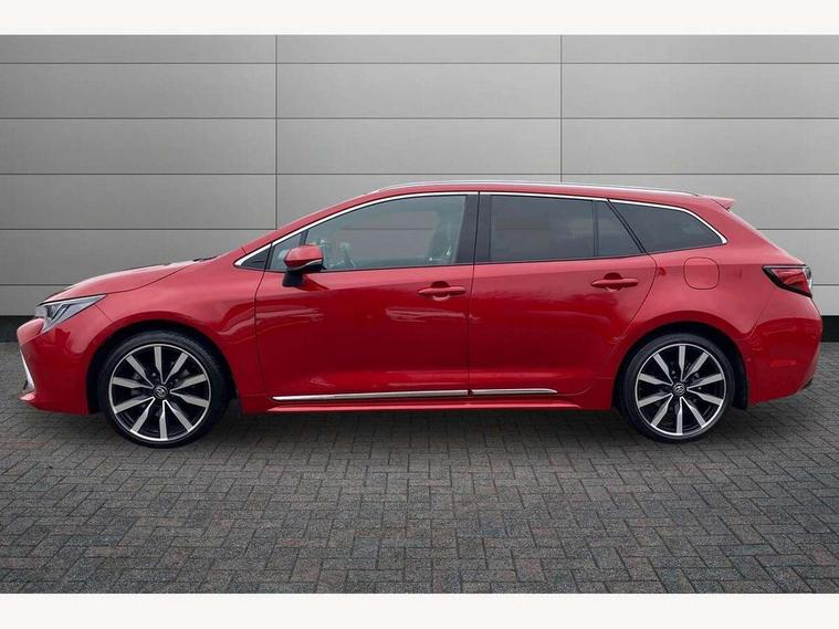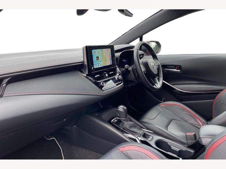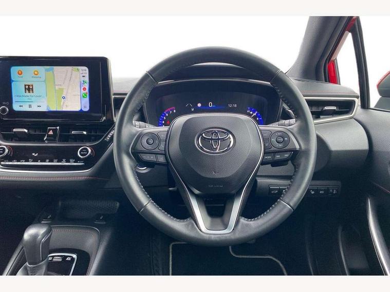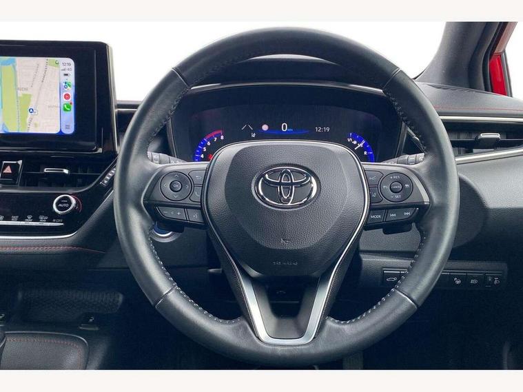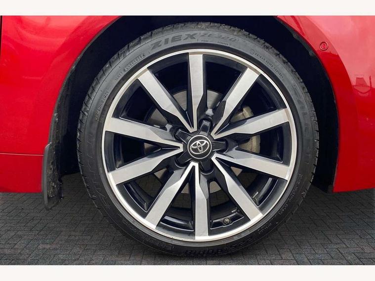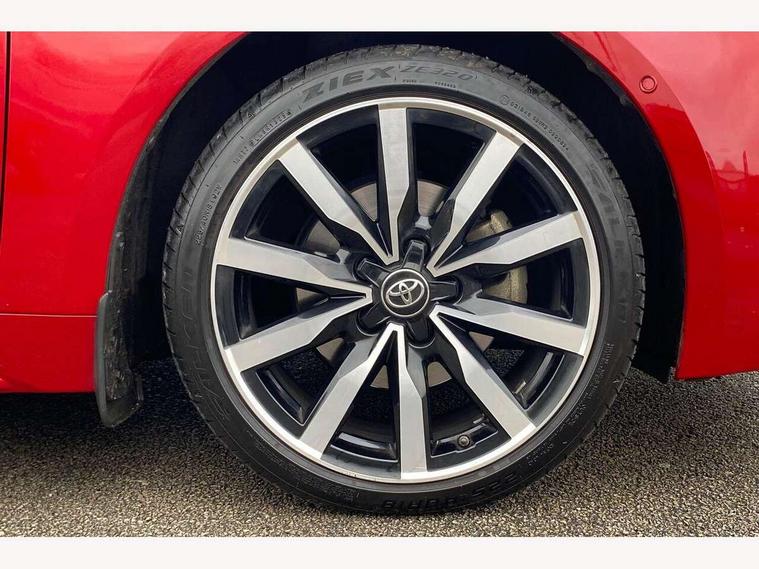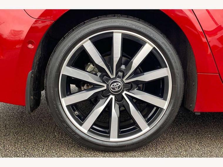 7" Multi information display screen, Bluetooth telephone connectivity, Connected car functionality upgrade, tracker, remote status and e-care, Dynamic radar cruise control (with RSA) including switch on steering wheel, E-call, Electrically assisted power steering, EV drive indicator, Intelligent park assist, Kick sensor for power tailgate, Lane Departure Alert (LDA) switch on steering wheel, Memory on adjustable speed limiter, Push button start, Reversing camera, Smartphone integration with Apple CarPlay and Android auto, Gasoline particulate filter, Vehicle Stability Control (VSC), 6 speakers, 8" Touchscreen with MM19 Multimedia system and voice recognition, AM/FM radio, DAB Digital radio, Toyota touch 2 with go navigation system, USB and Aux in connectors + 12V front outlet, USB charging port in centre storage box, Aluminium roof rails, Anti-jam protection on power windows, Auto dimming inside rear view mirror, Auto up and down function on all power windows, Automatic folding mirrors, Automatic headlights with high beam assist, Bi-LED headlights with LED lightguide, Black toyota logo in front, Body colour rear spoiler, Body coloured bumpers, Body coloured door mirrors, Body coloured outside door handles, Chrome door scuff plates, Follow me home headlights, LED daytime running lights, LED front fog lights, LED High mounted stop light, LED rear combi lights with LED lightguide, Noise reduction layer on front windows, Power adjustable heated door mirrors, Power front windows, Power rear windows, Privacy glass, Rain sensing wipers, Rear side wing doors, Rear window defogger, Rear window wiper, Reverse tilting door mirrors, Satin chrome surround on lower front grille, Shark fin antenna, Time adjustment on intermittent wiper, Turning signal integrated indicators in door mirrors, Unique lower skirt, Unique side rocker with black insert, UV-filter on driver and passenger windows, 12v power outlet - luggage side, 3 rear headrests, 3 seat bench in 2nd row, 3 spoke leather steering wheel + gear knob, 60/40 split folding rear seat, Adjustable speed limiter switch on steering wheel, Audio, multimedia and telephone switches on steering wheel, Blue ambient interior illumination to centre tray, front cup holders and front door trim, Boot underfloor storage, Clean air filter, Driver and front passenger personal light, Driver and passenger assist grip, Driver and passenger seatback pockets, Driver and passenger sun visor with mirror and light, Dual sided deck board in boot, Dual zone automatic air conditioning with ECO mode switch, Front and rear cup and bottle holders, Front and rear door pockets, Front head restraints, Front passenger seat, Full leather upholstery, Heated driver and front passenger seats, Illuminated entry system in room lamp, ISOFIX seat fixing (2 fixings on rear outer seats), Leather gear shift with satin chrome on gear shift console, Leather style armrests, LED boot light, Luggage utility boot rails, Manual height adjustable for driver and front passenger seat, Paddle shifts, Pollen filter, Power adjustable lumbar support on driver seat, Power window switches with satin chrome inserts, Rear armrest with 2 cupholders, Rear passenger air vents, Rear passenger coat hooks (2), Rear passenger personal lights, Retractable tonneau cover with luggage partition net, Satin chrome inside door handles, Shopping bag hooks in luggage compartment, Sliding armrest on centre console box, Slow opening glovebox with lights, Sports seats, Tilt/telescopic steering column, Tonneau cover with under floor storage, Voice recognition switch on steering wheel, Whiplash Injury Lessening (WIL) feature (active headrest) for seats, Parking pack - Corolla, Toyota safety sense 2 pack - Corolla, 3x3 point rear seatbelts, Adjustable driver and front passenger seat belt extender to top anchor point, Anti lock braking system + Electronic brake force distribution, Brake assist function, Child locks on rear doors, Downhill Assist Control (DAC), Electronic parking brake, Emergency brake light signal (EBS), Front passenger airbag on/off switch, Front seatbelt reminder, HAC-Hill-start Assist Control, Rear seat belt reminder, Seatbelt pretensioners and force limiters, Supplemental restraint system (SRS) 7 airbags - dual driver, dual side curtain, side impact and driver knee airbags, Traction control, Tyre pressure warning system, Acoustic vehicle alert system (AVAS), Alarm with motion sensor and immobilizer, Remote central locking + deadlocks, Smart entry, Satin chrome dash trim, Soft touch texture on upper dashboard, Stitching on lower dashboard, Stitching on upper dashboard, Tyre repair kit, Unique wheel finish with red wheel cap,
