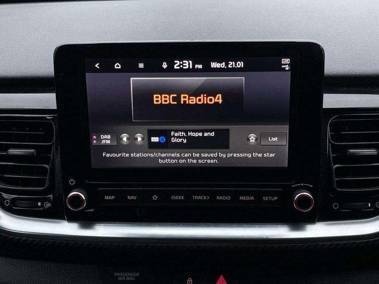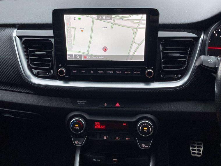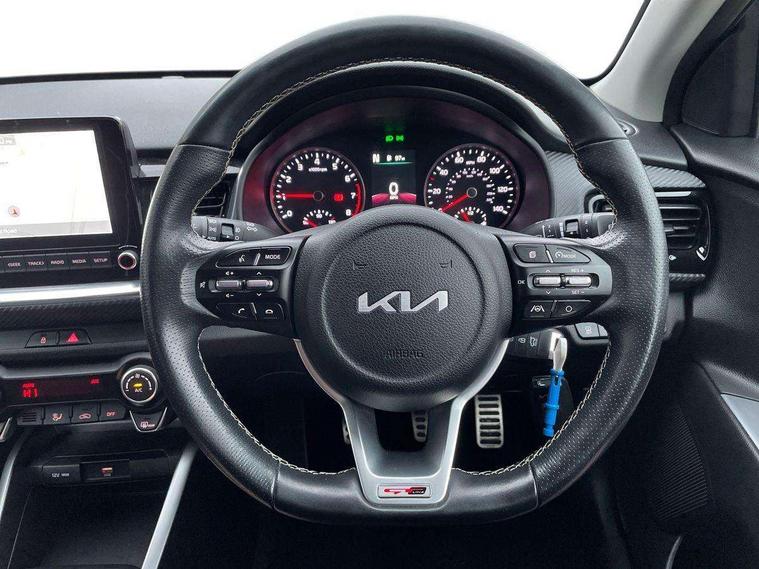 4.2" supervision colour cluster display, 8" touchscreen navigation, Apple car play/Android Auto with voice control, Cruise control + speed limiter, Drive mode selector, Electric power steering, Emergency stop signalling system, External temperature display, Forward Collision-Avoidance Assist (FCA) - City/Pedestrian/Cyclist, Kia connected services featuring TomTom live, Lane keeping assist system (LKAS), Driver attention warning (DAW) and High beam assist (HBA), Rear parking sensor, Reversing camera system, Trip computer, UVO connect, Intelligent Stop and Go, Audio system with 6 speakers, Bluetooth with music streaming, Front USB port, Rear USB port, Steering wheel mounted controls, Aero blade type windshield wipers, All round electric windows with drivers auto up/down function, Automatic defog system, Automatic headlights control, Black rear spoiler with high mounted braking light, Black side sill, door garnish and wheel arch trims, Black/body colour bumpers, Body coloured exterior door handles, Chrome side window trim, Electrically adjustable/heated/folding door mirrors with LED indicators, Front and rear silver skid plates, Gloss black door mirrors with matt black lower housing, GT-Line body kit, Headlight levelling device, Heated rear window, High gloss black and satin radiator grille, LED Bi-function projection headlights with static bending, LED daytime running lights, LED front fog lights, LED rear combination lights, Privacy glass - Rear windows and tailgate, Rear fog lights, Rear wash/wipe, Roof rails, Shark fin antenna, Solar windshield glass, Speed variable front wipers, Tinted glass, Welcome and follow-me home light functionality, Windscreen Washer Level Warning, 12V power point front, 60/40 split folding rear seat, Air filter, All-round height adjustable headrests, Aluminium pedals, Automatic air conditioning, Centre armrest storage box, Centre console with cupholders, D-Cut perforated leather trimmed steering wheel, Dash illumination dimmer switch, Driver's seat height adjuster, Dual Height Luggage Area Floor, Front and centre cabin lights, Front and rear door map pockets with bottle holder, Gear shift indicator, Glovebox illumination, GT-Line cloth/faux leather upholstery, ISOFIX Child seat top tethers and anchor fixings outer rear seats, Leather trimmed gearshift, Luggage area light, Luggage area parcel shelf, Luggage net hooks, Overhead console lamp, Overhead console with sunglasses cases, Passenger front seatback pockets, Satin chrome interior door handles, Sunvisors with vanity mirror illumination (Driver and front passenger), Tilt/telescopic adjustable steering wheel, ABS with Electronic Brakeforce Distribution (EBD) and Brake Assist System (BAS), All round 3-point seatbelts, Electronic stability control (ESC) and vehicle stability management (VSM), Front passenger airbag cut-off switch, Front seatbelt pretensioners + load limiters, Height adjustable front seatbelts, Hill start assist control (HAC), Impact sensing auto door unlocking, Rear seat Occupancy alert, Seatbelt reminder warning, Twin curtain airbags, Twin front airbags, Twin front side airbags, Tyre pressure monitoring system, Alarm system, Door deadlocks, Engine immobiliser, Locking wheel nuts, Remote central door locking with fold away key, Speed sensitive auto door locking, Visible vehicle identification number, High gloss black centre fascia, 17" GT-Line alloy wheels, Tyre mobility kit,