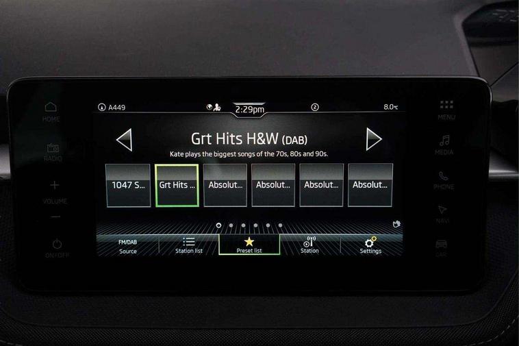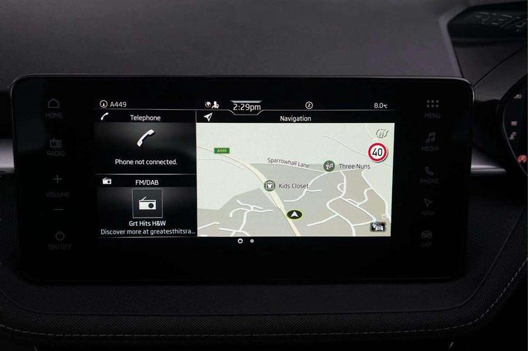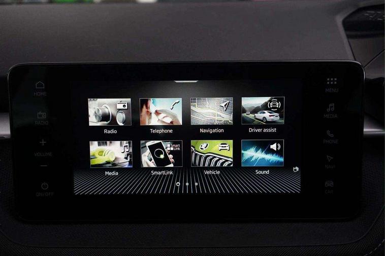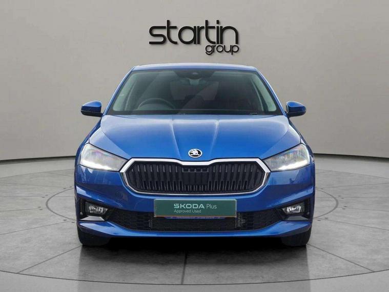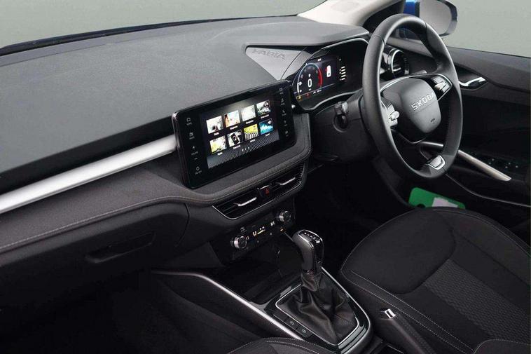 Advanced driver attention and drowsiness monitor, Bluetooth connection, Electromechanical power steering, Exterior temperature gauge, Service interval indicator, Traffic sign recognition, Virtual cockpit with 10.25" colour display, Wireless SmartLink for Apple CarPlay and Android Auto, 6 Speakers (4 in front and 2 in rear), 9.2" colour display skoda navigation system with voice control and web radio, Auxiliary socket for external MP3 player, DAB digital radio reception, Auto dimming rear view mirror, Body colour door mirrors, Body coloured bumpers, Chrome window surround, Door mirror integrated indicators, Front and rear electric windows, Front window wiper intermittent control, Headlight range control - Automatic, Ice scraper in fuel cap, LED 3rd brake light, LED daytime running lights with coming and leaving home feature, LED rear lights, Privacy glass, Rear LED fog light, Rear side wing doors, Rear window wiper with washing nozzles, Roof mounted spoiler, SKODA tailgate lettering in chrome, Unique dark chrome design logo on alloy wheels, 2 LED reading lights in front and rear, 3 rear headrests, Backrest split and folding, Central console with removable cup holder and storage box, Chrome handbrake release button, Comfort seats, Door sills with fabia badging, Dual zone air conditioning with climatronic electronic control, Fabric upholstery, Front centre armrest, Gearshift knob/handle in leather, Hand brake lever handle in leather, Height adjustable front headrests, Height adjustable front seats, Height adjustable steering wheel, ISOFIX and TopTether anchorage points to the outer rear seats, ISOFIX and TopTether on the front passenger seat, Luggage compartment lighting, Manually adjustable lumbar support in front seats, Metallic grey interior door handles, Pollen filter, Rear seat bench unsplit, Single front passenger seat, Skoda lettering on steering wheel, Storm grey headlining, Sun visors with mirror and airbag label on passenger side, Textile floor mats, Ticket holder, Umbrella in drivers door, 3-point height adjustable front seats belts with pretensioner and force limiter, Automatic warning lights in case of crash, Driver and passengers airbag with switch off function, e-Call+, ESC including ABS, MSR, ASR, EDS, HBA and XDS, Front and rear seat belt warning, FRONT ASSIST (AEB City and AEB Inter Urban), Front side airbags, Head airbags, Hill hold control, One tone horn, Pedestrian protection, Three rear 3-points safety seat belts with pretensioner and force limiter including stop function for outer rear seat belts, Tyre pressure monitoring system, Anti-theft alarm system including immobiliser, interior monitoring, backup horn, and towing protection, Central locking with radio remote control, interior controls, SAFE function and 2 foldable keys, Black painted air vents, Metallic grey central console cover, Metallic grey upper decorative trim, Satin black door and side trim panel in front, Textile microsuede grey lower decorative trim with art grey stitching, Anti-theft wheel bolts protection, Super-low rolling resistance tyres,