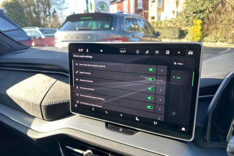 13" satellite navigation touchscreen display, Blind spot detection with door exit warning, Bluetooth system, ChatGPT functionality, Driver alert - Fatigue and drowsiness monitor, Dry display cleaner, Emergency call, Front and rear parking sensors, Front cross traffic assist, Lane assist, PAS, Rear traffic assist, Tailgate unlocking from outside, Traffic sign recognition, USB C Port x 2 in front centre console, Virtual Cockpit - 10.25" digital display, Voice control system, Wireless charging for two smartphones (15W) with cooling function, Wireless SmartLink for Apple CarPlay and Android Auto, Stop/start function, 2x USB-C in the rear, DAB Digital radio, Aero front windscreen wipers with intermittent function, Auto dimming rear view mirror, AWL (all weather lighting) and all weather light with cornering function, Black diffuser and decorative tailpipe with a unique dark chrome finish, Black roof rails, Black sports styling including front grille and window surrounds, Black wheel arch surrounds, Body colour door handles, Cornering light and poor weather light, Electric folding /adjustable/separted heated/folding door mirrors, auto dimming with boarding sports and memory function, Electric front and rear windows, Exterior black decorative trims, Front and rear sports bumpers including lower rear chrome strip, Gloss black door mirrors, Gloss black window frame and D pillar, Heat insulating glass in windshield, Heated rear window, Ice scraper in fuel tank cap, LED daytime running lights, LED third brake light in rear spoiler, Light assistant with automatic headlight control and coming home feature, Logo projection in door mirrors, Privacy glass, Rear roof spoiler, Rear side wing doors, Rear window wiper, Red decorative strip between rear LED lights, Safety reflectors on front and rear doors, Sportline badge on front fenders, Tailgate lettering in Black, Unique dark chrome design logo on alloy wheels, Window control switches with black trim, Windscreen wipers with rain sensor, Without engine designation, 1.5l bottle holder points in all door, 1x centre rear reading light, 2 seat bench in 3rd row, 3 configurable smart dials with 32mm coloured display, 3 seat bench in 2nd row, 4 foldable roof handles with rear coat hooks, Aluminium pedals, Ambient interior lighting - Dashboard, front-door stowage compartments, front and rear door panels and footwell lighting, Automatic gear selector on steering column, Chrome interior door handles, Driver/front passenger reading lights, Fabric headlining, Fixed bench 40:60:40 split folding backrests, Front and rear floor mats, Front centre armrest with jumbo box storage compartment, cup holder and 12V socket, Front sport seats, Height adjustable front headrests, Interior black decorative trims, Isofix child seat fittings in outer middle row rear seats and front passenger with top tether, Manually adjustable steering column, Pollen filter, Rear centre armrest with cupholders, Rear seat boot backrest release, Single front passenger seat, Skoda lettering on steering wheel, Storage pocket including mobile phone pockets on the backs of the front seats, Sunvisors with illuminated vanity mirrors, Three rear height adjustable headrests, Ticket holder on A Pillar, Tri zone climate control, Umbrella in door panel x1 made from sustainable materials, Upper and lower glovebox with card holder and coin compartment, USB C port by rear view mirror for charging only (15W), Acoustic package - Kodiaq, Performance package - Kodiaq, Sportline design selection pack - Kodiaq, Auto door release and activation of warning lights in the event of an accident, Driver and front passenger airbag with knee airbag and front passenger airbag deactivation, Electric child locks, Electronic parking brake, ESC (incl. ABS+EMD+MSR+ASR+EDL+HBA+DSR+RBS+ESBS+MCB+TSA+XDS), Front assist with braking reaction to vehicles, pedestrians and cyclists, Front disc brakes, Fuel cut off safety device, Height adjustable front 3 point seatbelts + pretensioners, Hill hold assist, Junction assist with automatic emergency braking, Rear disc brakes, Safety vest holder in door, Seat belt reminder for all seats, Three point rear seat belts, Two tone horn, Tyre pressure monitor, Alarm with interior monitoring and tilt sensor with safe function, Anti-theft wheel bolts, Immobiliser, Remote central locking with 2 keys, 20" Rila anthacite polished alloy wheel with black matte aero covers,
