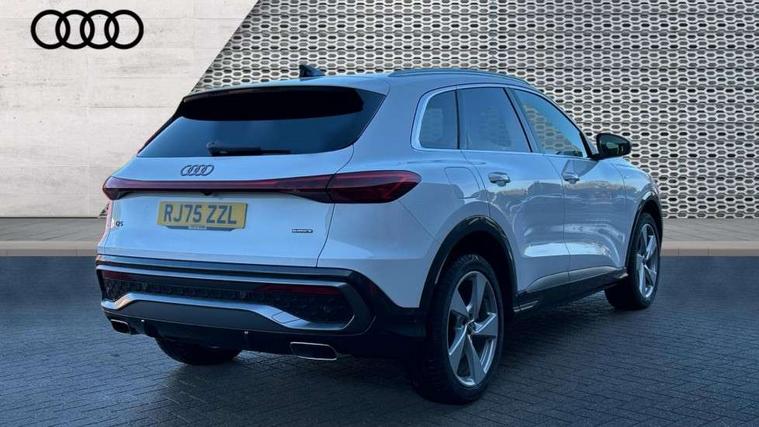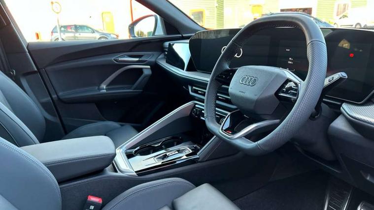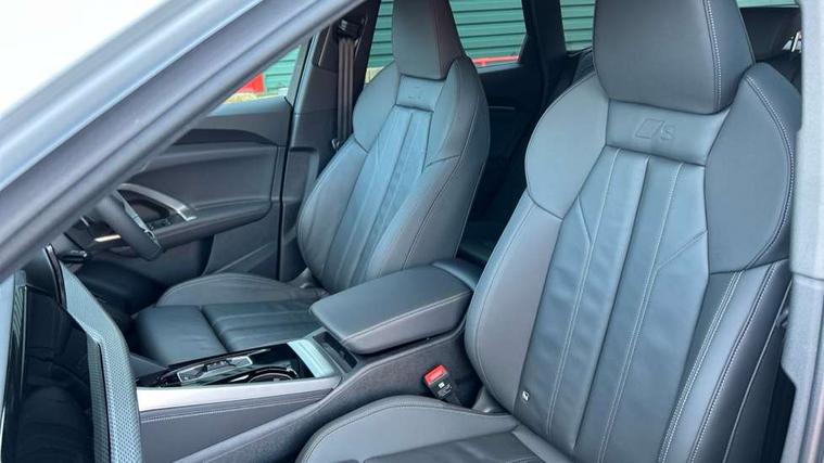 Adaptive cruise control, Attention and drowsiness detection with driver observation, Audi application store, Audi connect emergency call and service, Audi digital key, Audi drive select, Audi smartphone interface, Audi virtual cockpit plus with 11.9" OLED colour display, Camera based traffic sign recognition, Front cross traffic intersection assist, Lane change assistant with exit warning system, rear cross traffic alert and rear turn assist, Lane departure warning system, MMI navigation plus with high resolution 14.5" OLED touchscreen colour display, Park assist plus, PAS, Reversing camera, Swerve assist and front turn assist, Traffic sign based speed limiter, Audi sound system impressive sound with 8 loudspeakers including centre speaker and subwoofer, 6-channel amplifier with a total output of 180 watts, DAB Digital radio, Smartphone compartment with wireless charging, Aluminium roof rails, Auto dimming rear view mirror, Body coloured door mirrors, Electrically adjustable heated and folding + automatically dimming exterior mirrors, Front and rear electric windows, Front door sill trims with aluminium inlays, illuminated with 'S' logo, Grill frame, inlay and front air inlets in matt anthracite chrome, Headlight cleaning system, Heated rear window, High beam assist, High gloss window surrounds, LED headlights plus incl. digital DRL, dynamic coming and leaving home function with turning/all weather/motorway/manouevring and intersection lights, LED rear lights pro incl. dynamic rear indicators and illuminated light strip with animated coming and leaving home function, Logo projection light in exterior mirrors, Privacy glass, Projection third brake light for rear window in LED, Radiator grille in phantom black, Rear and side windows with heat insulating glass, Rear honeycombe grille in matt black with inlay in matt anthracite chrome, Rear side wing doors, Rear wash/wipe, S Line badge on the front wings, S line bumpers in contrasting Volcano grey metallic paint finish, Windscreen with acoustic glazing, 3 rear head restraints, 3 seat bench in 2nd row, 3 spoke leather steering wheel with multi-function buttons with touch control, flattened on top and bottom, with S badging and contrast stitching, 4 way electric lumbar support for driver and front passenger, Black carpets, Comfort centre armrest front, Deluxe 3 zone electronic climate control, Front and rear floor mats, Front sport seats with integrated head restraints, Headlining in black cloth, i-Size child seat mounting on the front passenger side and outer rear seats, i-Size and top tether on the outer rear seats, Increased charging capacity for USB ports 2X100 Watts in rear, 2X60 Watts in front, Interior trim in aluminium look, Luggage compartment lid, electrically opening and closing, Manual steering column adjustment, S embossed logo on front sport seats, Single front passenger seat, Softwrap in black, Stainless steel pedals and footrest, Steering wheel grips in perforated leather and shift paddles, Ambient lighting package plus - Q5, Rear seat bench plus pack - Q5, Storage and luggage compartment pack with luggage net - Q5, 3x3 point rear seatbelts, ABS, Acoustic vehicle alerting system, Convenience key with safelock, Driver and front passenger airbag with passenger airbag deactivation, Electric child safety locks, First aid kit with warning triangle and high visibility vests, Front emergency brake assist, Front side airbags with head airbag system and front interaction airbag, Hill hold assist, Rear seat occupant reminder, Tyre pressure loss indicator, Anti-theft wheel bolts, Thatcham approved category 1 anti theft alarm, Accent surfaces and control buttons in gloss black, Anthracite matt brushed aluminium inlays with linear embossing, Black dashboard with contrast stitching, Upper and lower interior elements in artificial leather, Tyre repair kit,