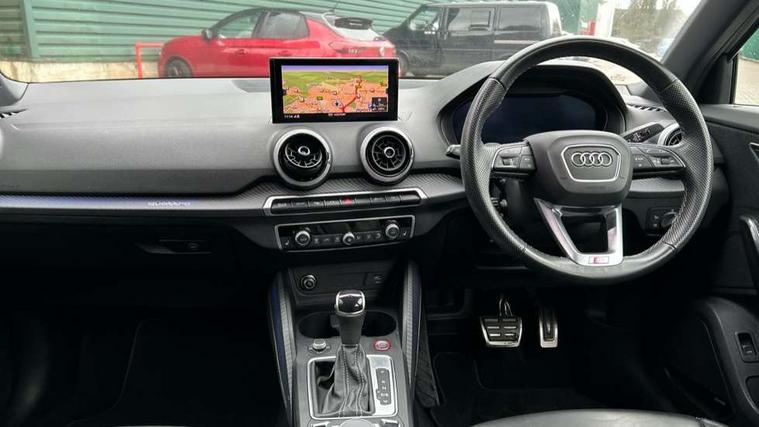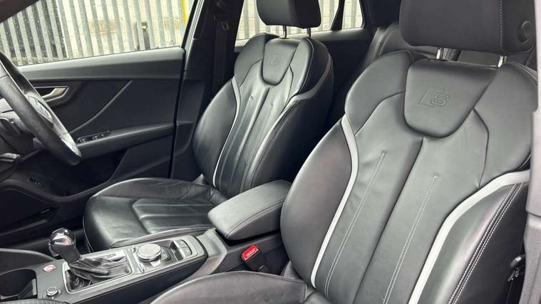 Adaptive cruise control with active lane assist/emergency assist, Audi connect navigation and infotainment includes innovative services, Audi connect remote and control connects your vehicle to your smartphone, Audi drive select - Power steering assistance + engine + gearshift, Audi drive select with efficiency, Audi phone box with wireless charging, Audi side assist including rear cross-traffic assist and audi pre sense basic, Audi smartphone interface, Audi virtual cockpit, Automatic start/stop system with recuperation, Bluetooth interface includes bluetooth audio streaming, Camera based traffic sign recognition, E-call, Instrument dials with S logo, MMI navigation plus with MMI touch, Park assist system including front parking sensors, Power operated tailgate, Progressive steering, Rear parking sensors, Rear view camera, Traffic jam assist with emergency assist, Adaptive suspension with damping control, Quattro all wheel drive, 2 x SDXC card reader, DAB Digital radio, DVD Drive, Auto dimming rear view mirror, Black Audi rings and black badging, Black exhaust tailpipes, Black window trims, Brake lights, tail lights, reversing lights, and rear number plate lights in LED technology, Contrast bumper in grey, Electrically adjustable, folding, auto dimming and heated door mirrors with integrated LED side indicators, Enhanced rear spoiler, Front windscreen with grey tinted sunband, LED daytime running lights, LED third brake light, Matrix headlights with LED rear lights, dynamic rear indicators, cornering lights, Panoramic glass sunroof, Privacy glass - dark tinted rear and rear side windows from B-pillar backwards, Quattro decals on rear side flank, Rear side wing doors, Rear wiper, S design radiator grille with horizontal struts and SQ2 logo, S specific dual branch chrome tailpipes with twin tailpipes on both the left and right, Variable front intermittent wipers, Wheel arch trims in manhattan grey, 12V socket in front, 3 seat bench in 2nd row, 3 spoke leather trimmed multi function steering wheel with paddleshift features S badging, 4-way electric lumbar support for front seats including seat height adjustment for both front seat, 40/20/40 split folding rear seat bench with centre armrest and cupholder, Black cloth headlining, Dual zone electronic climate control, Front and rear head restraints, Front centre armrest, Front/rear floor mats, Height/reach adjust steering wheel, ISOFIX child seat mounting in front passenger and rear outer seats, Single front passenger seat, Stainless steel pedals, Black styling pack - SQ2, Comfort and sound pack - SQ2, Extended interior upholstery pack - SQ2, LED interior lighting pack advanced - Q2, 3x3 point rear seatbelts, 6 airbags - Front, curtain and front side airbags, Brake calipers painted black with S logo at the front, Electromechanical parking brake, Electronic stabilisation control including ABS, ASR and EDL, Front passenger airbag deactivation, Hill hold assist, Pre-sense front with pedestrian recognition, S model enhanced braking system, Seatbelt monitoring, Tyre pressure warning light, Warning triangle and first aid kit, Advanced key, Anti theft alarm, Anti theft wheel bolts, Electronically operated child locks, Remote central door locking, Aluminium interior element, Format design illuminated inlays, 19" 5 double spoke design alloy wheels in gloss white with diamond cut finish, Tool kit,