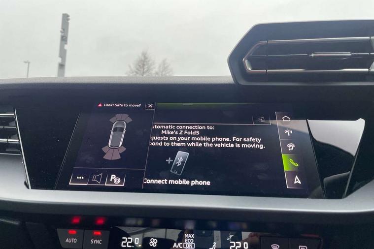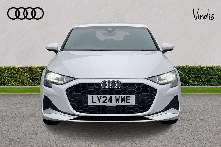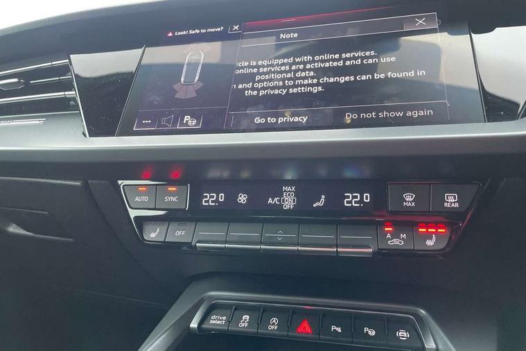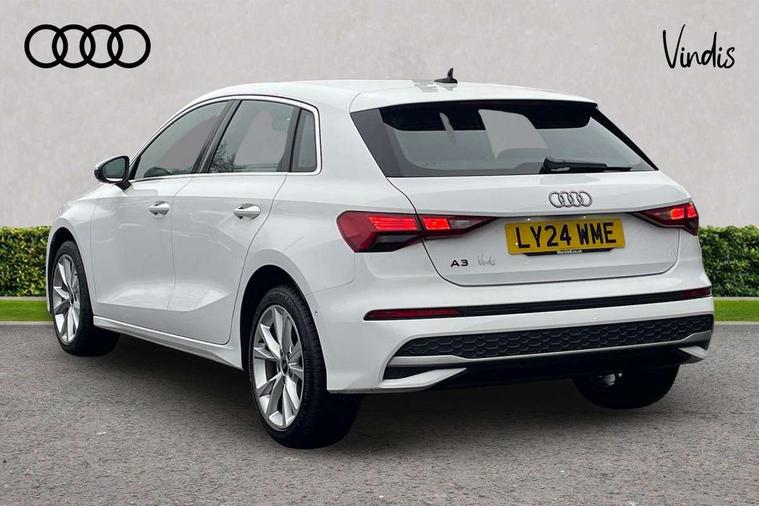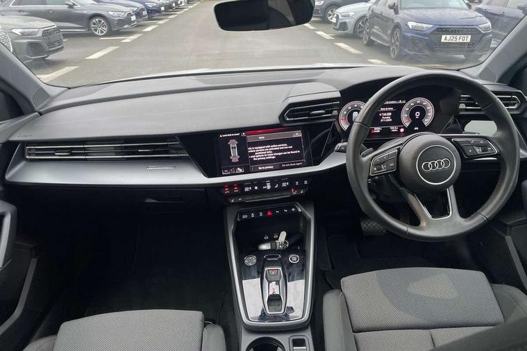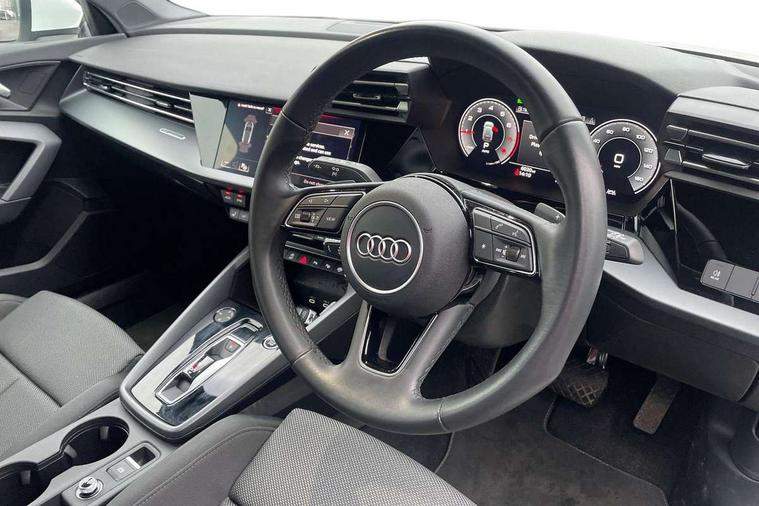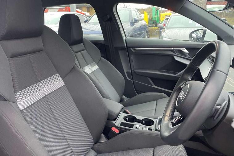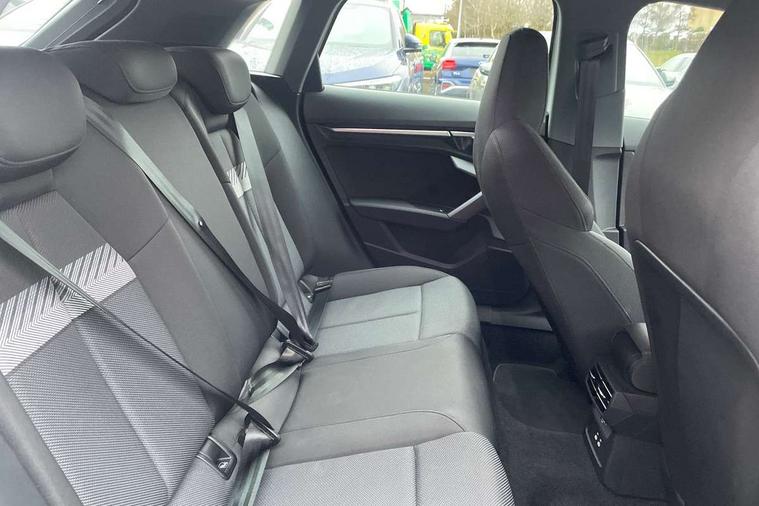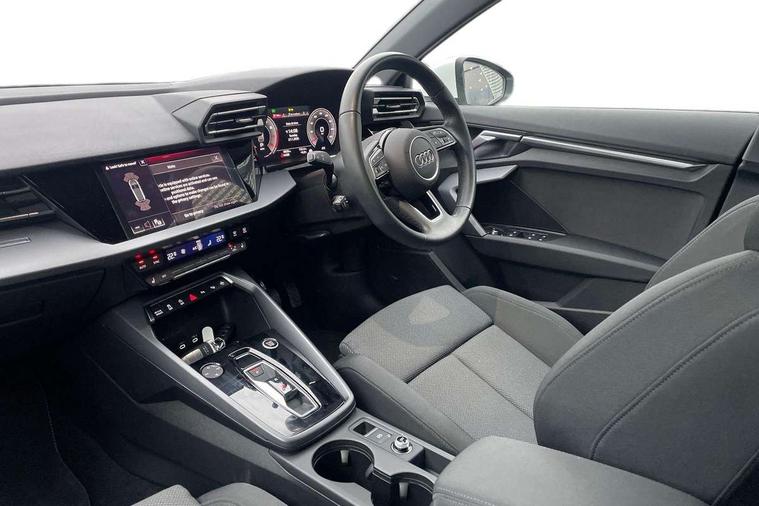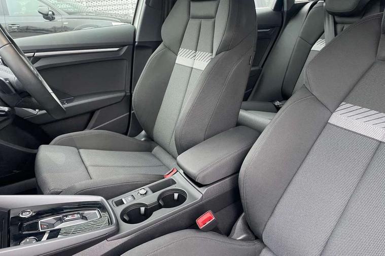 Adjustable speed limiter, Audi drive select, Audi smartphone interface with app store includes wireless Apple carplay, Android auto and Amazon alexa integration, Audi virtual cockpit plus - 12.3" full HD resolution dynamic digital instrument cluster, Automatic start/stop system with recuperation, Bluetooth interface, Camera based traffic sign recognition, Collision avoidance assistant, Cruise control, Distraction and Fatigue warning, e-Call (emergency call), Electromechanical power speed sensitive steering, Lane departure warning system, MMI Navigation Plus with high resolution 10.1" colour touch screen display, Park Assist with parking system Plus, Service indicator, Tailgate, Trip computer, Voice control system with natural language interaction, Standard suspension, Audi Phonebox light with wireless charging, Audi sound system - 10 loudspeakers including centre loudspeaker and subwoofer, DAB Digital radio, USB ports with charging function in the rear, 3rd brake light, Acoustic glass windscreen, Aluminium window trim, Auto dimming frameless rear view mirror, Body colour exterior mirrors, Body colour roof spoiler, Electrically adjustable/heated/folding/auto dimming door mirrors with integrated LED indications + kerb view function for passenger side, Exterior model badging, Front electric windows, Front radiator grill in high gloss dark chrome, Front side air inlets in grained matt black with silver frame, Heat insulating glass windscreen, LED daytime running lights, LED headlights and halogen rear lights, Light and rain sensors, Rear diffuser and grill in grained matt black with silver frame, Rear electric windows, Rear side wing doors, Rear window, rear door windows and rear side windows in clear glass, Rear wiper, 12V socket and storage compartment in front centre console, 3 seat bench in 2nd row, 3 spoke leather multifunction steering wheel with gear shift paddles, 3-zone deluxe automatic air conditioning, 4 way electrically adjustable lumbar support for driver and front passenger, 60/40 split folding rear seat bench, Front and rear headrests, Front centre armrest, Front door sill trims with aluminium inlay, Front/rear floor mats, Heated front seats, Height and reach adjustable steering wheel, Manual boot compartment lid, Manually adjustable front seats, Routine cloth upholstery with front sports seats, Seat side bolsters, Single front passenger seat, Steel grey cloth headlining, Aluminium interior elements pack - A3 Sportback, LED interior lighting pack -A3, 3x3 point rear seat belts, Driver and front passenger airbag with passenger airbag deactivation, Electronic Stabilisation Control (ESC) including ABS, ASR and EDL, First aid kit with warning triangle and 2 safety vests, Front side airbags with head airbags and interaction airbag, Hill hold assist, Pre-sense front with pedestrian and cyclist detection, Seatbelt monitoring, Tyre pressure loss indicator, Anti theft alarm, Anti-theft wheel bolts, Electronically operated child locks, Immobiliser, Remote central locking with safelock, Inlays in volcano grey fine paint finish,