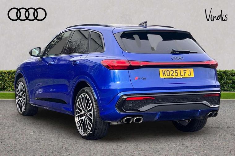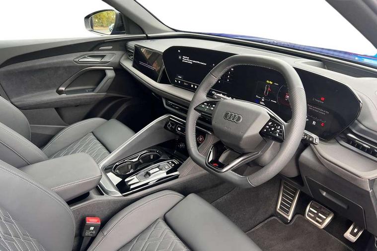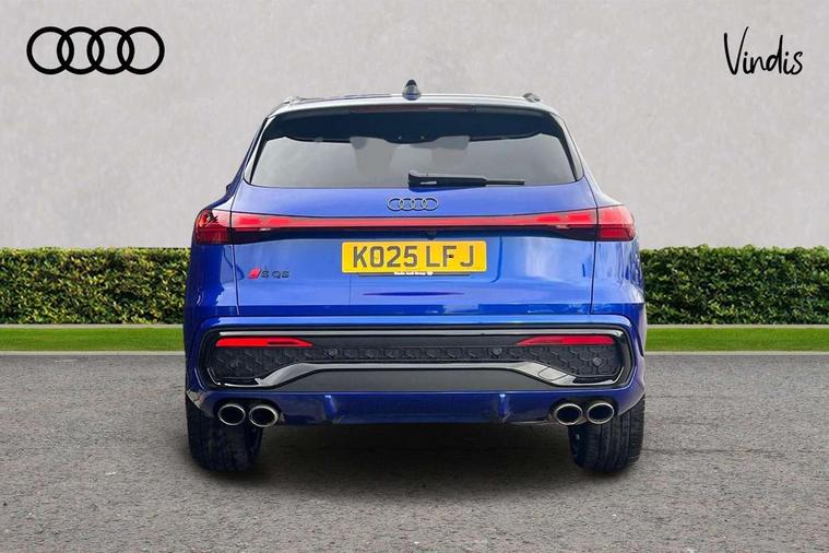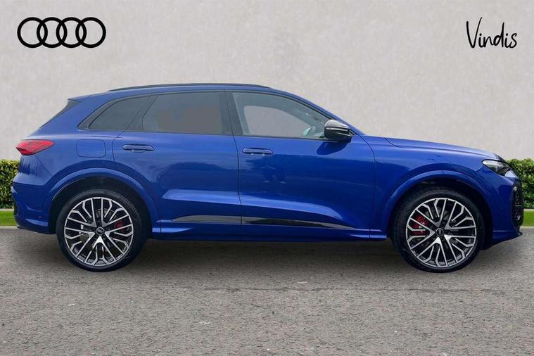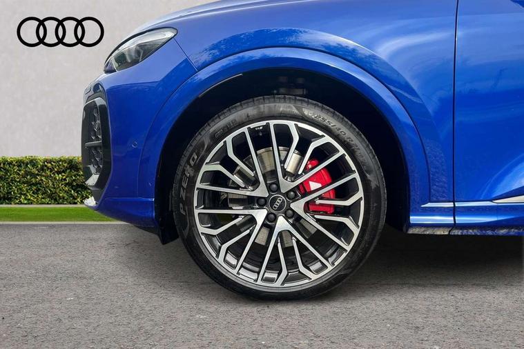 Adaptive cruise assist plus with steering intervention, Advanced driver attention alert, Audi application store, Audi connect emergency call and service, Audi digital key, Audi drive select, Audi smartphone interface, Audi virtual cockpit plus with 11.9" OLED colour display, Camera based traffic sign recognition, Fatigue monitor, Front cross traffic intersection assist, Garage door opener, Lane change assistant with exit warning system, rear cross traffic alert and rear turn assist, Lane departure warning with emergency assist, MMI 10.9" front passenger touch display, MMI navigation plus with high resolution 14.5" OLED touchscreen colour display, Park assist plus, Parking system plus with 360 display, PAS, Reversing camera, Swerve assist and turn assist, Top view camera, Traffic sign based speed limiter, S adaptive air suspension, 2 USB-C ports in both the front and rear, DAB Digital radio, Smartphone compartment with wireless charging, Acoustic glass for front door windows, Active digital light signatures - Six additional combinations of active daytime running light signature, Auto dimming rear view mirror, Coming/leaving home lighting function, Digital OLED tail lights including communication light, Electrically adjustable heated and folding + automatically dimming exterior mirrors, Exhaust tailpipes in dark chrome, Front and rear electric windows, Front door sill trims with aluminium inlays, illuminated with 'S' logo, Full body paint finish, Grill frame, inlay and front air inlets in matt anthracite chrome, Headlight cleaning system, Heated rear window, High beam assist, High gloss window surrounds, Logo projection light in exterior mirrors, Matrix LED headlights, Memory function for door mirrors, Privacy glass, Projection third brake light for rear window in LED, Radiator grille in phantom black, Rear and side windows with heat insulating glass, Rear honeycombe grille in matt black with inlay in matt anthracite chrome, Rear side wing doors, Rear wash/wipe, Red S rhombus badging with 'S' lettering on rear, S exterior styling, Towbar preparation, Windscreen with acoustic glazing, 3 rear head restraints, 3 seat bench in 2nd row, 3 spoke leather steering wheel with multi-function buttons with touch control, flattened on top and bottom, with S badging and contrast stitching, 40:20:40 split folding rear seat bench with centre armrest and cup holders, Comfort centre armrest front, Deluxe 3 zone electronic climate control, Electric steering wheel adjustment, Electrically adjustable front seats with memory function for driver's side, Front and rear floor mats, Front seat ventilation, Front sport seats with integrated head restraints, Headlining in black cloth, Heated front seats, Heated outer rear seats, Heated steering wheel, i-Size child seat mounting on the front passenger side and outer rear seats, i-Size and top tether on the outer rear seats, Increased charging capacity for USB ports 2X100 Watts in rear, 2X60 Watts in front, Interior trim in aluminium look, Luggage compartment lid, electrically opening and closing, Perforated fine nappa leather upholstery with diamond stitching incl ventilation and massage function for front seats, Pneumatically adjustable lumbar support with massage function for front seats, S embossed logo on front sport seats, Single front passenger seat, Softwrap in Dinamica, Stainless steel pedals and footrest, Steering wheel grips in perforated leather and shift paddles, Ambient lighting package plus - Q5, Black styling package plus - Q5, Sound and Vision pack - Q5, Storage and luggage compartment pack - Q5, 3x3 point rear seatbelts, ABS, Acoustic vehicle alerting system, Convenience key with safelock, Driver and front passenger airbag with passenger airbag deactivation, Electric child safety locks, First aid kit with warning triangle and high visibility vests, Front emergency brake assist, Front side airbags with head airbag system and front interaction airbag, Hill hold assist, Occupant detection in rear seat area, Proactive passenger protection system for front, sides and rear, Red brake calipers, Side airbags in front and rear with head airbag system and front interaction airbag, Tyre pressure loss indicator, Anti theft alarm, Anti-theft wheel bolts, Remote control key with SAFELOCK and keyless go, Accent surfaces and control buttons in gloss black, Black dashboard with contrast stitching, Steel grey seat stitching, Upper and lower interior elements in dinamica microfiber, Tyre repair kit,