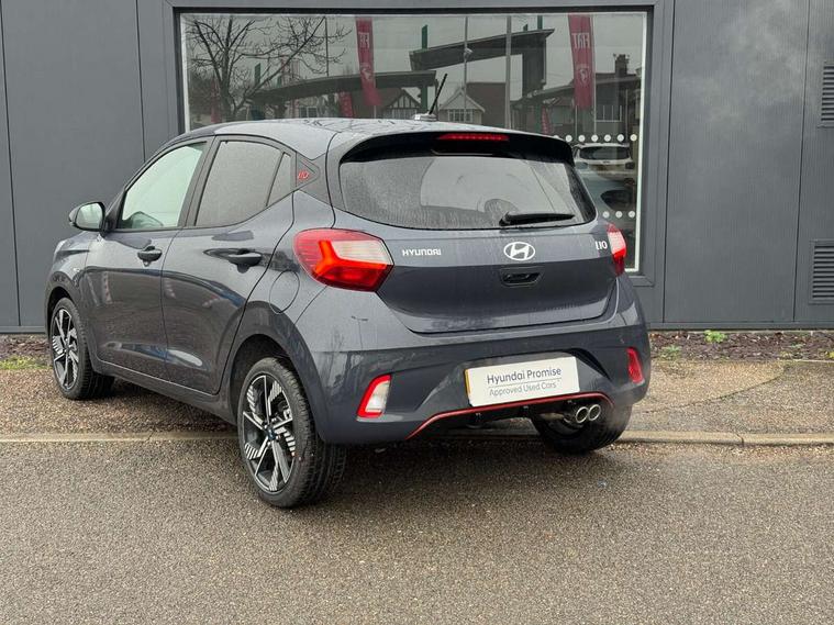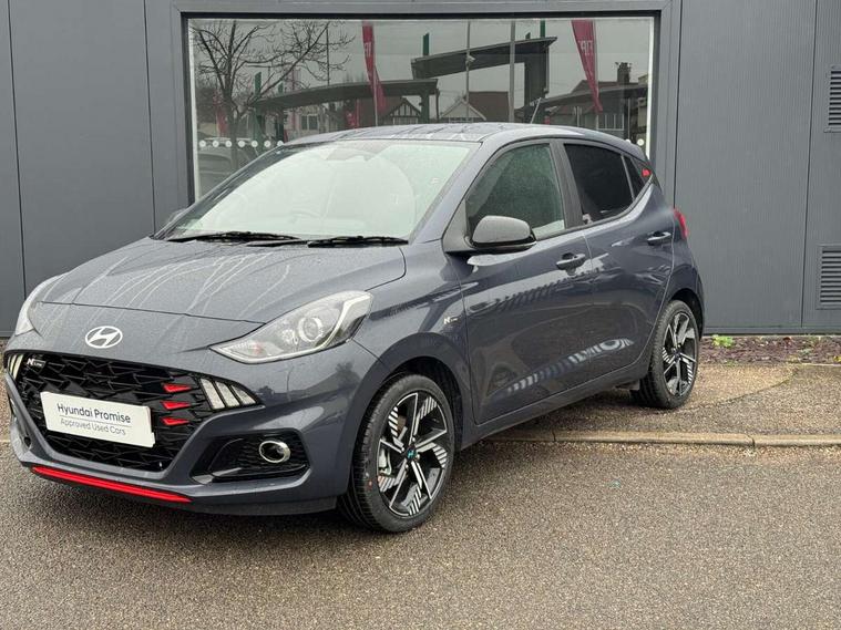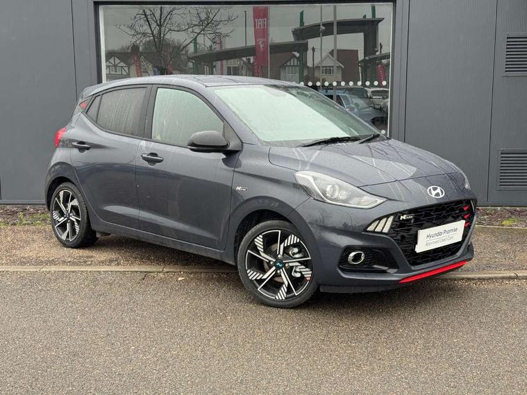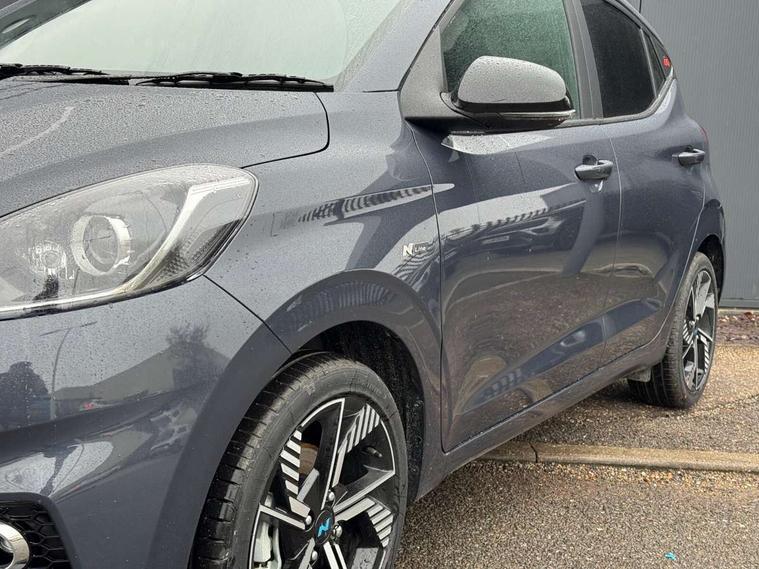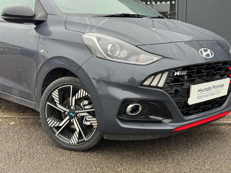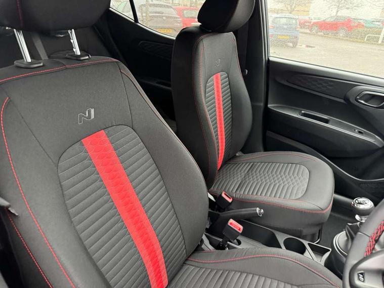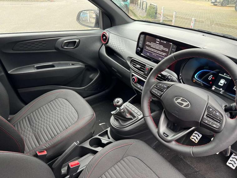8" Touchscreen satellite navigation including mapcare and LIVE services, Apple car play/Android Auto, Bluelink mobile remote connectivity, Bluetooth connectivity with voice recognition, Cruise control, Driver attention alert system, eCall emergency call system, Forward Collision-Avoidance Assist (FCA) - Pedestrian/Cyclist, Full-width 4.2" LCD instrument cluster, Intelligent speed limit assist, Lane departure warning system with lane keep assist - LKAS, Lane follow assist, PAS, Rear parking sensors, Rear view camera with guidelines, Roadside assistance, Tailgate, Trip computer, Wireless charging pad, 2 front/2 rear speakers, Front and rear USB-C ports, Front USB connection, Leading vehicle alert (LVA), Steering wheel audio, phone and cruise controls, 1 speed non intermittent rear windscreen wiper, Black finish on B pillars, Body colour door handles, Body coloured bumpers, Electric folding door mirrors, Electric front windows, Electric rear windows, Electrically adjustable and heated door mirrors, Flat metal emblem, Front fog lights, Front intermittent wipers, Glossy black door mirrors, Halogen bi-function headlights, Headlights inner with Blade design, Heated rear window, High beam assist, Indicator light on door mirrors, LED daytime running lights, N Line Badging, N Line design front grille, Privacy glass for rear window, Rear LED combination lamps in H pattern, Rear roof spoiler with integrated LED brake light, Rear side wing doors, 12v power outlet - front, 3 seat bench in 2nd row, 60/40 split folding flat to floor rear seats, Air conditioning climate control, Auto light control, Bottle holders in front/rear doors + front centre console, Cabin and luggage compartment interior lighting, Cloth upholstery, Dashboard finisher in Dark Grey Metal with Flame Red air surrounds, Driver + passenger vanity mirrors, Driver's seat height adjustment, Driver/passenger sunvisors with ticket holders, Floor mats, Front door pockets, Front Head Restraints - Vertical and Horizontal Adjustment, Front LED blue mood lighting, Glove compartment, Heated front seats, Heated steering wheel, Height adjustable steering column, Isofix child seat preparation, Leather wrapped steering wheel and gear knob, N Line branded leather gear stick, N Line branded leather steering wheel, Rear door pockets, Single front passenger seat, Vertical adjustment rear head restraints, 13" Rear brake discs, 3x3 point rear seatbelts, Airbags - front, front side and curtain airbags, Anti-lock brake system (ABS), Autonomous emergency braking (AEB) with forward collision warning system, Brake assist function, Childproof rear door locks, Electronic stability control, Front and rear seatbelt reminder, Front seatbelt pretensioners, Hill start assist control (HAC), Passenger airbag deactivate switch, Traction control, Tyre pressure monitoring system, Immobiliser, Perimeter alarm, Rear occupant alert, Remote central locking, Second remote key, Smart key with keyless entry and engine start/stop button, Speed sensitive auto door locking, 16" alloy wheels, N logo centre caps, Temporary mobility kit (TMK),