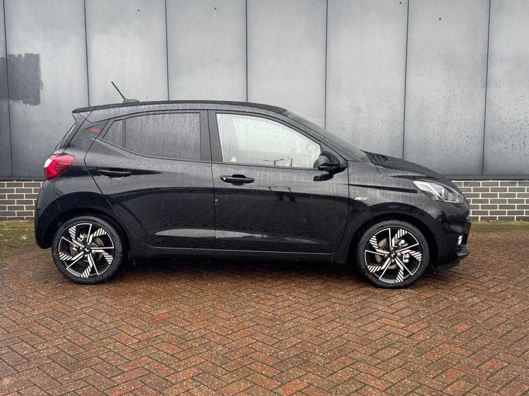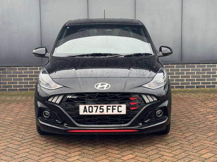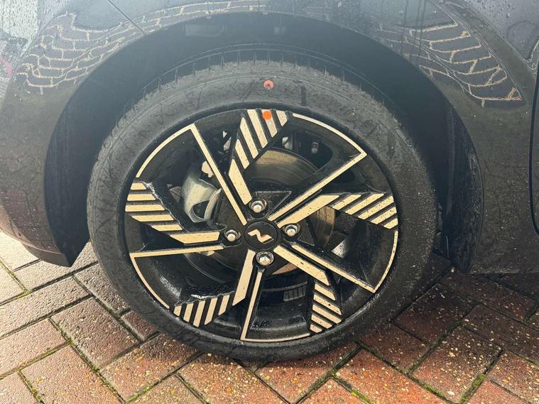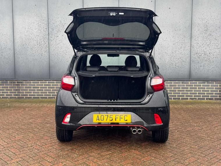 8" Touchscreen satellite navigation including mapcare and LIVE services, Apple car play/Android Auto, Bluelink mobile remote connectivity, Bluetooth connectivity with voice recognition, Cruise control, Driver attention alert system, eCall emergency call system, Forward Collision-Avoidance Assist (FCA) - Pedestrian/Cyclist, Full-width 4.2" LCD instrument cluster, Intelligent speed limit assist, Lane departure warning system with lane keep assist - LKAS, Lane follow assist, PAS, Rear parking sensors, Rear view camera with guidelines, Roadside assistance, Tailgate, Trip computer, Wireless charging pad, 2 front/2 rear speakers, Front and rear USB-C ports, Front USB connection, Leading vehicle alert (LVA), Steering wheel audio, phone and cruise controls, 1 speed non intermittent rear windscreen wiper, Black finish on B pillars, Body colour door handles, Body coloured bumpers, Electric folding door mirrors, Electric front windows, Electric rear windows, Electrically adjustable and heated door mirrors, Flat metal emblem, Front fog lights, Front intermittent wipers, Glossy black door mirrors, Halogen bi-function headlights, Headlights inner with Blade design, Heated rear window, High beam assist, Indicator light on door mirrors, LED daytime running lights, N Line Badging, N Line design front grille, Privacy glass for rear window, Rear LED combination lamps in H pattern, Rear roof spoiler with integrated LED brake light, Rear side wing doors, 12v power outlet - front, 3 seat bench in 2nd row, 60/40 split folding flat to floor rear seats, Air conditioning climate control, Auto light control, Bottle holders in front/rear doors + front centre console, Cabin and luggage compartment interior lighting, Cloth upholstery, Dashboard finisher in Dark Grey Metal with Flame Red air surrounds, Driver + passenger vanity mirrors, Driver's seat height adjustment, Driver/passenger sunvisors with ticket holders, Floor mats, Front door pockets, Front Head Restraints - Vertical and Horizontal Adjustment, Front LED blue mood lighting, Glove compartment, Heated front seats, Heated steering wheel, Height adjustable steering column, Isofix child seat preparation, Leather wrapped steering wheel and gear knob, N Line branded leather gear stick, N Line branded leather steering wheel, Rear door pockets, Single front passenger seat, Vertical adjustment rear head restraints, 13" Rear brake discs, 3x3 point rear seatbelts, Airbags - front, front side and curtain airbags, Anti-lock brake system (ABS), Autonomous emergency braking (AEB) with forward collision warning system, Brake assist function, Childproof rear door locks, Electronic stability control, Front and rear seatbelt reminder, Front seatbelt pretensioners, Hill start assist control (HAC), Passenger airbag deactivate switch, Traction control, Tyre pressure monitoring system, Immobiliser, Perimeter alarm, Rear occupant alert, Remote central locking, Second remote key, Smart key with keyless entry and engine start/stop button, Speed sensitive auto door locking, 16" alloy wheels, N logo centre caps, Temporary mobility kit (TMK),