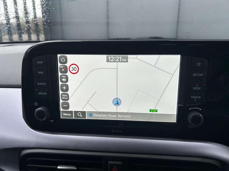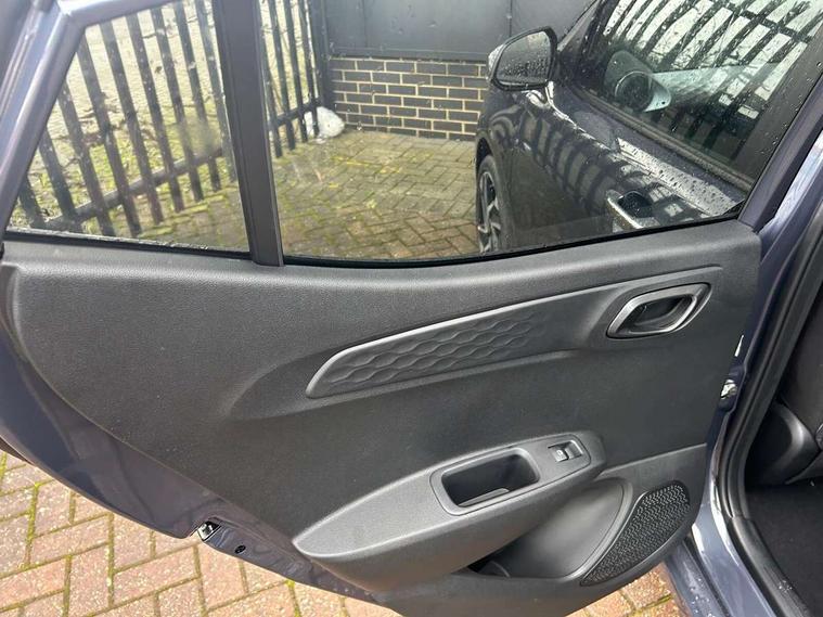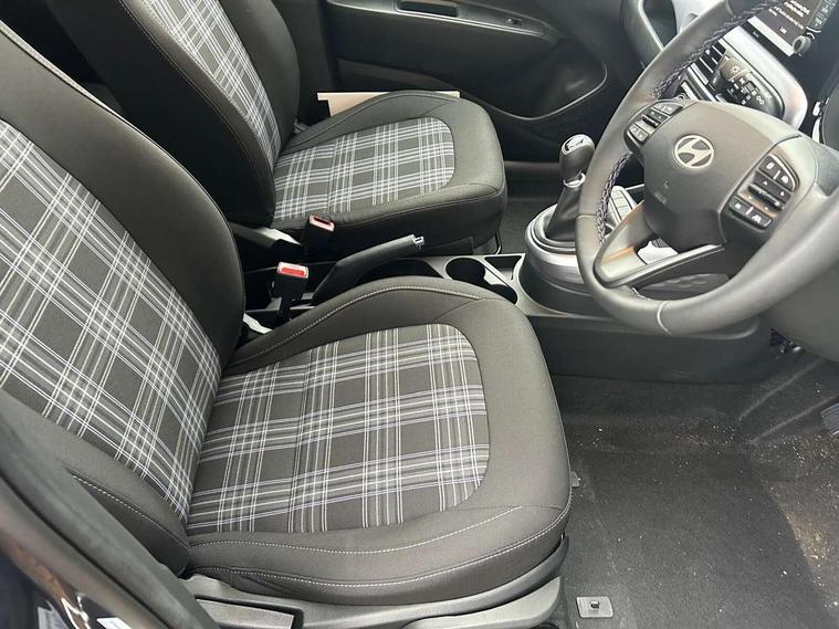 8" Touchscreen satellite navigation including mapcare and LIVE services, Apple car play/Android Auto, Bluelink mobile remote connectivity, Bluetooth connectivity with voice recognition, Cruise control, Driver attention alert system, eCall emergency call system, Forward Collision-Avoidance Assist (FCA) - Pedestrian/Cyclist, Full-width 4.2" LCD instrument cluster, Intelligent speed limit assist, Lane departure warning system with lane keep assist - LKAS, Lane follow assist, PAS, Rear parking sensors, Rear view camera with guidelines, Roadside assistance, Tailgate, Trip computer, Wireless charging pad, 2 front/2 rear speakers, Front and rear USB-C ports, Front USB connection, Leading vehicle alert (LVA), Steering wheel audio, phone and cruise controls, 1 speed non intermittent rear windscreen wiper, Black finish on B pillars, Body colour door handles, Body coloured bumpers, Body coloured door mirrors, Electric folding door mirrors, Electric front windows, Electric rear windows, Electrically adjustable and heated door mirrors, Flat metal emblem, Front fog lights, Front grille in glossy black, Front intermittent wipers, Halogen bi-function headlights, Headlights inner with Black Blade design, Heated rear window, High beam assist, Indicator light on door mirrors, LED daytime running lights, Privacy glass for rear window, Rear roof spoiler with integrated LED brake light, Rear side wing doors, 12v power outlet - front, 3 seat bench in 2nd row, 60/40 split folding flat to floor rear seats, Air conditioning climate control, Auto light control, Bottle holders in front/rear doors + front centre console, Cabin and luggage compartment interior lighting, Cloth upholstery, Driver + passenger vanity mirrors, Driver's seat height adjustment, Driver/passenger sunvisors with ticket holders, Floor mats, Front door pockets, Front Head Restraints - Vertical and Horizontal Adjustment, Front LED blue mood lighting, Glove compartment, Heated front seats, Heated steering wheel, Height adjustable steering column, Isofix child seat preparation, Leather wrapped steering wheel and gear knob, Metallic grey dashboard finisher with Meta Blue air vent rings, black/purple grey C-Pad and dark metallic garnish console, Rear door pockets, Single front passenger seat, Vertical adjustment rear head restraints, 13" Rear brake discs, 3x3 point rear seatbelts, Airbags - front, front side and curtain airbags, Anti-lock brake system (ABS), Autonomous emergency braking (AEB) with forward collision warning system, Brake assist function, Childproof rear door locks, Electronic stability control, Front and rear seatbelt reminder, Front seatbelt pretensioners, Hill start assist control (HAC), Passenger airbag deactivate switch, Traction control, Tyre pressure monitoring system, Immobiliser, Perimeter alarm, Rear occupant alert, Remote central locking, Second remote key, Smart key with keyless entry and engine start/stop button, Speed sensitive auto door locking, 16" alloy wheels, Temporary mobility kit (TMK),