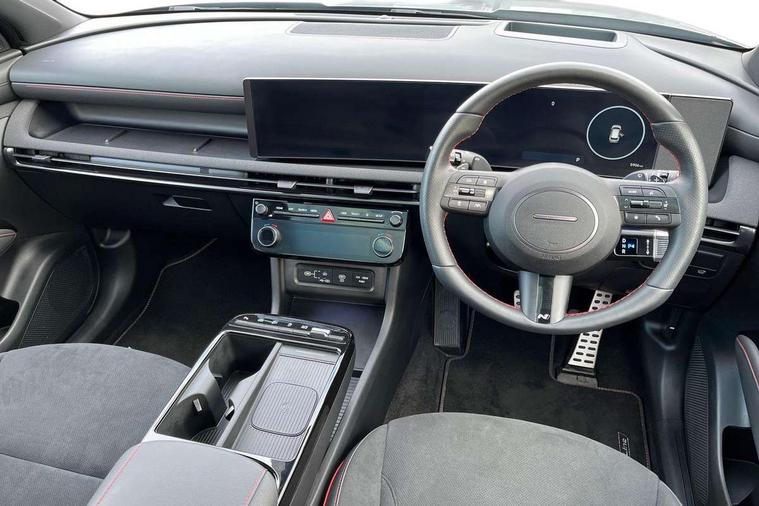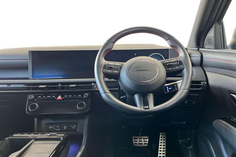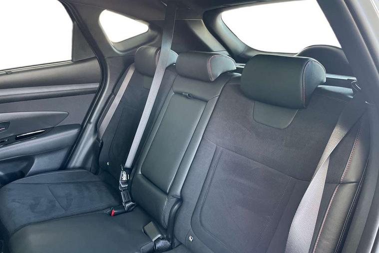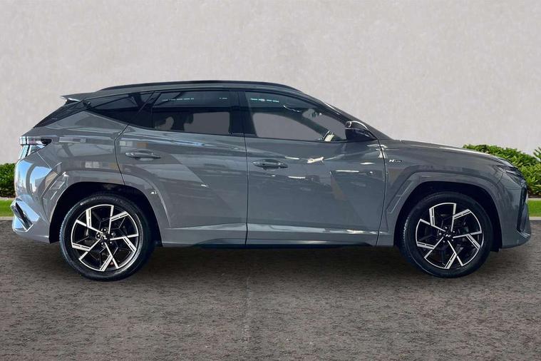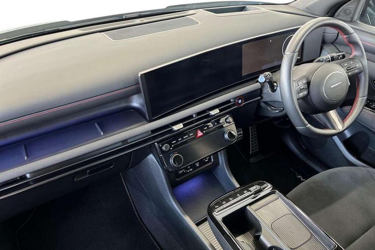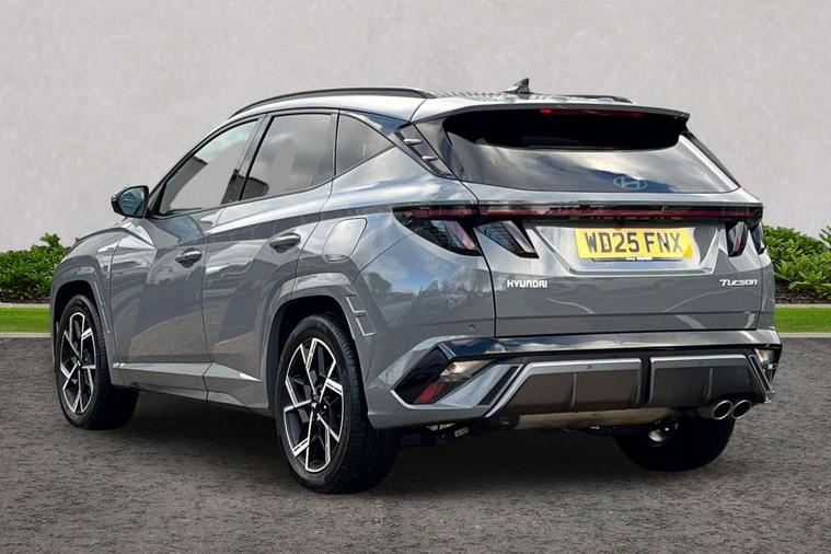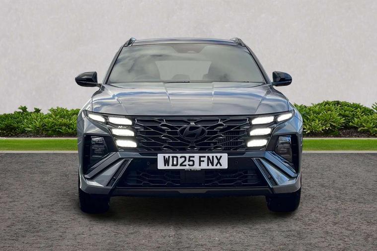 12.3" LCD display with driver's supervision instrument cluster, 12.3" widescreen navigation with bluelink and mapcare, Blind spot view monitor, Bluetooth system, Cruise control - smart adaptive speed control with stop and go function, Digital clock, Drive mode selector, Driver attention warning, E-call, Emergency stop signalling system, Forward Collision Avoidance Assist (FCA) - Car, Pedestrian and Cycle, Forward Collision Avoidance Assist Junction Turning (FCAJX), Front and rear parking sensors, Front, rear and side parking distance warning, Head up Display, Highway Driving Assist (HDA), Hyundai road side assistance, Intelligent speed limit assist, Lane follow assist, Lane keep assist, Over the air updates(OTA), Parking collision avoidance assist (PCA), PAS, Rear camera and guidance parking system, Rev counter, Smart power tailgate, Surround view monitor, Tailgate open warning light, Trip computer, Trip odometer, Voice recognition, Water temperature gauge, Windscreen washer fluid sensor and warning indicator, Wireless Apple CarPlay/Android Auto, Wireless phone charging pad, Shift by Wire Gear Selector (SBW), 2 front and 2 rear USB-C ports, DAB Digital radio, Krell premium audio system with 8 speakers and subwoofer, Steering wheel mounted audio/phone controls, Adjustable intermittent front windscreen wipers with aero wiper blade, Auto dimming rear view mirror, Automatic defog system, Automatic headlights with dusk sensor, Automatic windscreen wipers with rain sensor, Body colour bumpers, Body colour door mirrors with integrated indicators, Body colour exterior door handles, Body coloured wheel arches, Electric tilt/slide panoramic sunroof, Electrically adjustable, heated and power folding door mirrors, Follow me home headlights, Front and rear electric windows with anti-trap mechanism and one touch control, Front fog lights, Glossy black bumper mouldings, LED 3rd brake light, LED daytime running lights, LED rear lights, Matrix LED headlights, Positioning Lights - LED, Privacy glass - Rear windows and tailgate, Rear side wing doors, Rear wash/wipe with intermittent wipe setting, Roof rails, Soft touch rear door paneling, Tinted glass with windscreen shade band, Trailer stability assist, 12V power outlets in front console and luggage compartment, 3 seat bench in 2nd row, 40/20/40 split folding rear seat, 64 colours interior ambient lighting, Adjustable head restraints (Up and down), Cupholders in rear armrest, Door courtesy lights, Driver and passenger sunvisors with illuminated LED vanity mirrors, Driver's seat electric adjustments, Front and rear door pockets, Front armrest with storage box, Front centre console and door bottle holders, Front passenger's seat electric adjustments, Heated front seats, Heated rear seats, Heated steering wheel, Height/reach adjustable steering column, Illuminated/air conditioned glove compartment, ISOFIX child seat anchorage points attached on outer rear seats, Leather wrapped steering wheel and gear knob, Leather/faux textile suede upholstery, LED interior lighting, Luggage compartment lighting, Luggage cover, Luggage hooks, Luggage net, Map and reading lights, Metal pedals, Rear seat remote folding function, Rear side window sunblind, Reclining rear seats, Retractable load cover, Single front passenger seat, Sunglasses holder, Three zone climate control, Touch sensitive climate controls with temperature dials, TUCSON branded metal door scuff plate, Underfloor boot compartment, Ventilated front seats, Wireless charging with armrest, N Line design package - Tucson, N Line interior design package - Tucson, Trailer wiring package - Tucson, 3x3 point rear seatbelts, Active bonnet, Airbag - Front, front side, curtain and centre front airbags, Anti-lock brake system (ABS), Brake assist function, Childproof rear door locks, Curtain airbag roll over sensor, Downhill brake control, Electric parking brake, Electronic stability control, Front and rear seatbelt reminder, Front passenger airbag deactivation switch, Front seatbelt pretensioners, Hill start assist control (HAC), Multi-Collision braking, Outer rear seatbelt height adjustment, Seatbelt height adjustment for front seats, Traction control, Tyre pressure monitoring system with individual tyre pressure display - TPMS, Vehicle stability management, Deadlocks, Immobiliser, Locking wheel nuts, Remote control central locking, Smart key with keyless entry and engine start/stop button, Speed sensitive auto door locking, Thatcham category 1 alarm, 19" Alloy wheels, Tyre repair kit,