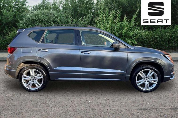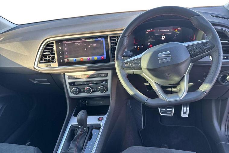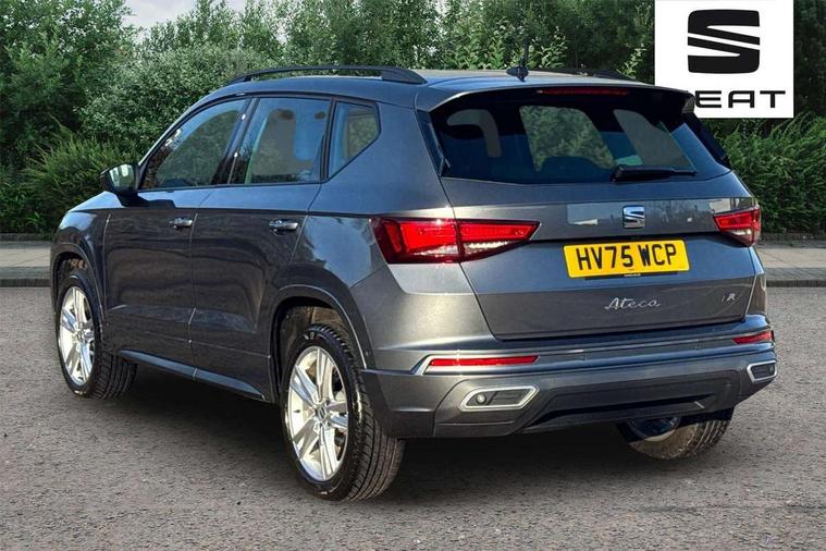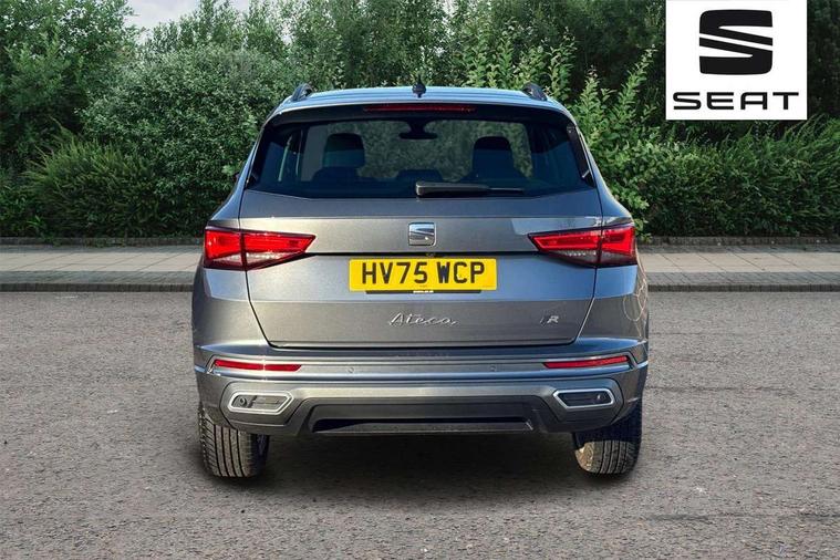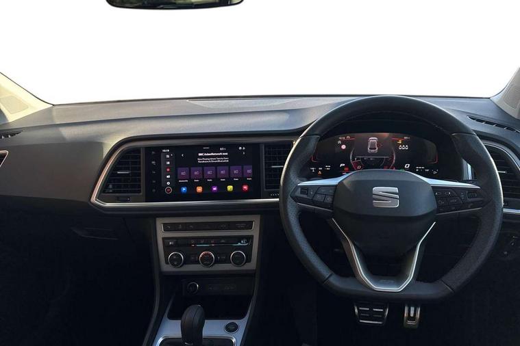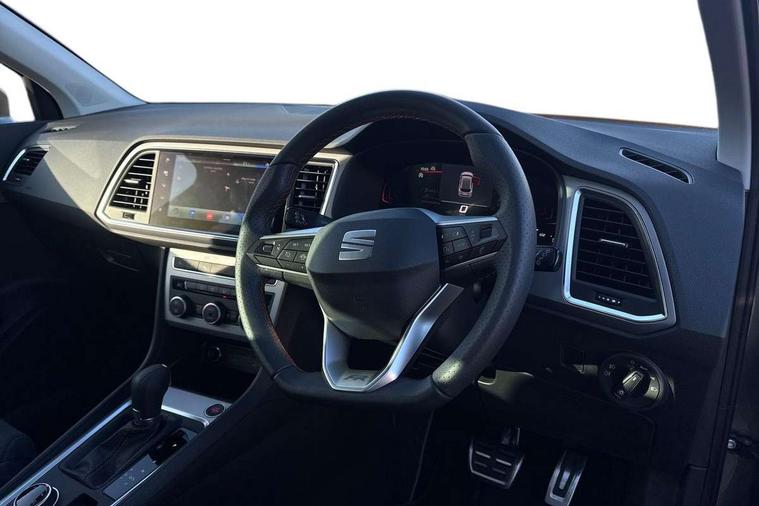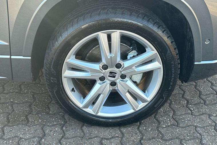 8" Digital cockpit, Bluetooth audio streaming with handsfree system, Cruise control system with speed limiter, E-call, Electric tailgate with virtual pedal, Outside temperature gauge, Progressive power assisted steering, Rear view camera, SEAT drive profile with driving experience button - Normal, Sport, Eco and Individual mode, gearshift, steering and throttle response, Self parking functionality (includes front and rear parking sensors), Start/stop system, Trip computer, wired and wireless full link smartphone integration, Wireless phone charger, Steering wheel mounted audio/phone controls, Black roof rails, Black side window trim, Body colour bumpers, Body coloured wheel arch surrounds, Chrome front grille frame, Dark tinted rear windows, Daytime running lights, Door mirrors with welcome light silhouette, Dynamic headlight range control with self adjusting whilst driving, Electric adjustable/heated/folding door mirrors, Front and rear electric windows, Illuminated aluminium front door sill, LED 3rd brake light, LED headlamps with lens and LED front fog lamps with cornering function, LED rear tail lights with dynamic indicators, Rear exhaust tailpipe, Rear fog lights, Rear side wing doors, Rear spoiler, Rear wash/wipe, Variable front intermittent wipers, 12V socket in front, 3 seat bench in 2nd row, 60/40 split folding rear seat, Aluminium pedals, Dinamica upholstery with front comfort seats, Drawer under right front seat, Dual zone climate control, Front and rear head restraints, Front centre armrest, Front seat back storage pockets, Height adjustable driver and passenger seat with lumbar adjustment, ISOFIX points in outer rear seats with top tether anchorage points, Leather sports steering wheel and gear knob, Rear armrest and easy back seat release mechanism from boot, Single front passenger seat, Steering wheel mounted gearshift paddles, Convenience pack - Ateca, Interior lighting pack - Ateca, Navigation system pack with DAB - Ateca, Safety and driving pack with attention and drowsiness assist - Ateca, 3x3 point rear seatbelts, ABS, Traction control system (TCS), Electronic stability control (ESC) and Electronic differential lock system (XDS), Airbags - Driver and front passenger airbag with deactivation, front side, two curtain and driver's knee airbags, Electric parking brake with auto hold function, Front and rear seatbelt reminder, Front assist with autonomous emergency braking, Hill hold control, Manual rear child locks, Single tone horn, Tyre pressure monitoring system, Alarm, Keyless entry, Locking wheel bolts, Remote central locking, Chrome interior detailing, 18" Brillaint silver alloy wheels, Tool kit,