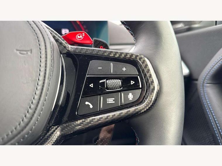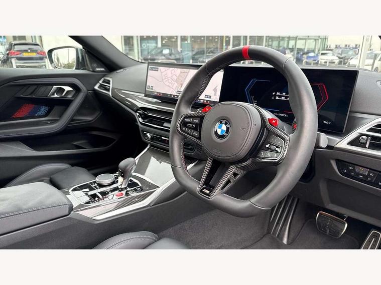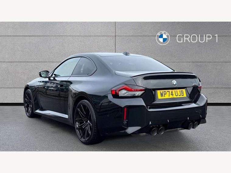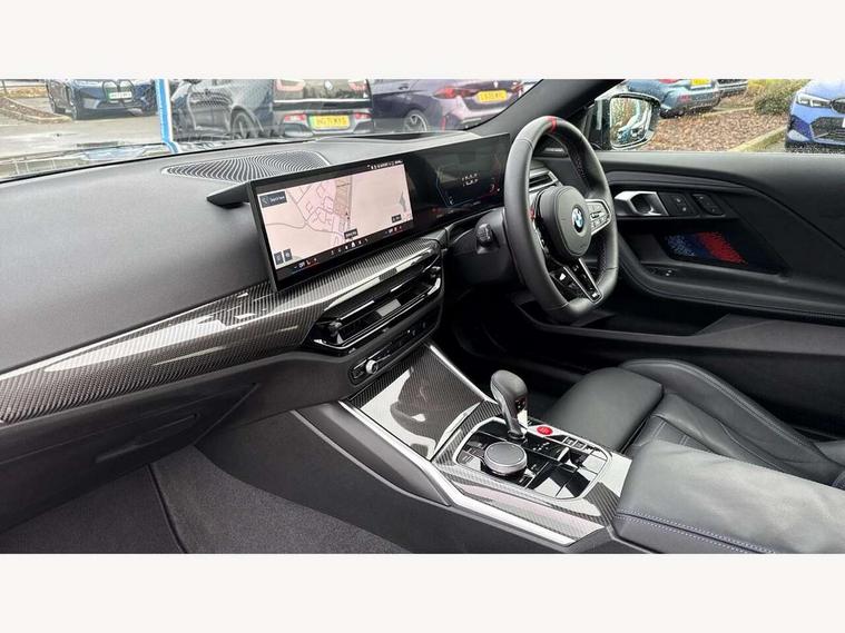 Active Guard, BMW ConnectedDrive online services, BMW legal emergency call, BMW Live Cockpit Professional including Full colour Head up display with configurable HUD contents, BMW Teleservices, Check control system, Configurable dashboard display, Control Infotainment, Digital owner's manual, Drive off assistant, Driver attention warning, Engine start button, Exterior temperature display, Flat tyre monitor, Language version English, Oil sensor for level and grade, On board diagnostics, On board documentation English, PAS, Service interval indicator, Shifting point display, Start/stop system, Storage for wireless charging, Travel data recorder, Trip computer, Voice control for audio, climate, telephone, navigation, Widescreen display, M Adaptive suspension, M Drive Professional including track mode, laptimer, traction control & Drift analyser, M Sport differential, M steptronic sport transmission with drivelogic, DAB tuner, Harman/Kardon surround sound audio system with 464W power digital amplifier, 9 channels and 14 speakers, Harman/Kardon surround sound system, Personal eSim, Adaptive LED Headlights, Automatic headlamp activation, Automatic headlamp levelling, Door mirror integrated indicators, Dynamic brake lights, Electric adjustable heated door mirrors, Electrochromic interior rear view mirror, Exterior mirrors with memory function and automatic parking function, Fading support, Follow me home headlights, Front and rear bumper system, Front electric windows, Headlight beam throw control, Heat protection, sun protection glazing, High beam assistant, LED 3rd brake light, LED daytime running lights, LED indicator lights, LED number plate light, LED rear lights, M high gloss shadowline extended, M high gloss shadowline exterior trim in mirror triangle cover, mirror cover panel, mirror bezel and window border, M lights shadowline, Rain sensor, Rear boot, Sun protection glass, Trailer stabilisation logic, Variable front intermittent wipers, 12V power socket in front centre console with blanking plug, 2 cupholders, 2 rear head restraints, 2 rear seats, 3 spoke leather M multi-function steering wheel, Ambient lighting, Black velour front and rear floor mats, Compartment in front of cupholder, Driver and front passenger heated seats, Driver/passenger electric lumbar adjustment, Electrically adjustable front seats - driver seat with memory, English handbook, Folding rear seat head rests, Front and rear door exit lights, Front and rear footwell lights, Front centre armrest, Front door pockets with bottle holders, Front door sill strips with aluminium inlays and M2 labelling, Front interior light, Front M Sport seats, Front reading lights, Glove compartment, Glovebox light, Heated steering wheel, Height adjustable front headrests, Illuminated armrest storage compartment, Isofix child seat for two outer rear seats, Luggage compartment lighting, M Accent Surfaces Illuminated: Highlighters in the door trim inlay panels and light module in the instrument cluster with M stripes, M Anthracite headlining, Manually adjustable steering column, Rear armrest, Single front passenger seat, Storage compartment in rear doors, Storage tray and compartment with cover in centre console, Through loading system with 40/20/40 split folding rear seat, Two zone automatic air conditioning, Vanity mirror lights, BMW Live cockpit plus pack - M2, Comfort access pack - M2, Connected package professional - M2, Driving Assistant package - M2, Interior and exterior mirror package - M2, Parking assistant package - M2, Storage compartment package - M2, 4 x 3 point seatbelts, ABS/EBD, Automatic Stability Control (ASC), Cornering brake control (CBC), Crash sensor, Curtain airbags, Dry braking, DSC - Dynamic Stability Control, Dynamic brake control, Electromechanical parking brake, Emergency door unlock, First aid kit, Front airbags for driver and front passenger, Front passenger airbag deactivation, Head airbags for all 4 outer seats, Height adjustable front seatbelts, M seat belts, PC iBrake (Post crash approach control warning with light braking function), Seatbelt pretensioners with load limiters, Seatbelt reminder, Side airbags for driver and front passenger, Tyre pressure monitoring system, Warning triangle, Alarm system, Drive away door locking, Immobiliser, Locking wheel bolts, Remote central locking, Tyre repair kit,
