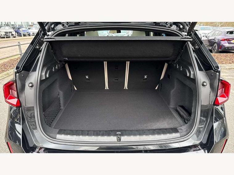 Attentiveness assist, Automatic start/stop function, BMW Live Cockpit Plus with 10.25" instrument cluster and 10.7" display, BMW Operating system 9 with BMW Maps, real-time traffic information, in-car experiences, remote services and smartphone integration, BMW Teleservices, Brake pad wear indicator, Condition based service, Connected eDrive Services, Drive off assistant, Electrically opening/closing tailgate with opening/closing with remote control and contactless opening and closing, iDrive controller, Language version English, My Modes, Parking Assistant with Reversing Assistant, active PDC, Lateral Parking Aid, Rear View Camera and Park Distance Control, Personal Profile - automatic lock when driving away selectable, Servotronic PAS, Tyre puncture warning system, Widescreen display, 11 kW AC charging power, eDrive exterior sound, EU6 emissions management, Fast charging cable professional mode 3 for public charging, M Adaptive suspension, Performance Control, Petrol Particulate Filter, Steptronic transmission with double clutch and gear shift paddles, xDrive intelligent four wheel drive system, BMW Personal eSim, DAB Digital radio, Badge on engine compartment lid and tailgate, Body colour door mirrors, Dynamic brake lights, Electric adjustable heated door mirrors, Electric windows - front and rear, with open/close fingertip control, anti-trap facility and comfort closing, Folding door handles integrated flush with surface, Follow me home headlights, Front and rear bumper panel with M specific design, in body colour with inserts in black high gloss, Front door exit lights, Heated rear window, High gloss shadowline, Invisible exhaust tailpipe, Key with M identification, LED 3rd brake light integrated in rear spoiler, LED daytime running lights, LED number plate light, M identification on the sides, M roof rails high gloss shadow line, M specific radiator grille in satinated aluminium, Matt black roof strips, Model inscription on right tailgate, Rain sensor including auto headlights activation, Rear side wing doors, Rear wiper, Sill cover in body colour, Trailer stabilisation logic, Windscreen washer nozzle for rear view camera, Windscreen wipers front with heated washer nozzles, 12V - Power sockets with front centre console and luggage compartment, 2 bag hooks in luggage compartment, 2 cup holders in front, 2 x USB Type C ports for charging in front centre console + 1 x USB Type C ports for charging in rear centre console, 3 rear headrests, 3 seat bench in 2nd row, 3 upper retaining strap clips integrated into rear panels of seat backrests, 4 grab handles, 40:20:40 split folding rear seats, Ambient interior lighting, Anthracite headlining, Anthracite Velour front and rear floormats, Bottle trays in all doors, Child seat ISOFIX attachment for two outer rear seats and front passenger seat with anchorage points, Clothes hook rear, Driver and front passenger heated seats, Dual zone automatic air conditioning, Front and rear door pockets, Front and rear footwell lighting, Front centre console storage compartment, Front/rear adjustable head restraints, Glove compartment, Interior door handle recess light on all doors, Light on right in luggage compartment, M sport leather steering wheel, Manual steering column height and depth adjustment, Middle centre console storage compartment, One piece parcel shelf opens together with tailgate and removable, Rear armrest in door trim panel, Single front passenger seat, Sport leather multifunction steering wheel with thumbrests and operation of instrument display, audio, telephone and driver assistance, Storage compartment net in left side trim panel, Storage compartment with folding cover under centre console armrest cushion, Storage tray in right side trim panel, Tilt adjustment incl. cargo function of 2nd row of seats, Vanity mirror lights, ABS/EBD, Automatic hold function, Automatic Stability Control (ASC), BMW emergency call, Braking readiness, Cornering brake control (CBC), Crash Sensor - activates hazard/interior lighting + unlocks doors, Driver/Front Passenger airbags, Driver/front passenger side airbags, Dry braking, Dynamic brake control, Dynamic stability control + (DSC+), Electromechanical parking brake, Energy recovery system, First aid kit, Front and rear brake discs, Front and rear head airbags, Front passenger airbag deactivation, Integrated brake system, PC iBrake PostCrash approach control warning with light braking function, Rear door child safety locks, Three point seat belts in all seats, Tyre pressure monitor, Warning triangle, Alarm system with tilt sensor, monitoring doors, bonnet interior and tailgate, Closing system with central locking, Locking wheel bolts, Luxury instrument panel, Tyre repair kit plus,