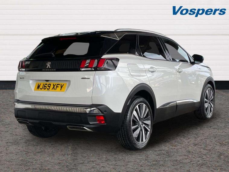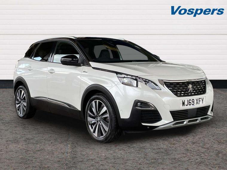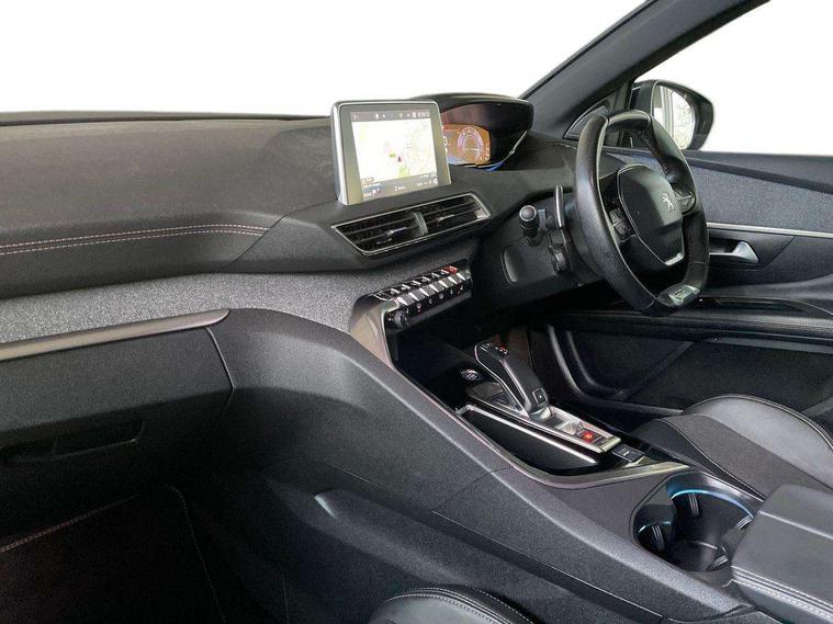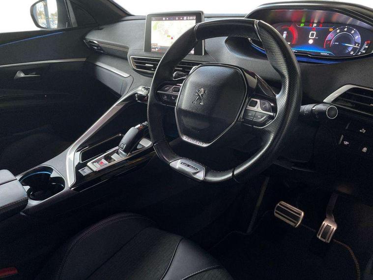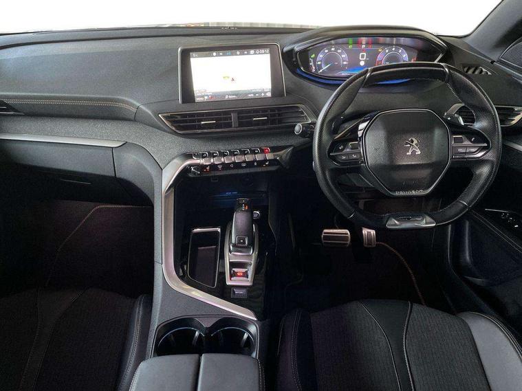 Brumeo fabric Dashboard, front and rear door panel finish, Satin chrome dash trim, Satin chrome instrument dial surrounds, Safety pack - 3008, Safety Plus Pack - 3008, Visibility pack - 3008, 19" Washington two tone diamond cut alloy wheels, Space saver spare wheel, Anti theft alarm, Automatic door lock/re-lock after 30 seconds, Automatic hazard light activation upon heavy brake application, Central locking button on dash, Deadlocks, Electric tailgate with Peugeot open & go system, Electronic immobiliser, Locking wheel bolts, Remote control central locking with two plip keys, DAB Digital radio, Steering column mounted multifunction controls, USB socket, 3x Rear three-point retractable seatbelts with force limiters in the outer rear seats, Adaptive driver and front passenger airbags with passenger airbag deactivation function, Anti-lock braking system with electronic braking distribution and emergency braking assistance, Auto city emergency braking, Driver and front passenger side airbag, Driver SMART airbag, Electric child locking functionality on rear windows and doors, Electric parking brake, ESP with ASR, Front and rear curtain airbags, Front optimised safety headrests and 3 x rear retractable headrests with height adjustable, Front passenger SMART airbag with deactivate switch, Front three point retractable seatbelts with pre tensioners and force limiters, Front ventilated disc brakes and rear disc brakes, Height adjustable front seatbelts, Hill start assist, Tyre pressure sensor, 2 X Rear number plate lights, Aluminium longitudinal roof bars, Automatic triggered rear windscreen wiper in reverse gear, Black and chrome front wing trim, Black bumper protection plate, Body colour door handles, Body colour rear spoiler with stainless steel edging trim, Body coloured bumpers, Body protectors (bottom of front and rear bumpers + wheel arches + protection at bottom of doors) in black, Chrome bumper inserts, Chrome front fog light trim, Chrome radiator grille and surround, Chrome rear bumper facia, Chrome side window trim, Dark tinted rear side windows + tailgate window, Door mirror mounted LED Peugeot lion approach lights, Electric operated/heated door mirrors, Front windscreen wiper with magic wash cleaning system, Full LED headlights with LED fog lights with static cornering function, sports front bumper and grille, Gloss black finish B and C pillar, Gloss black rear cluster connecting strip, Gloss black windscreen surround, GT Line emblem in satin copper, Headlights left on audible warning, Heated rear windscreen with integrated antenna, LED daytime running lights, LED sequential scrolling front indicators, LED side indicator lights integrated into door mirrors, Lion grey front bumper scuff plate, Nera black door mirrors, One touch electric front/rear windows with pinch protection, Panoramic opening glass roof, Power folding door mirrors with blind spot detection indicator and auto dipping function in reverse gear, Radiator grille in chrome edge trim with chequered design and black 'PEUGEOT' lettering, Rear LED Peugeot signature 'Claw Effect' lights, Sports front bumper, Stainless steel roof arches, Twin exhaust tailpipe, 1/3 to 2/3 split folding rear seats, 12V Sockets in dashboard, rear cabin and load area, 2 cupholders in front centre console, 2 rear reading spotlights, 230V socket on rear centre console, 2x Rear coat hooks, 3x Isofix child seat fittings in the front passenger and outer rear seats, 4 Grab handles retractable and damped, 4 Lashing eyes in boot, Aikinite stitching in armrest, gear lever and dashboard facia, Automatic gear lever in satin chrome, Blue ambient lighting for connecting zone, Blue ambient lighting to front door panels, central storage and cupholders, Blue ambient lighting to head up instrument panel, Centre front armrest with butterfly wing opening and illuminated storage compartment, Driver and front passenger seat height adjustment, Driver seat manual adjustment, Dual zone automatic climate control, Electric power steering with reach and rake adjustable steering column, Fixing rings 4 in load compartment, Flocked front door pocket interior with blue ambient lighting, Flocked glovebox interior, Fold flat front passenger seat with picnic table, Footwell illumination, Front headrests, Front interior light with 2 reading spotlights and rear interior light with timer, Front seat back map pockets, Gear shift indicator, Height adjustable headrests, Illuminated glovebox, Illuminated vanity mirrors, LED interior lighting in storage spaces and load area, Mistral floor mats with Aikinite contrast stitching, Mistral full grain perforated leather steering wheel with aikinite stitch detail and satin chrome 'GT Line' emblem, Rear armrest with ski flap and two cup holders, Rear centre console ventilation system, Rear headrests, Reclining front seats, Roof LED interior lighting, Roof lining - Mistral black, Satin chrome dashboard trim, Satin chrome digital instrument panel and touchscreen trim, Satin chrome front door panel recess trim, Satin chrome interior door handles, Satin chrome scorpion's tail and toggle switch trim, Seatbelt not fastened audible and visual alert for front seats, Seatbelt unfastened on the move audible and visual alert for front and rear seats, Stainless Steel Scuff Plates, Two position boot floor, 'Lights On' Reminder warning buzzer, 3D connected navigation + voice control + Peugeot connect SOS and assistance, Bluetooth telephone facility, Digital clock, Exterior temperature indicator with ice warning, Front and rear parking sensors, Lane departure warning system, Mirror screen with mirror link, apple carplay and android auto, Multi function trip computer, PEUGEOT i-Cockpit with 8.0" capacitive touchscreen in centre console, PEUGEOT i-Cockpit with amplify (choice of two configurable interior ambiences), PEUGEOT i-Cockpit with compact sports steering wheel, PEUGEOT i-Cockpit with configurable 12.3" Head-up digital instrument panel, Smartphone charging