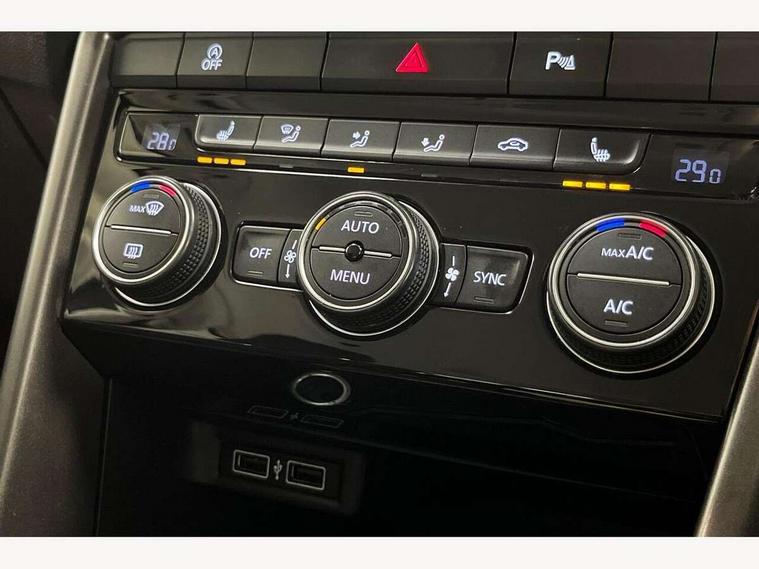 2 USB connection charging sockets, Adaptive cruise control, App-Connect, Automatic start/stop system, Bluetooth telephone and audio connection for compatible devices, Car information display, Front assist, radar sensor controlled distance monitor, city emergency braking + predictive pedestrian protection, Lane assist, Multifunction computer with visual gear change recommendation for fuel consumption, Power assisted speed sensitive steering, Service interval indicator, Think blue trainer driver tips and journey analysis, Warning sound and light for doors and tailgate open, Warning sound and light for front seatbelts unfastened, Battery regeneration during braking, Bluetooth - Simultaneous pairing of 2 compatible mobile devices, DAB Digital radio, Multi device interface (MDI) with USB connection, Music playback - MP3, WMA and AAC files, Premium USB cable in choice of either Apple or Android smartphone compatibility, SD card slot, SMS functionality - read, compose and send SMS messages using touch-screen display, Title and cover art display, Auto dimming interior rear view mirror, Automatic hazard lights activation under emergency braking, Black grained lower door protectors, Black grained wheel arches, Body colour bumpers with silver metallic underbody fascia, Body colour door handles, Chrome trim on upper and lower radiator grille, Door mirror integrated indicators, Dusk sensor, Electrically foldable, adjustable and heated door mirrors with puddle lights and reverse activated kerb-view adjustment on passenger's door mirror, Front and rear electric windows, Front windscreen wiper with intermittent wipe and 4 position delay, Fully galvanised body, Heated rear window, High level 3rd brake light, LED rear number plate lights, Manual coming/automatic leaving home lighting function, Rain sensor, Rear windscreen washer and wiper with interval delay, 12V socket in centre console storage area, 2 front reading lights, 3 rear head restraints, 4 load lashing points in luggage compartment, Climate control - 2 zone electronic air conditioning with automatic air recirculation and allergy filter, Drawer under drivers seat, Front centre armrest with storage compartment, longitudinal and height adjustable and two rear air vents, Front cupholders x 2, Front seat back storage pockets, Glovebox, Height adjustable front seats, Height/reach adjust steering wheel, Illuminated vanity mirrors, Instrument lighting, white adjustable panel illumination, Interior light delay, Isofix easy fit child seat preparation for 2 outer rear seats, Load through provision with single cup holder when folded down, Luggage compartment cover, removable, Luggage compartment lighting, Split folding rear seat backrests with centre armrest, Storage compartment in left and right luggage area, Storage compartment in rear doors, Storage compartments in driver and front passenger doors, 3 rear three point seatbelts, ABS, Driver and front passenger safety-optimised head restraints, Electronic parking brake with auto hold, ESC with EDL, ASR, EDTC and trailer stabilisation function, Front and rear curtain airbags, driver and front passenger airbags with passenger deactivation switch and front side impact airbags, Rigid safety cell with front and rear crumple zones, Three point height adjust front seatbelts + pretensioners, Tyre pressure loss indicator, Ventilated front and rear disc brakes, Volkswagen roadside assistance, Alarm with remote central locking and interior protection, Electronic engine immobiliser, Remote central locking with 2 remote folding keys, Dark oak brown decorative inserts in dash and door panel,