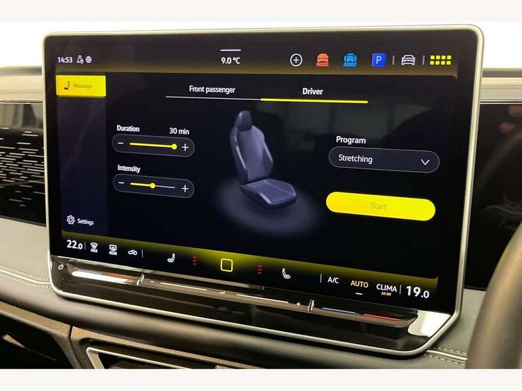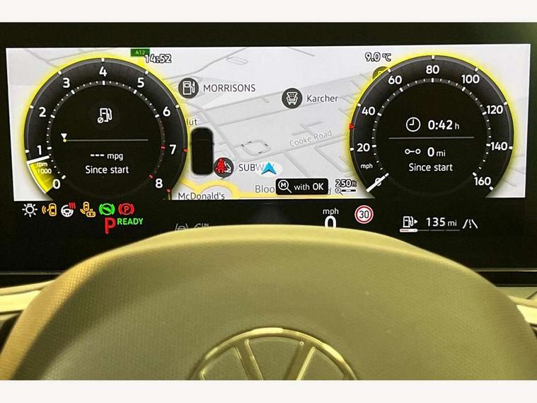 Adaptive cruise control ACC including speed limiter, Advanced driver attention and drowsiness monitor, App-Connect incl. App-Connect Wireless for Apple CarPlay and Android Auto, Area view camera [PAV], Bluetooth phone integration system, Comfort drive travel assist, Digital Cockpit Pro - 10.25" high resolution dash display screen with customisable menus and information, Dynamic road sign display, E-Sim card for online connectivity, eCall emergency call service, eCall emergency call system, Extended safety system (proactive passenger protection system), Full electric tailgate operation, Head up Display, Inductive smartphone charging without external antenna connection, Lane change system, Side assist, Rear traffic alert and Exit warning system, Lane keeping system Lane Assist, Multifunction front facing camera, Navigation system, Oncoming vehicle braking when turning including swerve support, Park assistance plus with front and rear parking sensors, Power assisted steering with speed sensitive, Rear view camera, Rev counter, Service interval indicator, Speed limit display, Start/stop system with regenerative braking, Trip computer, Voice control and enhancer, Warning signal and warning light for front and rear seatbelts not fastened, Wireless App-Connect, Front wheel drive, 15" Infotainment display, 8 Speakers, DAB radio, Diversity antenna for FM reception, Ambient lighting with logo projection, Auto dimming interior rear view mirror, Automatic headlight control system, Body colored bumpers in R-Line style, Body colour door handles, Body coloured door mirrors with integrated indicators, Chrome moldings on the side windows, Coming/leaving home lighting function, Dynamic headlight range control with dynamic cornering light, Exterior mirrors power folding, auto-dimming on drivers side with surround lighting and memory feature, Front and rear electric windows, Heat insulating darkened glass in side and rear windows, Heated windscreen washer jets, High Beam Assist, automatic sensing for switching between dipped and main beam, High level 3rd brake light, High-resolution matrix beam plus digital projection, Highway light, Illuminated door handle recesses, Illuminated lightline between headlamps and illuminated door handle recesses, IQ.Light - HD matrix headlamps with poor weather light, entry and exit lighting, Laminated safety glass from B-pillar backwards 90% tinted, Laminated safety glass windshield, heat and sound insulating, LED rear lights with welcome farewell lights with illuminated Volkswagen Logo, LED separate daytime running light, Rear fog light on one side, reversing light on both sides, Rear side wing doors, Rear wiper, Remote electrically foldable door mirrors, puddle lights and reverse activated passenger's door mirror, Silver roof rails, 12V outlet in center console rear and in luggage compartment, 12V socket in centre console, 2 USB-C ports in the front, 2 USB-C charging sockets on the centre console in rear, charging capacity up to 45 W, 3 bench rear seats in 2nd row, 3 rear headrests, 30 colours options interior ambient lighting, Air Care Climatronic 3 zone automatic climate control with enhanced air filter and controls in the rear, Carpet mats, front and rear, Centre console with illuminated storage compartment with sliding cover and two drinks holders, Door and side trim panel with leatherette insert, Door sill protectors, Drivers seat with manual adjustment of seat travel and height and backrest angle with thigh support longitudinally sliding, Front centre armrest, Front massage seats, Front sports comfort seats, Heated front seats, Heated steering wheel, Height adjustable front seats, ISOFIX anchors for child seats on outer rear seats and front passenger seat compatible with i-Size, Leather wrapped multifunction steering wheel with paddle shift, Mechanical rear seat release, Power adjustable lumbar support in front, Rear bench seat asymetrically split folding, longitudinally movable and folding with load-through hatch and center armrest, Safety optimised front head restraints, Single front passenger seat, Sun visors with illuminated vanity mirrors, Variable luggage compartment floor, 3 point seat belt for centre rear seats, 3 Point seat belts in front with pretensioners, 3 point seatbelts in outer rear with ECE label, Autonomous emergency braking front assist with pedestrian and cyclist monitoring, Driver/Front Passenger airbags, Electronic parking brake with auto hold, Front disc brakes, Front passenger airbag deactivation, Manual rear child locks, Rear disc brakes, Two tone horn, Tyre pressure loss indicator, Warning triangle, Anti theft alarm system with interior monitoring, backup horn and towing protection, Anti theft wheel bolts, Central locking system keyless entry, Chrome elements on the mirror switch and power window switches, door pulls interior door handle in matte chrome, Decorative inserts Cross in dash and front door panels, Tool kit for tyre mobility set,