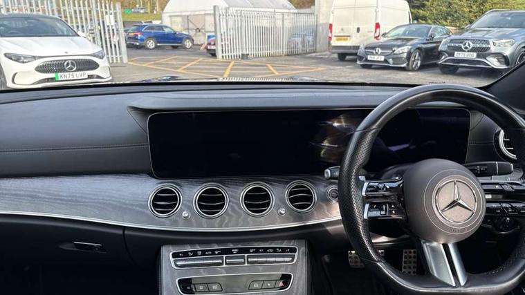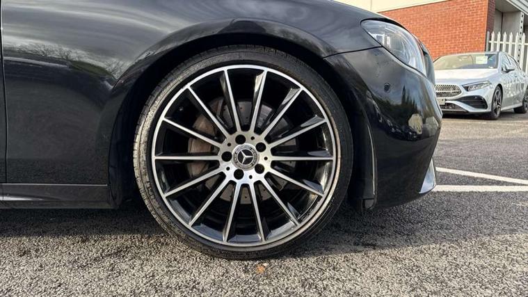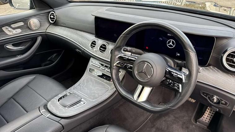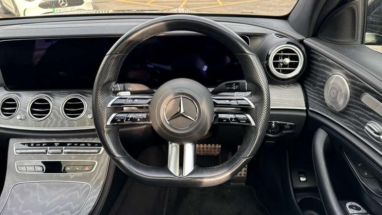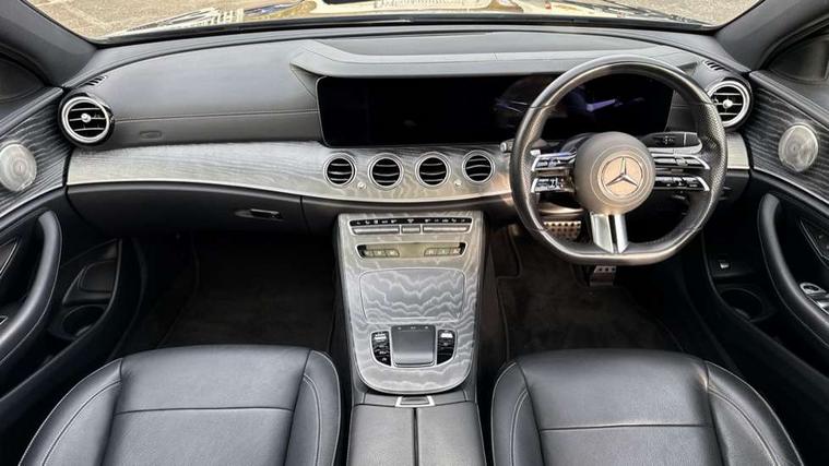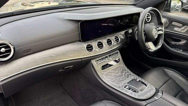 Attention assist, Brake wear warning display, Cockpit display 12.3" widescreen digital instrument cluster, Direct steer speed sensitive steering, DYNAMIC SELECT with a choice of driving modes (ECO, Comfort, Sport, Sport+ and Individual), ECO start/stop function, High resolution 12.3" multimedia colour display, MBUX augumented reality for navigation, MBUX voice control activated by keywords "Hey Mercedes", Mercedes connect me, Outside temperature display, Remote boot release, Service indicator (ASSYST), Smartphone integration via Android Auto/Apple CarPlay, Media Interface, USB and Bluetooth interface, Status display for rear seat belts in instrument cluster, Touchpad with controller, Traffic sign assist, Trip computer in multifunction display showing current fuel consumption, Wireless charging, 25 litre AdBlue tank, 66 litre fuel tank, 9G TRONIC 9 speed automatic transmission, Agility control sports suspension with selective damping system and lowered by 15mm, Diesel particulate filter, Incorrect fuelling protection, 2 USB ports in centre console, 2 USB ports in the rear, Burmester surround sound system with 13 speakers and a 9 channel amplifier with total output of 590 watts, MBUX multimedia system with DAB digital radio and touchpad including satellite navigation, Adaptive brake lights, Aerial integrated in rear window, AMG bodystyling front and rear aprons and side sill panels, Chrome pins diamond radiator grille, surround in high gloss black, single louvre in chrome with insert in high gloss black and integral star, Electric windows with one touch opening/closing and obstruction sensors, Electrically adjustable and heated door mirrors, Front apron in high gloss black, High gloss black exterior mirror housing, High gloss black rear bumper with chrome trim, Illuminated front door sill panels with Mercedes-Benz lettering, LED rear lights, Multibeam LED Intelligent Light System with Adaptive Highbeam Assist, Panoramic electric glass sunroof, Pre-installation for roof rail systems, Privacy glass Includes rear side windows and rear windscreen, Radiator grille with integral star and 2 louvres in high gloss black, Rain sensing windscreen wipers, Tail lights, Top surround of side windows in polished aluminium, Visible twin pipe exhaust system integrated into bumper, Waistline trim strip in high gloss black, 3 spoke multifunction flat bottom AMG steering wheel with chrome inserts and touch control buttons, trimmed in black nappa leather, 40:20:40 split folding rear bench seat, Artico man-made leather upper dashboard and beltlines with contrast stitching, Automatic child seat recognition sensor, Black door pins, Black roof lining, Central stowage compartment with 12 V socket in centre console, USB socket for use with Android Auto and Apple CarPlay, Courtesy lights in rear grab handles with reading light functionality, Floor mats with AMG lettering, Front centre armrest with stowage compartment, Glasses compartment in overhead control panel, Glove compartment - lockable, air conditioned and illuminated, Head restraints for driver and front passenger (four-way adjustability) and in rear (two-way), Heated front seats, Interior lighting - 64 colour Ambient lighting, Leather upholstery, Seat occupancy sensor for front passenger seat, Sports pedals in brushed stainless steel with black rubber studs, Steering column electrically adjustable for height and reach, Steering wheel multifunction with gearshift paddles, Steering wheel touch control buttons for audio and onboard settings, Sunvisors with illuminated vanity mirrors, THERMOTRONIC automatic climate control system with 3 climate zones, Energizing comfort package - E Class, Keyless Go comfort pack - E Class, Memory pack - E Class, Mirror pack - E Class, Parking package including 360 degree camera - E Class, Stowage pack - E Class, 3x3 point rear seatbelts, Active bonnet pedestrian safety measure which detects an impact and raises bonnet, Adaptive brake system with HOLD function and brake drying in the wet, Airbags - sidebag for driver and front passenger with combined thorax/pelvis bag, Anti-lock braking system (ABS), Childproof locks manually operated for rear doors and electrically operated for rear power windows, Driver and adaptive front passenger airbags, Drivers knee airbag, Electronic parking brake, Electronic Stability Programme, Hill start assist, ISOFIX child seat attachment points two outer rear seats, Perforated brake discs with Mercedes Benz lettering, Pre-Safe anticipatory safety system, Tyre pressure monitoring system, Warning triangle and first aid kit, Window airbags, Alarm system/interior protection/immobiliser, Central locking with interior switch, automatic locking and crash sensor with emergency opening function, Chrome surround in electric key, Grey open pore ash wood trim and centre console in grey open pored ash wood, 20" AMG multi spoke light alloy wheels painted in high gloss black with high sheen finsih, Run flat tyres,