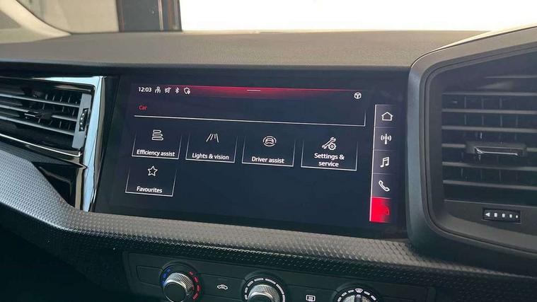 10.25" Digital instrument cluster display classis style instrument dials + speed, odometer, time, outside temperature, telephone menu + fuel level warning, Audi smartphone interface with connect compatible smartphone via USB directly MMI display + Nav, music, third party apps controlled via MMI controller, Automatic start/stop system, Bluetooth interface, Driver's information system, Electromechanical power steering, Emergency e-call, Emergency services call system, Lane departure warning system, Service interval indicator, Speed limiter, Voice control system, Washer fluid level indicator, Dynamic suspension, 1 x SDXC card reader, 2 x USB type C connection points, 6 passive loudspeakers, DAB Digital radio, MMI radio plus with 8.8" colour MMI display screen and MMI touch, Auto dimming rear view mirror, Body coloured bumpers, Body coloured door mirrors, Electric front and rear windows, Electrically adjustable, heated, folding door mirrors with integrated LED side indicator, Front side air inlets with front spoiler lip and rear diffuser in matt black grained, Heat insulating glass windscreen and side windows, Heated rear windscreen, High level LED brake light, LED headlights with LED rear lights + dynamic rear indicators + headlight adjustment and high beam, turning light + LED daytime running lights, Radiator grille in matt black, Rain and light sensors, Rear fog lights, Rear side wing doors, Rear wing door, Rear wiper, 12V socket in centre console with two cup holders, 3 rear seats with headrests, 3 seat bench in 2nd row, 3 spoke leather multifunction plus steering wheel, 40:60 Split folding rear seat or folded fully, Air vents, door handle recesses and centre console in black, Delta cloth upholstery, Driver and passenger seat with manual height adjust with forward and backwards adjustment, Front head restraints, Front passenger seat, Front/rear floor mats, Height and reach adjustable steering wheel, ISOFIX child seat mounting for front passenger and outer rear seats including top tether attachment point of outer rear seats, Leather gear knob with aluminium trim, Leatherette handbrake grip, Luggage compartment light with front and rear reading lights, Manual air conditioning, Titanium grey cloth headlining, Luggage compartment pack - A1, 3x3 point rear seatbelts, Audi pre-sense front with pedestrain and cyclist recognition, Brake assist function, Driver and front passenger airbag with front side and head airbags, Electronic Stability Control including ABS, EBD, ASR and EDL, Front passenger airbag deactivation switch, Hill hold assist, Manual rear child locks, Seatbelt height adjustment for front seats, Seatbelt monitoring, Tyre pressure warning light, Warning triangle and first aid kit, Anti theft alarm, Anti theft wheel bolts and loose wheel warning, Immobiliser, Remote central locking with 2 foldaway keys, Black inlays polygon structure, 15" 5 arm design alloy wheels,
