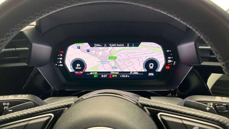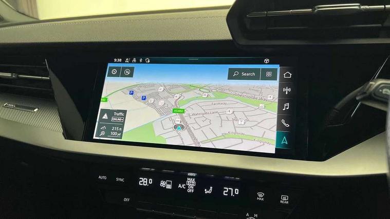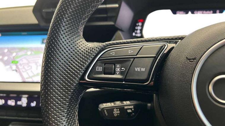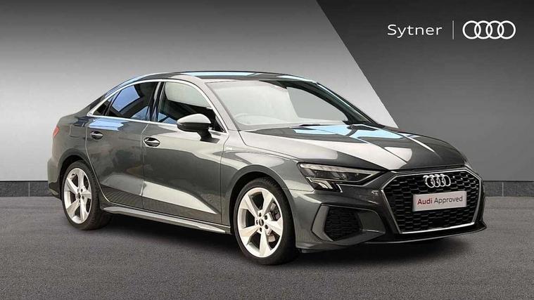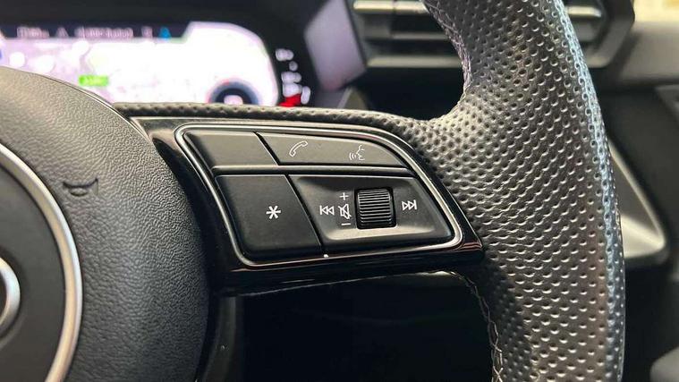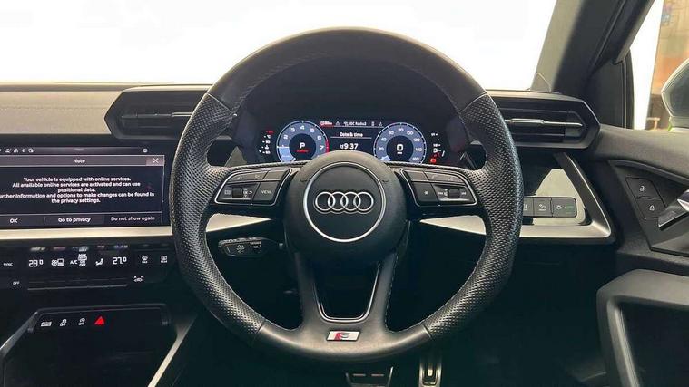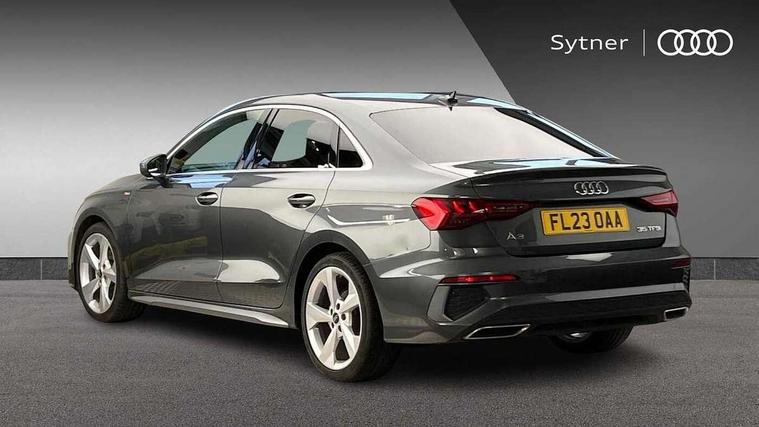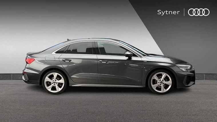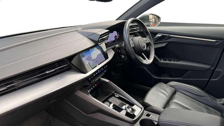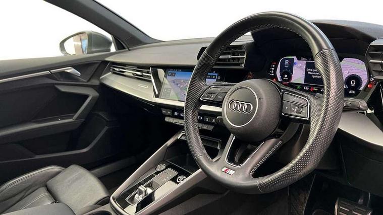 Audi connect emergency call and service, Audi drive select (Auto, Comfort, Dynamic, Efficiency and Individual), Audi smartphone interface, Audi Virtual Cockpit - 10.25" digital and colour instrument cluster, Automatic start/stop system with recuperation, Bluetooth interface, Collision avoidance assistant, Electromechanical power speed sensitive steering, Lane departure warning system, MMI Navigation Plus with high resolution 10.1" colour touch screen display, Service indicator, Voice control system with natural language interaction, Sports suspension, 2x USB Type C ports (for charging and data transfer), 6 passive loudspeakers, CD player, DAB Digital radio, 3rd brake light, Acoustic glass windscreen, Aluminium window trim, Auto dimming frameless rear view mirror, Body colour exterior mirrors, Electrically adjustable/heated/folding/auto dimming door mirrors with integrated LED indications + kerb view function for passenger side, Front electric windows, Illuminated door sills with aluminium inserts at the front with S logo, LED daytime running lights, LED headlights with LED rear lights and dynamic rear indicators, Light and rain sensors, Model and engine designation badges at rear, Privacy glass - dark tinted rear window, rear door and side windows, Rear boot, Rear electric windows, Rear side wing doors, S line bumpers, S roof spoiler, 12V socket and storage compartment in front centre console, 3 seat bench in 2nd row, 3 spoke leather multifunction steering wheel with gear shift paddles, 40/20/40 split folding rear seat bench with cupholder, Black cloth headlining, Dual zone electronic climate control, Front and rear centre armrest in leather, Front and rear headrests, Front/rear floor mats, Height and reach adjustable steering wheel, Illuminated vanity mirror, Interior lighting - glove compartment light and right hand side, Luggage compartment floor covering, Manual boot compartment lid, Manually adjustable front sport seats, Seat side bolsters, Single front passenger seat, Stainless steel pedals and front footrest in black, Twin leather upholstery with front sports seats S embossed logo, Aluminium interior elements pack - A3, LED interior lighting pack - A3 Saloon, S line styling pack - A3 Saloon, 3x3 point rear seat belts, Driver and front passenger airbag with passenger airbag deactivation, Electronic Stabilisation Control (ESC) including ABS, ASR and EDL, First aid kit with warning triangle and 2 safety vests, Front side airbags with head airbags and interaction airbag, Hill hold assist, Pre-sense front with pedestrian and cyclist detection, Seatbelt monitoring, Tyre pressure loss indicator, Anti theft alarm, Anti-theft wheel bolts, Electronically operated child locks, Immobiliser, Remote control central locking, Aluminium air vent surrounds, Aluminium trim elements, Dark spectrum aluminium inlays, accent surfaces in the dashboard and centre console in platinum grey silk effect paint finish,