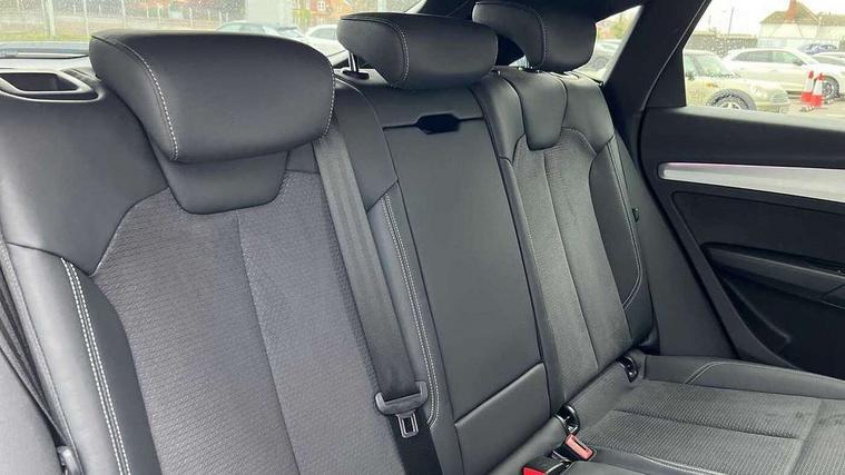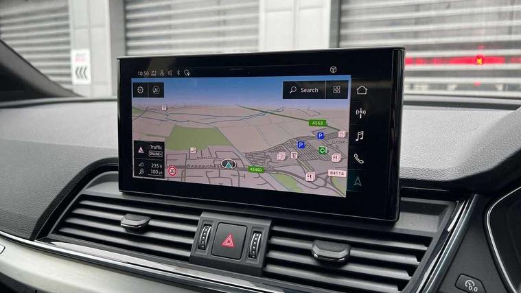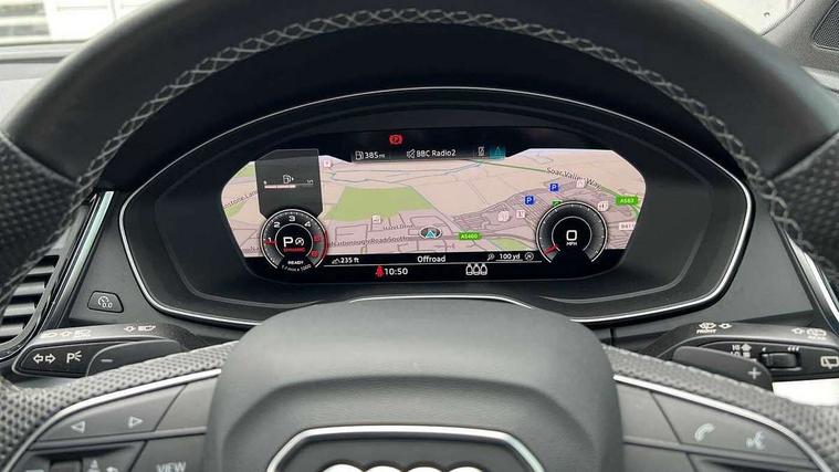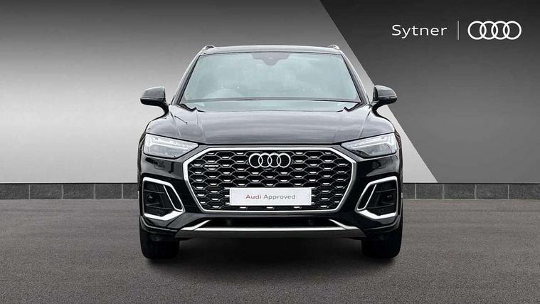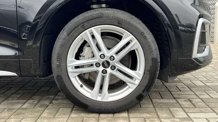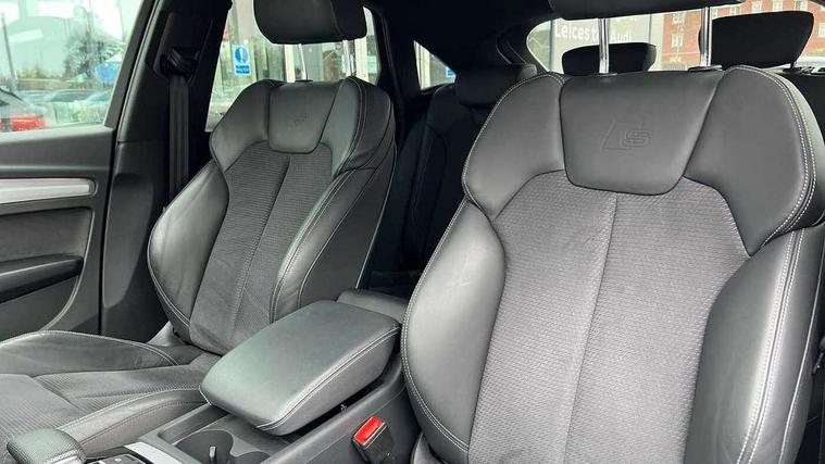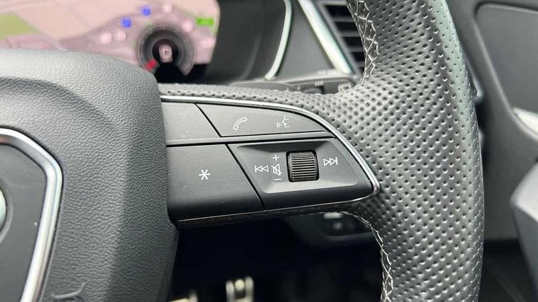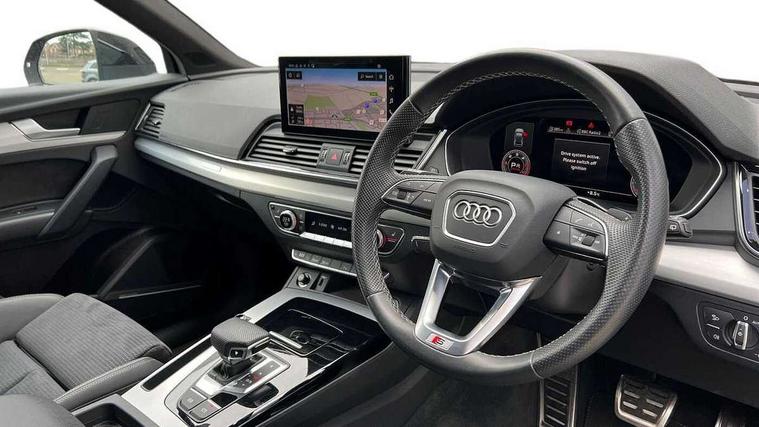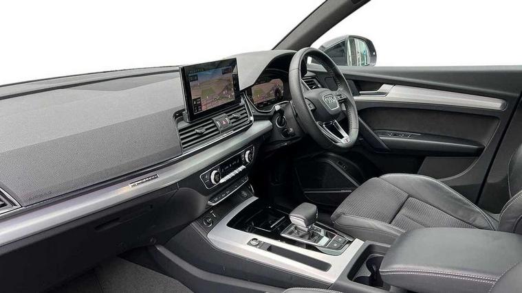 Acoustic front and rear parking sensor, Audi connect safety and service (e-call), Audi connect with Amazon Alexa Integration, Audi drive select, Audi virtual cockpit plus with 12.3" screen and three different layout designs, Audi wireless smartphone interface, Automatic start-stop system with coasting functionality and efficiency programme, Bluetooth interface, Electro - mechanical power assisted steering, MMI navigation plus with 10.1" touch screen, Power tailgate, Reversing camera, Service interval indicator, Voice control system with Audi hotword activation "Hey Audi", Diesel particulate filter, Quattro on demand, S line sports suspension, 2 x USB charging port with aux input socket, 8 loudspeakers, DAB Digital radio, Acoustic windscreen, Aluminium roof rails, Audi matrix LED headlights with dynamic front and rear indicators, Auto dimming door mirrors, Auto dimming frameless rear view mirror, Automatic headlight adjustment, Automatic headlights and windscreen wipers, Body colour door mirrors, Body colour rear diffuser with matt aluminium silver surrounds, Body colour underbody protection, Chrome plated exhaust trims, Daytime running lights, Door sills in Selenite silver, Electric adjustable/heated/folding door mirrors, Front air inlet surrounds in aluminium, Front and rear electric windows, Front radiator grille in honeycomb design, Headlight washers, High level LED brake light, Lower bumpers painted in contrast Manhattan grey, Rear chrome trim strip below lights, Rear privacy glass and rear side windows, Rear side wing doors, Rear wiper, Roof bars, S Line badges on the front wings, S Line front and rear bumpers, S Line rear spoiler, S Line side skirts, 3 rear headrests, 3 spoke leather multifunction steering wheel with S badging perforated leather grips, 40:20:40 split folding 3 rear bench seat in 2nd row with rear centre armrest, Black cloth headlining, Comfort front centre armrest, Contrast stitching on seats, steering wheel and gear lever gaiter, Deluxe 3 zone electronic climate control, Front head restraints, Front/rear floor mats, Gear lever in black leather, Heated front seats, Height/reach adjustable steering column, Illuminated door sill trims with S logo, Manual seat adjustment with 4-way electric lumbar support, Removable luggage compartment floor, Single front passenger seat, Stainless steel pedals, Sunvisors with vanity mirrors, Trunk roller cover, High gloss pack - Q5, LED interior light pack - Q5, 3 point seatbelts on all seats, 6 airbags - Driver, front passenger, curtain and side airbags, Electrically operated child locks on rear doors, Electromechanical parking brake, Electronic stabilisation control including ABS, ASR and EDL, First aid kit with warning triangle and vests, Front passenger airbag deactivation, Hill descent control, Hill hold assist, ISOFIX child seat mounting for front passenger seat and ISOFIX child seat mounting with Top Tether for outer rear seats, Multi collision brake assist, Pop-up bonnet for pedestrian protection, Pre sense city, Seat belt force limiter, Seatbelt monitoring, Tyre pressure warning, Anti theft alarm, Anti-theft wheel bolts, Keyless Go access/ignition system, Remote central locking, Air vents inserts and centre console in gloss black, Matt brushed aluminium inlays,
