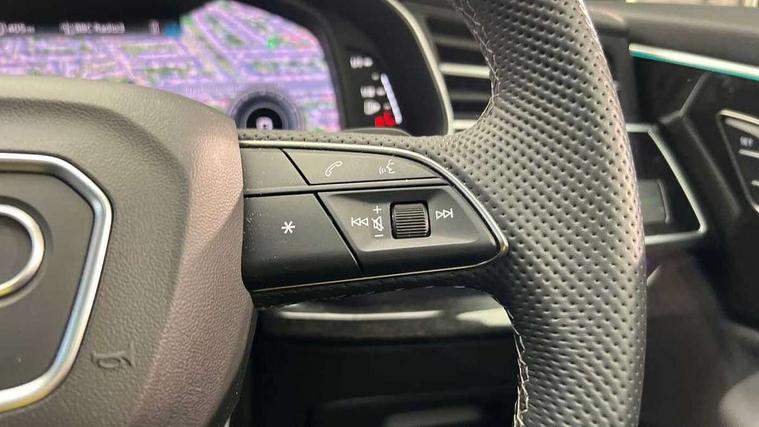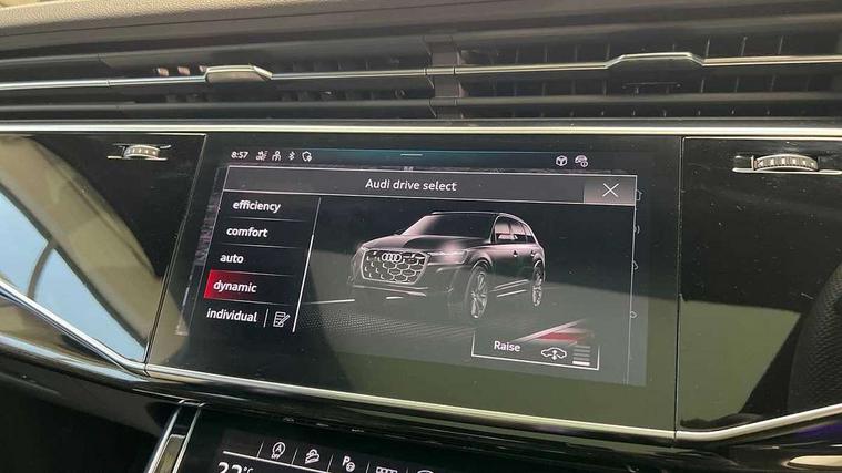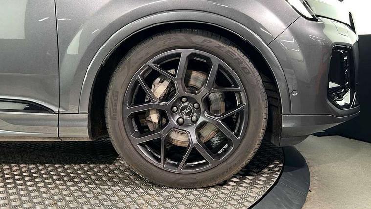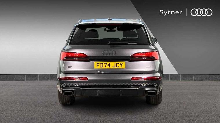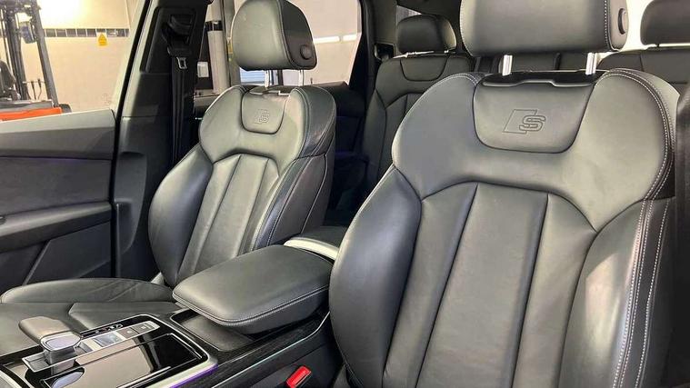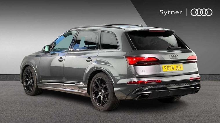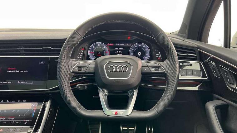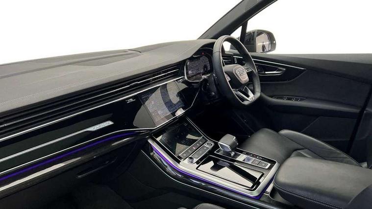 Audi connect safety and service (e-call), Audi connect with Amazon Alexa Integration, Audi drive select (Auto, Comfort, Dynamic, Efficiency, Individual, Off-road and All road), Audi phone box light with wireless charging, Audi virtual cockpit - 12.3" high-resolution LCD display with fully customisable instrument cluster, Bluetooth interface, Camera based traffic sign recognition, Electromechanical power steering, MMI navigation plus with MMI touch screens includes 10.1" and 8.6" screens with haptic feedback, Natural voice recognition, Operating buttons in Matte black, Parking system plus with 360 degree display (front, rear and side sensors) - acoustic and visual park assist system, Power operated tailgate, Rear view camera, Smartphone interface includes wireless Apple carplay/Android Auto, Start/stop system, 48V Mild hybrid technology, Adaptive air sports suspension, Quattro all wheel drive with self locking centre differential, Audi music interface - front 2 USB-C ports with charger and data functions, Audi sound system with 6 channel amplifier, 180 watt amplifying capacity and 10 loudspeakers including subwoofer, DAB digital radio module, Audi Beam uses LEDs to project S emblem with red rhombus onto the ground when opening the side doors (front/rear), Auto dimming frameless rear view mirror, Black exhausts, Black roof rails, Electrically adj heated/folding + automatically dimming exterior mirrors with memory + automatic kerb side function for passenger side exterior mirror, Heat insulating glass in windshield, Integrated LED indications in door mirrors, LED 3rd brake light, LED daytime running lights, LED rear tail lights, Loading edge protection in stainless steel, Matrix LED headlights with dynamic front and rear indicators, Privacy glass - dark tinted rear and rear side windows from B-pillar backwards, Rear side wing doors, Rear wiper, 2 seat bench in 3rd row, 2 zone automatic climate control, 3 seat bench in 2nd row, 7 seat layout with ISOFIX points for the front passenger seat and rear passenger seat, Black cloth headlining, Comfort front centre armrest, Electric adjustable front seat with 4 way lumbar support, driver memory functionality, Folding rear seats, Front head restraints, Front/rear floor mats, Heated front seats, Illuminated door sill trims with S logo, ISOFIX child seat mounting for front passenger seat and 2 outer rear seats with top tether child seat mounting for all 3 rear seats, LED interior ambient lighting, Luggage compartment cover, Luggage compartment sill protection in stainless steel, Rear head restraints, Single front passenger seat, Stainless steel pedals, Sunvisors with illuminated vanity mirrors, Black styling pack plus - Q7, 3 point seatbelts on all rear seats, Audi pre sense front, Child locks on rear doors, Convenience key with safelock and gesture tailgate, Driver and front passenger, front side and curtain airbags, Electromechanical parking brake, Electronic Stabilisation Control (ESC) including ABS, ASR and EDL, Extended pedestrian protection measures, Hill hold assist, Seatbelt reminder, Tyre pressure loss indicator, Warning triangle and first aid kit, Anti theft alarm with tow away protection, Anti-theft wheel bolts and wheel loosening detection, Keyless Go, Remote central locking, Polished oak trim with grey finish inlay, Tool kit, Tyre repair kit,