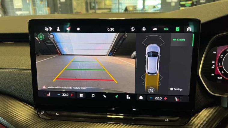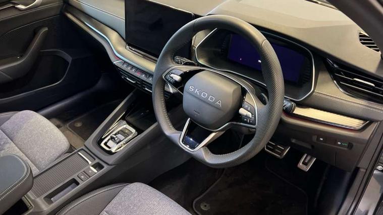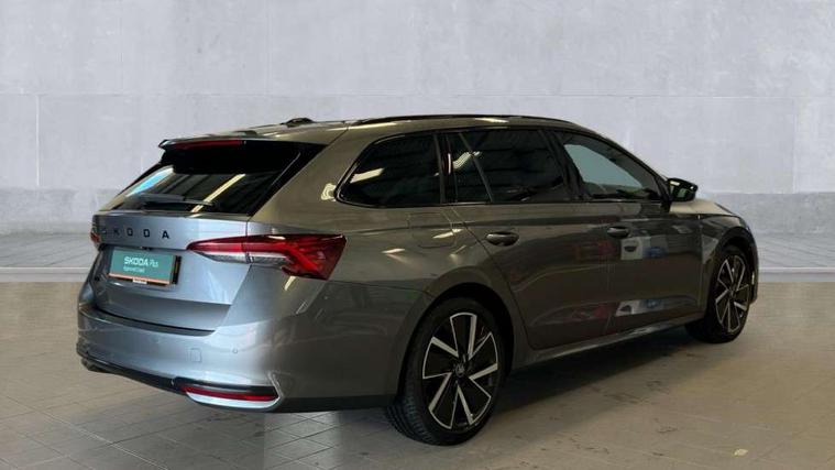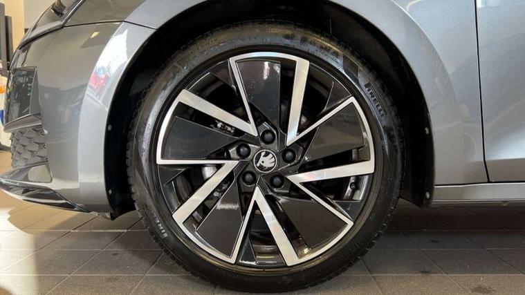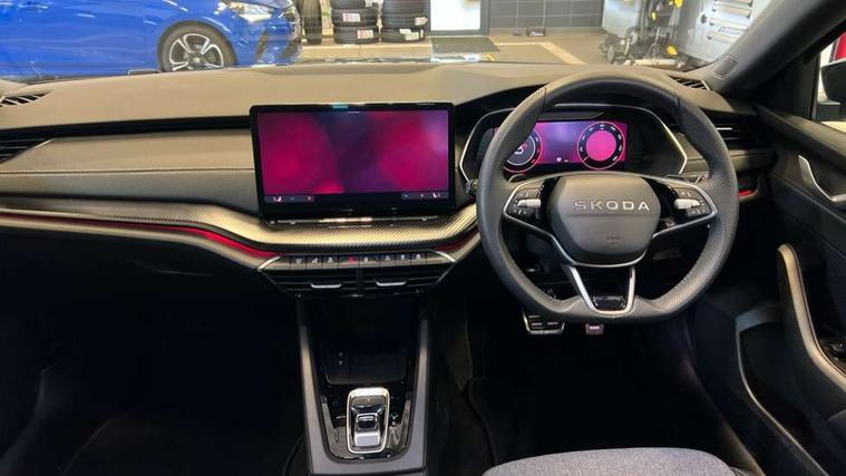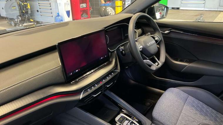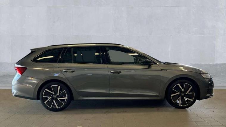 1x USB Typc C port in rear view mirror, 4x USB Type C ports - 2x in front centre console and 2x in rear (45W), Drive mode selection, Driver fatigue sensor, eCall emergency system, Front assist system, Progressive dynamic steering, Traffic sign recognition, Turn Assist, Virtual Cockpit - 10.25" digital display, Voice control system, Wireless charging (15W) with cooling function, Wireless SmartLink for Apple CarPlay and Android Auto, Sports suspension with 15mm lower, 13" touchscreen display with navigation, DAB Digital radio, Aero front windscreen wipers with intermittent function, Auto dimming rear view mirror, Body colour bumpers, Body colour door handles, Electric front and rear windows, Exterior gloss black sports styling including front grille, window surrounds, door mirrors and badging, Gloss black diffuser, Gloss black roof rails, Gloss black spoiler, Heated rear windscreen, High beam control, High level third brake light, Ice scraper in fuel cap, LED daytime running lights, Logo projection in front doors, Rain and light sensors, Rear fog light on one side, Rear privacy glass, Rear side wing doors, Rear window wiper, 12 volt socket in boot, 3 rear headrests, 3 seat bench in 2nd row, 4 foldable roof handles, Aluminium pedals, Front head restraints, Front sport seats, Heated front seats, Illuminated glovebox, Interior door handles in dark chrome, Jumbo Box storage, Luggage compartment lighting x2 lights, Mechanical rear seat release from boot, Single front passenger seat, Steering wheel in black leather with black stitching, Storage compartments in left and right of boot, Sun visors with mirrors, Sunglasses storage, Ticket holder, Umbrella in door panel, Unsplit rear bench seat, split folding backrest with centre armrest with cupholder, SportLine Design Selection pack - Octavia, 3x3 point rear seat belts, Alarm with interior monitoring, tilt sensor and back up horn, Curtain airbags and front side airbags, Driver and front passenger airbags, Drivers knee airbag, Electronic parking brake, ESC including ABS, EBV, MSR, ASR, EDS, HBA, DSR, Front central airbag, Hill hold assist, ISOFIX on front passenger seat and outer rear seats, Passenger airbag deactivate switch, Three point seat belts in front and rear, Two tone horn, Tyre pressure monitor, Visual and acoustic seat belt reminder, Warning reflectors in front door, Anti-theft wheel bolts, Keyless start/stop, Remote central locking, Gloss black air vent surrounds,