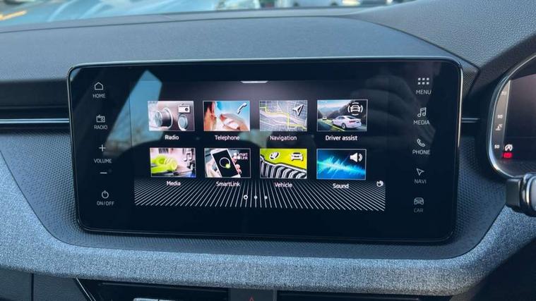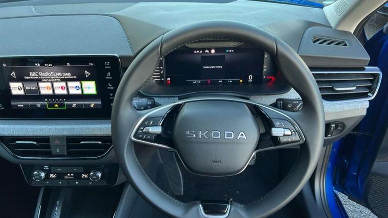 Advanced driver attention and drowsiness monitor, Bluetooth, e-Call (emergency call), Front assist system, PAS, Rear parking sensors, Rear view camera, Speed limiter, Tailgate, Traffic sign recognition, Virtual Cockpit - 10.25" digital display, Wireless smartlink, 4 USB C ports, 8 Speakers, 9.2" Skoda navigation display, DAB radio, Auto dimming rear view mirror, Automatic headlight control with manual coming and leaving home feature, Automatic intermittent wipers, Black window frames, Body colour bumpers, Body colour door mirrors and handles, Chrome moulding around grille, Front and rear electric windows, Full LED headlights, Heated rear window, LED 3rd brake light, LED daytime running lights, LED front turning lights, LED high beam, LED low beam, Rear LED fog light, Rear side wing doors, Rear wiper, Tinted windows, Unique dark chrome design logo on alloy wheels, 12V socket in luggage compartment, 3 seat bench in 2nd row, Black / Grey armrest stitching, Black hotstamping, Cargo elements, Chrome inner door handles, Door inserts in satin black, Driver and passenger sun visors with vanity mirror, Dual zone climate control, Front and rear roof lights, Front centre armrest, Front head restraints, Glasses storage in roof liner, Height adjustable driver seat, Height adjustable passenger seat, Ice scraper, Illuminated glove compartment, Inner circulation control with pollen filter, ISOFIX for front passenger seat, Isofix preparation for back seats, Leather gearknob and handbrake lever, Loft cloth upholstery, Luggage net under rear parcel shelf, Manual lumbar support for front seats, Net package and top tether hooks in boot space, Pocket on the back of both front seats, incl. mobile phone pockets, Single front passenger seat, Skoda lettering on steering wheel, Textile floor mats, Third rear headrest, Ticket holder, Top tether for front passenger seat, Umbrella in driver's door, 3x3 point rear seatbelts, ABS, Child locks, Curtain airbags and front side airbags, Disc brakes, Driver and front passenger airbags, ESP, Hill hold control, Manual leather parking brake, One tone horn, Passenger airbag switch off function, Seatbelt reminder for driver and front passenger, Tyre pressure monitoring system, Anti theft alarm system with interior monitoring, backup horn and towing protection, Anti-theft wheel bolts, Remote central locking with 2 remote folding keys, SAFE function for remote central locking, Decord pad, door inserts Kota uni,