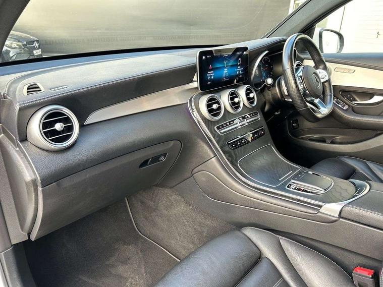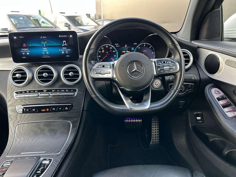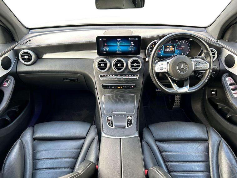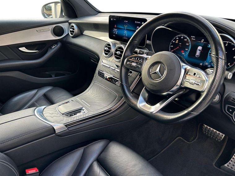 Attention assist, Bluetooth interface for hands free telephone, Collision prevention assist plus, Cruise control with speedtronic variable speed limiter, Direct steer speed sensitive steering, DYNAMIC SELECT with a choice of driving modes (ECO, Comfort, Sport, Sport+ and Individual), Easy pack automatic powered tailgate, ECO start/stop function, Hard disk navigation, Hey Mercedes Voice activation, Instrument cluster with12.3-inch digital instrument cluster display. High resolution instrument cluster screen with choice of three display styles, MBUX augmented reality for navigation, MBUX Interior assistant, Mercedes connect me with remote online services, Multi function trip computer, Outside temperature display, rear seatbelt status indicator, Parktronic system with rear cross traffic alert and drive away assist, Remote boot release, Reversing camera, Service indicator (ASSYST), Smartphone integration with Apple CarPlay and Android auto, Traffic sign assist, Wireless charging, 4MATIC permanent four wheel drive, 66 litre fuel tank, 9G TRONIC plus automatic transmission with steering column gear selector, DIRECT SELECT steering wheel gearshift paddles, Diesel particulate filter, Sports suspension tuned for improved handling and driving dynamics, MBUX multimedia system with DAB digital radio and touchpad including satellite navigation, Media display 10.25-inch touchscreen display, Mercedes Benz sound system (225w) includes mid-range sound system, Pre installation for Mercedes Benz Link, USB ports x 2 in centre console, Adaptive brake lights, AMG bodystyling - AMG front apron with sporty air intakes and chrome trim element, AMG diffuser-look rear apron with insert in black, Body colour door mirrors, Body coloured bumpers, Electric windows one touch open/close, Electrically adjustable and heated door mirrors, Front, side and rear exterior chrome trim, Headlamp assist automatic headlamp activation, LED tail lamp, Motor way mode function and locator lighting, Multi beam LED headlamps with 84 indiviually control LED, daytime running lamps, Active Light, cornering light, enhanced fog lamp, adaptive Highbeam Assist, Privacy glass with dark glass from B pillar backwards, Radiator diamond grille, Rain sensor windscreen wipers, Range adjustable headlights, Rear wiper, Running boards, Tinted glass all round with single layer safety glass, Two chrome plated tailpipe trim elements, 2 way rear head restraints, 3-spoke multifunction sport AMG steering wheel in black nappa leather with flattened bottom section, chrome insert and perforated leather in grip area, 40:20:40 split folding rear seats, Ambient lighting, AMG floor mats with edging and embroidered AMG lettering, AMG sports seats, Artico man-made leather upper dashboard with contrast topstitching, Automatic child seat recognition sensor, Black roof lining, Dividing net - rear, Double cup holder in centre console, Easy-pack removable load compartment cover, Front armrest with storage box, Front door sills with Mercedes Benz lettering, Front head restraints, Front seats with electric adjust (backrest, height and seat cushion inclination) with 4 way electric lumbar support and manual cushion depth adjust, Heated front seats, Height/reach adjustable steering column, Illuminated and lockable glove compartment, Leather upholstery, Rear top tether child seat ISOFIX attachment, Sports pedals with stainless steel surfaces and rubber studs, Steering wheel with touch control buttons, THERMOTRONIC 3 zone automatic climate control, Interior lighting pack - GLC, Mirror pack - GLC, Storage pack - GLC, 3 rear 3 point seatbelts, Active bonnet, Adaptive brake system with HOLD function and brake drying in the wet, ASR, Black seat belts, Brake calipers with Mercedes-Benz lettering + perforated brake discs, Child proof door locks, Dual-stage airbags - driver and front passenger, driver knee bag and window bags for driver, front passenger and rear passengers, Electronic parking brake, Electronic stability programme (ESP) with curve dynamic assist and cross wind assist, Front and rear seatbelt reminder, Front passenger seat occupancy sensor, Hill hold function, Tyre pressure monitoring system, Warning triangle and first aid kit, Alarm system/interior protection/immobiliser, Automatic door locking, KEYLESS-GO starting function, Remote central locking, Open pore black ash wood trim, 20" AMG multi spoke design alloy wheels painted in titanium grey with high sheen finish and tirefit,
