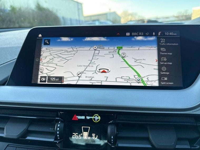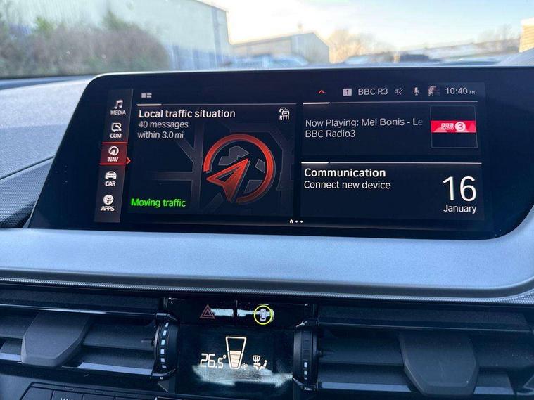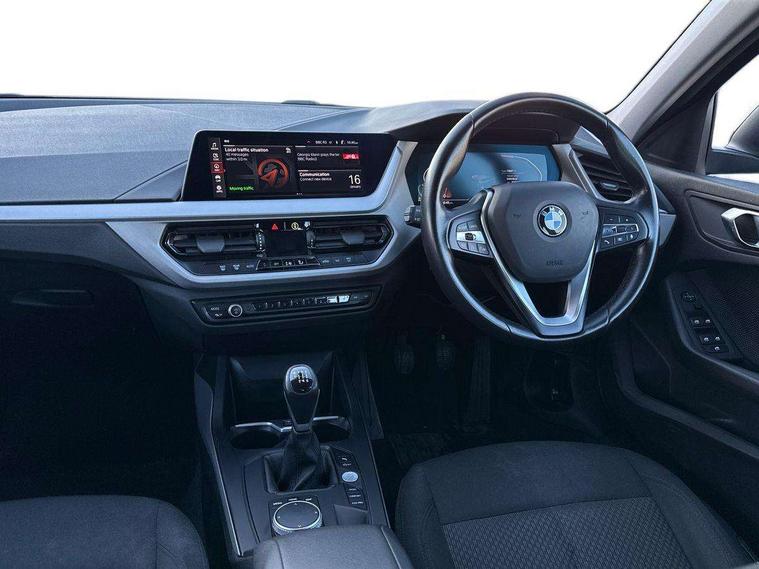 Active guard plus, Attentiveness assist, BMW ConnectedDrive online services, BMW Teleservices, Check Control warning system for monitoring of lights and door/luggage compartment open warning, Cruise control with speed limiter, Eco pro mode, Electric power steering with Servotronic steering optimised at all speed ranges, Front axle single joint with specific axle kinematics to minimise drive influences on steering + provide increased rigidity agile driving behaviour, Integrated owners handbook, Lane departure warning system, Oil sensor for level and grade, On board computer, Optimum shift indicator, Personal Profile, Pull away assistant, Rigidly mounted rear subframe - Multi link construction with separate spring / damper configuration and excellent driving characteristics, Speed limit Info including no-overtaking indicator, AdBlue tank, Aluminium lightweight construction, Anti roll bar front and rear, Balancer shaft, Diesel particulate filter, Drive Performance Control, Electronic differential lock, Single turbo charger with variable vane geometry, Suspension with twin tube gas filled shock absorbers with degressive characteristic curve, DAB Digital radio, Auto dimming rear view mirror, Automatic windscreen wipers and automatic headlight, Body colour door handles, Body colour mirror caps, Chrome exhaust twin tailpipes round 90mm in left, Direction indicator side lights in exterior mirrors, Electrically adjustable exterior mirror with mirror adjustment switch on drivers armrest and aspheric on driver side, convex on passenger side, Fading support, Follow me home headlights, Front and rear bumper system with replaceable deformation elements, Front and rear electric windows with open and close fingertip control, anti trap facility and comfort closing, Front door sill finishers in black plastic with BMW designation, Green tinted heat protection glazing, High level third brake light, Integrated front windscreen with washer jets, Kidney grille with chrome frame with 14 High-gloss Black struts, LED daytime running lights, LED eyebrow turn indicators, LED front fog lights, Lightweight engineering, Manual headlight beam throw control, Manual headlight levelling, Matt black air guide grilles, Matt black roof moulding, B pillar finisher and wheel arch trim, Matt black window frame, Matt black window recess finisher, Model designation on electric bootlid, Nearside reverse light in rear light cluster, Preparation for high beam assistant, Rear fog lights, Rear side wing doors, Rear window wiper, Shark fin antenna, Trailer stabilisation logic, Visible VIN plate, Welcome lighting, 12V power socket in front centre console with blanking plug, 3 rear seat head restraints, 3 seat bench in 2nd row, 3 spoke sports leather steering wheel in black leather with black stitching and decorative finisher in pearl chrome + gearshift lever knob in leather, Black boot net with lashing eyes, Cargo function on 2nd seat row, Child seat ISOFIX attachment for two outer rear seats and front passenger seat with anchorage points, Conditioned based service, Driver and front passenger backrest net on rear, Driver side folding compartment in instrument panel, Folding rear clothes hook, Four grab handles integrated in roof lining, Front and rear door pockets with bottle holders, Front and rear side armrest integrated into door trim, Front armrest, Glove compartment, Height adjustable front head restraints, Luggage compartment for bag hooks on left and right, foldable luggage compartment liner and four lashing eyelets, Manual adjust steering wheel, Multi-function controls for steering wheel, Single front passenger seat, Single zone automatic air conditioning, Storage compartment in centre console, Storage compartment in luggage compartment, Stowage of the parcel shelf in luggage compartment trim, Sun visors with vanity mirrors and insert tab, Two front centre console cupholders, Type C two USB ports in rear centre console, Velour floor mats, BMW live cockpit professional pack- 1 Series, Connected pack professional - 1 Series, Interior lights pack - 1 Series, 2 tone horn, 3 point seatbelts on all seats, front pyrotechnic belt tensioners, stopper and belt force limiters, rear coded belt buckles, Airbags - Front driver/passenger, front and rear curtain head protection, front side, manual deactivation of front passenger airbag, Anti lock braking system (ABS) with brake assist, BMW emergency call, Brake drying, Braking readiness, Child proof locking system in rear door, City braking function, Comfort modes, Cornering brake control, Crash sensor activating of airbags, Unlocking doors, hazard warning lights, interior light, safety battery terminal, Driver and front passenger seat belt security check, Dynamic stability control + (DSC+), Dynamic Traction Control - DTC, Electrically operated hand brake, Front and rear disc brakes, Seatbelt warning, Side impact protection, Tyre pressure monitoring system, Warning triangle and first aid kit, Central locking switch for all doors, fuel filler cap and luggage compartment, Deadlocking function system to all doors, Drive away locking system on all doors and luggage compartment with de-activated in iDrive settings, Incorrect fuel protection system, Locking wheel bolts, Remote central locking with two Integrate key, one button for opening and closing all lock, open and close window, button for open luggage compartment, Start/stop button illuminated in centre console with keyless engine start and auto start stop deactivation button, Thatcham Cat.1 alarm and immobiliser, Wheel slip limitation close to the actuator (ARB), Quartz Silver matt interior trim, Electrically powered 12V compressor, Reduced rolling resistance tyres,