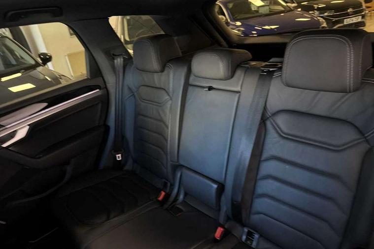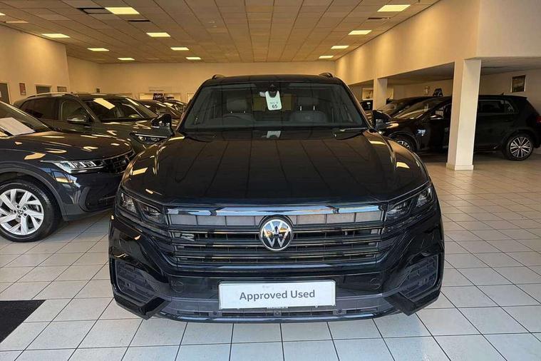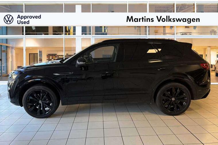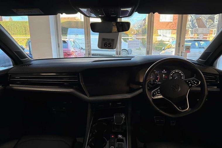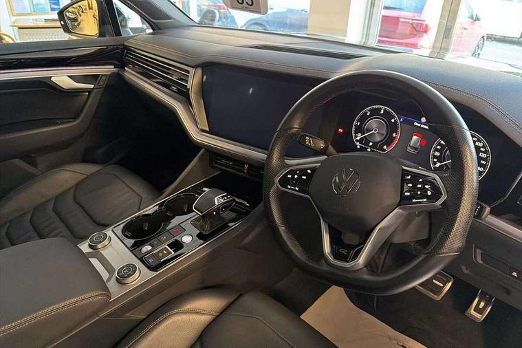 2D/3D map view, ACC - Adaptive cruise control with front assist, forward collision warning, distance monitoring, city emergency brake and speed limiter, Apple car play/Android Auto, Audible and visual fatigue detection system, Bluetooth hands free telephone connection, Car information display, Drive select with Damper control, Driver alert system, Driver profile selection, Dynamic road sign display camera controlled system with visual warning for traffic and road signs, eCall emergency system, Fully electric tailgate + keyless entry and start, Instrument cluster, MirrorLink, Multifunction camera, Multifunction computer premium with 7" colour display, One touch indicators with repeat function, Service interval indicator, Speed sensitive power steering, Start/stop system with regenerative braking, Tailgate power latch, Think blue trainer driver tips and journey analysis, Traffic sign recognition, Voice control system, Wireless Smartphone charger, 24 litre AdBlue tank, Torsen limited slip differential, DAB Digital radio, Dynamic navigation based on TMC+, Gesture control for infotainment system, Multi device interface (MDI) with illuminated USB-C connection, Music playback - MP3, WMA and AAC files, SD card slot, Simultaneous pairing of 2 compatible mobile devices, SMS functionality - read, compose and send SMS messages using touch-screen display, Title and cover art display, Volkswagen media control, Adaptive low beam for urban and motorway use, Auto dimming rear view mirror, Automatic coming/leaving home lighting function, Automatic headlights, Black anodised roof rails, Black door mirrors, Black rear diffuser, Black side window surrounds, Black upper and lower grille louvres extending into headlights and radiator grille, Body colour door handles, Body coloured wheel arches, C signature gloss black front air intake, Chromed tailpipe on the left and right integrated in the bumper with trapezoid design, Dusk sensor, Dynamic headlight range control, Electric front tilt/slide panoramic sunroof and fixed rear sunroof, Electrically power adjustable, heated, folding, auto dimming, front passenger exterior door mirror lowering function, Front and rear electric windows, Galvanised body, Gloss black finish B pillar, Gloss black rear diffuser, Headlight washers, Heat insulating darkened glass in side and rear windows, Heated windscreen washer jets, IQ.Light-LED matrix headlight, daytime running light with dynamic cornering light and indicator, LED 3rd brake light, LED rear fog light, LED rear number plate lights, Plastic scuff plates in door apertures, Poor weather light, Puddle lights, Rain sensor, Rear side wing doors, Rear wiper, 12V socket in front and rear centre console and boot, 2 Coat hooks on B pillar, 3 rear head restraints, 3 seat bench in 2nd row, 3 spoke sport heated leather multi-function sports steering wheel with gear shift paddles - generation 2, 4 way adjustable front head restraints, 4 way electric lumbar support for driver and front passenger, 4 zone climate control, 40:20:40 split folding slide/recline rear seat, B pillar vents, Black lower edge of door extending sills, Branded points of interest, Double sun visor for drivier and passenger with LED illuminated vanity mirrors, Electric luggage compartment cover, Folding rear centre armrest with 2 cupholders, Front + rear carpet mats, Front centre armrest with storage box, Gear shift indicator, Height/reach adjust steering wheel, Illuminated air conditioned glovebox, Isofix preparation for 2 rear child seats, Jack and tool kit, Leather trimmed gear knob with gloss black inlay/aluminum trim, Leatherette door trim, LED luggage compartment lighting, Load through provision, Luggage compartment with load lashing rings, Plastic loading edge protection, Rear seat remote release levers, Single front passenger seat, Soul black headlining, Stainless steel pedals, Innovision cockpit pack - Touareg, 3 point front seatbelts with pre-tensioners, ABS, Active bonnet, Automatic post collision braking system, Curtain airbags, Driver/Front Passenger airbags, EBD + Brake Assist, EDL, Electronic parking brake with auto hold, ESC with ASR, Front seat side impact airbags, Hill descent control, Hill start assist, Passenger airbag deactivate switch, Seatbelt warning lamp and buzzer, Three 3 point rear seatbelts, Two tone horn, Volkswagen roadside assistance, Warning triangle and first aid kit, Alarm with interior monitoring in cab, backup horn and towing protection, Child security locks for front and rear doors, Electronic engine immobiliser, Remote central locking, Black decorative trims on the side windows, High gloss black centre console,