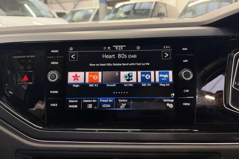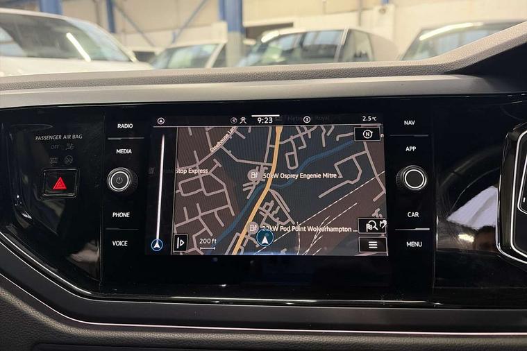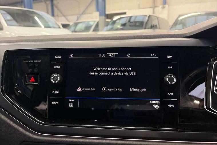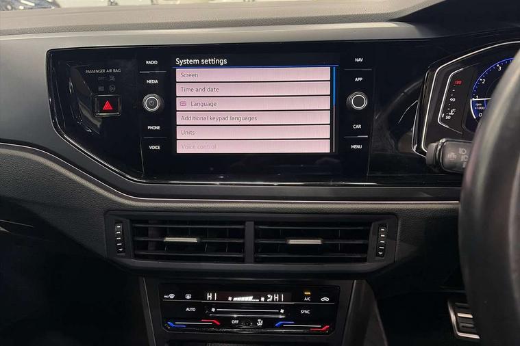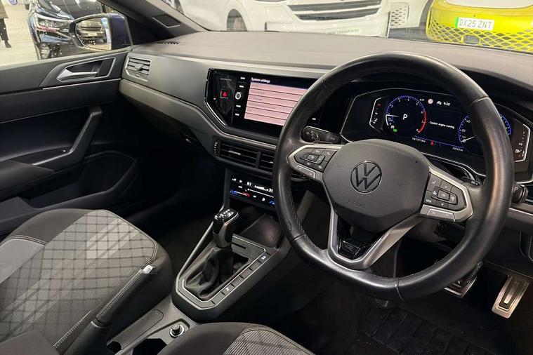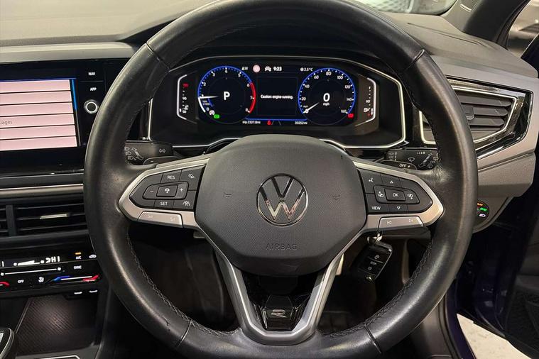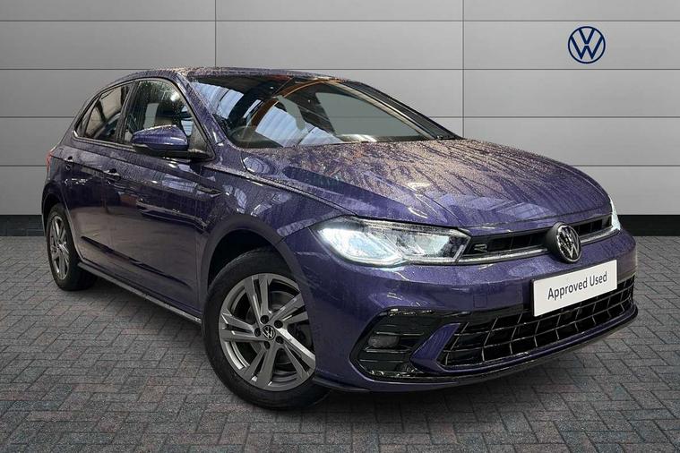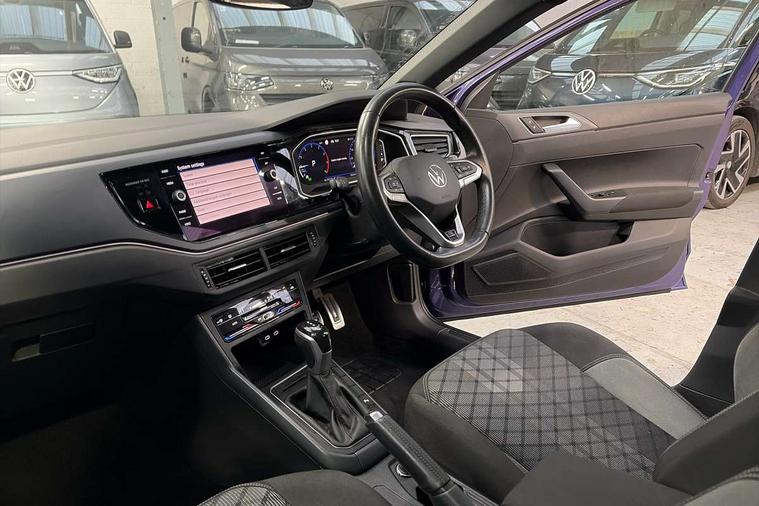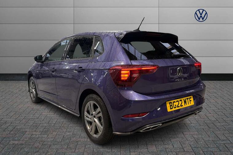 Adaptive cruise control with follow-to-stop and speed limiter, Bluetooth mobile phone interface, Digital Cockpit Pro with 10.25" Display, Driver alert system, Dynamic road sign display, Emergency call service, Power assisted speed sensitive steering, Preparation for We connect and We connect plus, Speedo and rev counter, electronic odometer, trip, service interval display and fuel gauge, Standard rear axle, Travel Assist - Lane keeping system and traffic jam assist, Travel assist including emergency assist, Trip computer, Warning signal and warning light for front and rear seatbelts not fastened, Washer fluid level indicator, Wireless app connect, Front wheel drive, Rear shock absorpion, Start-stop system with battery regeneration (recuperation - energy recovery during braking), DAB Digital radio, Diversity antenna for FM reception, Front and rear 6 speakers, Body colour bumpers, Body colour door handles, Body colour door mirrors, Electric front windows, Front scuff plates with R-Line logo, Heat insulating darkened glass in side and rear windows, Heat insulating glass windscreen, Power folding adjustable/heated exterior mirrors and front passenger exterior mirror lowering function, Rear electric windows, Rear fog light, Rear side wing doors, Rear tinted glass from B-pillar backwards approx 65% tinted, Rear windscreen washer and wiper with interval delay, Third brake light, 12V power socket in centre console, 2 USB-C ports in the front, 2 USB-C charging sockets on the center console in the rear, 3 rear head restraints, 60/40 split folding rear seat and rear seat bench not split, Air care climatronic air conditoning system with active combination filter and 2-zone temperature control, Black roof lining, Ceramique headliner, Chrome plated radiator grille inserts, air vent surrounds and light switch surrounds, Door and side trim panel, Driver and front passenger seat height adjustment, Driver/passenger sunvisors with illuminated vanity mirrors, Front + rear carpet mats, Front centre armrest, Front footwell illumination, Front seat backrest storage pockets, Front sports comfort seats, Handbrake lever handle in leather, Isofix child seat preparation easy-fit (for two outer rear seats, and front passenger seat) compatible with I-size, Karoso artvelours cloth upholstery, Leather trimmed gear knob, LED interior light with switch off delay and dimmer, 2 reading lights front and rear, Luggage compartment cover, Luggage compartment floor, Luggage compartment lighting, Lumbar adjustment for front seats, Single front passenger seat, Stainless steel pedals, Standard pedal cluster, Three spoke leather wrapped multifunction steering wheel with shifting paddles, Light and sight pack - Polo R-Line/Black Edition, 3 point height adj front seatbelts + pretensioners, 3x3 point rear seatbelts, ABS, Driver and front passenger airbag with front passenger airbag deactivation, Drivers and front passengers safety optimised head restraints, ESC (Electronic stability control) + EDL (Electronic Differntial lock) and ASR (Traction control), Extended and predictive pedestrian/ cyclist protection, Front curtain and side airbags with center airbag, Front/rear disc brakes, Hill hold control, Manual child lock in rear doors, Single tone horn, Tyre pressure loss indicator, Alarm with interior protection, Anti-theft alarm system with interior monitoring, backup horn, and towing protection, Anti-theft wheel bolts, Electronic engine immobiliser, Chrome applications on rotary light, mirror adjustment, window regulator switches, outlet with frame in black, Dark grey anodised matt decorative inserts in dash and front door panels, Low rolling resistance tyres,