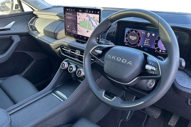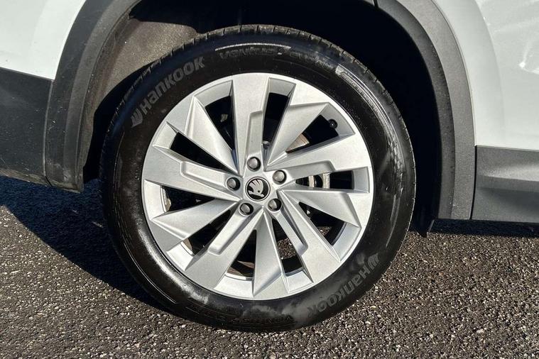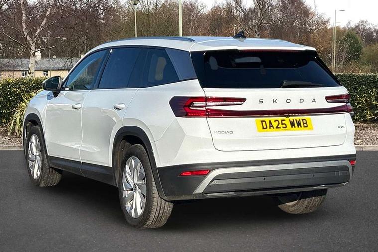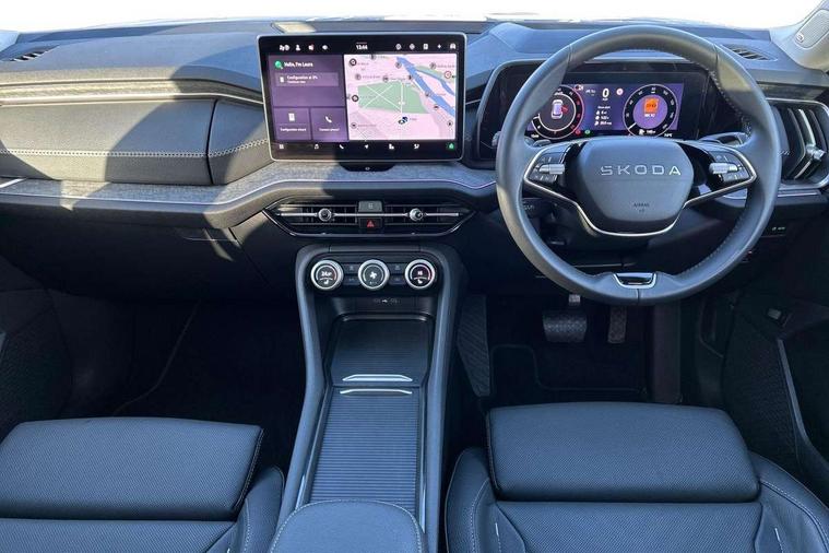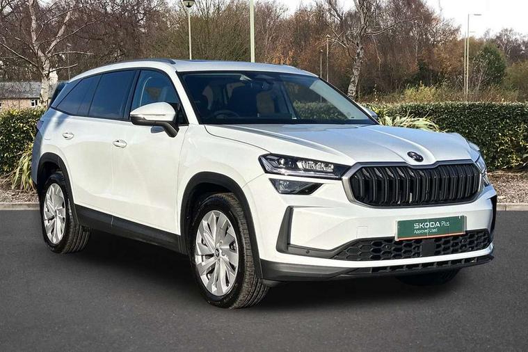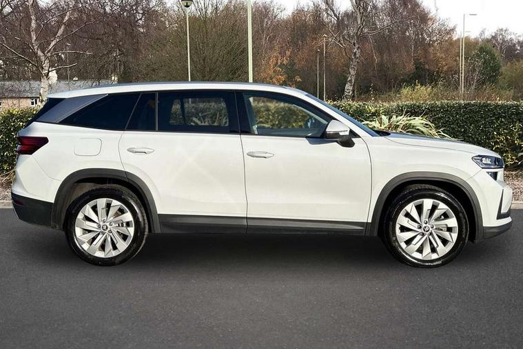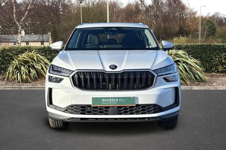 13" satellite navigation touchscreen display, Blind spot detection with door exit warning, Bluetooth system, ChatGPT functionality, Driver alert - Fatigue and drowsiness monitor, Dry display cleaner, Emergency call, Front and rear parking sensors, Front cross traffic assist, Lane assist, PAS, Rear traffic assist, Tailgate unlocking from outside, Traffic sign recognition, USB C Port x 2 in front centre console, Virtual Cockpit - 10.25" digital display, Voice control system, Wireless charging for two smartphones (15W) with cooling function, Wireless SmartLink for Apple CarPlay and Android Auto, Stop/start function, 2x USB-C in the rear, DAB Digital radio, Aero front windscreen wipers with intermittent function, Auto dimming rear view mirror, AWL (all weather lighting) and all weather light with cornering function, Black wheel arch surrounds, Body colour bumpers, Body colour door mirrors and handles, Cornering light and poor weather light, Electric folding /adjustable/separted heated/folding door mirrors, auto dimming with boarding sports and memory function, Electric front and rear windows, Exterior black decorative trims, Heat insulating glass in windshield, Heated rear window, Ice scraper in fuel tank cap, Invisible tailpipe, LED daytime running lights, LED third brake light in rear spoiler, Light assistant with automatic headlight control and coming home feature, Logo projection in door mirrors, Privacy glass, Rear roof spoiler, Rear side wing doors, Rear window wiper, Red decorative strip between rear LED lights, Safety reflectors on front and rear doors, Unique dark chrome design logo on alloy wheels, Window control switches with black trim, Windscreen wipers with rain sensor, Without engine designation, 1.5l bottle holder points in all door, 1x centre rear reading light, 2 seat bench in 3rd row, 3 configurable smart dials with 32mm coloured display, 3 seat bench in 2nd row, 4 foldable roof handles with rear coat hooks, Ambient interior lighting - Dashboard, front-door stowage compartments, front and rear door panels and footwell lighting, Automatic gear selector on steering column, Chrome interior door handles, Driver/front passenger reading lights, Fabric headlining, Fixed bench 40:60:40 split folding backrests, Front and rear floor mats, Front centre armrest with jumbo box storage compartment, cup holder and 12V socket, Height adjustable front headrests, Isofix child seat fittings in outer middle row rear seats and front passenger with top tether, Manually adjustable steering column, Pollen filter, Rear centre armrest with cupholders, Rear seat boot backrest release, Single front passenger seat, Skoda lettering on steering wheel, Storage pocket including mobile phone pockets on the backs of the front seats, Sunvisors with illuminated vanity mirrors, Three rear height adjustable headrests, Ticket holder on A Pillar, Tri zone climate control, Umbrella in door panel x1 made from sustainable materials, Upper and lower glovebox with card holder and coin compartment, USB C port by rear view mirror for charging only (15W), Exterior styling pack - Kodiaq, Auto door release and activation of warning lights in the event of an accident, Driver and front passenger airbag with knee airbag and front passenger airbag deactivation, Electric child locks, Electronic parking brake, ESC (incl. ABS+EMD+MSR+ASR+EDL+HBA+DSR+RBS+ESBS+MCB+TSA+XDS), Front assist with braking reaction to vehicles, pedestrians and cyclists, Front disc brakes, Fuel cut off safety device, Height adjustable front 3 point seatbelts + pretensioners, Hill hold assist, Junction assist with automatic emergency braking, Rear disc brakes, Safety vest holder in door, Seat belt reminder for all seats, Three point rear seat belts, Two tone horn, Tyre pressure monitor, Anti-theft wheel bolts, Immobiliser, Remote central locking with 2 keys,