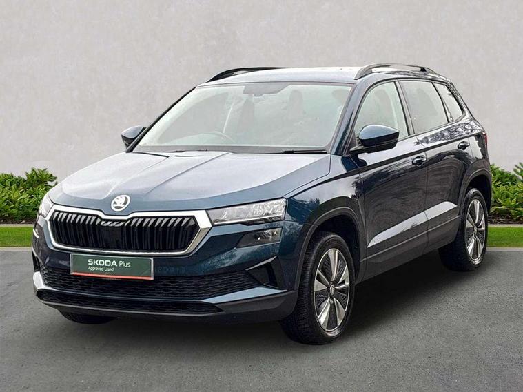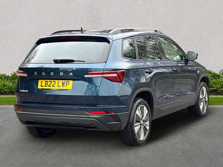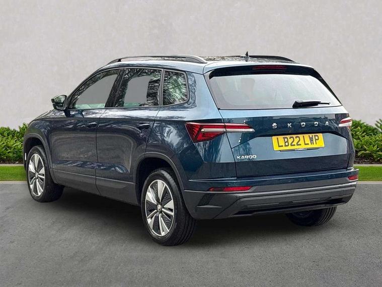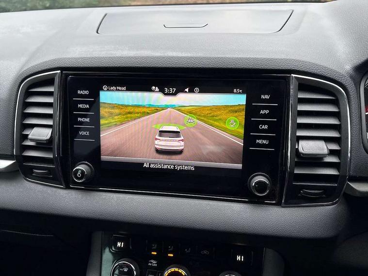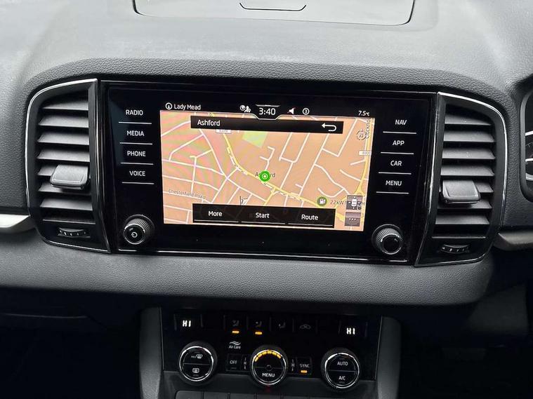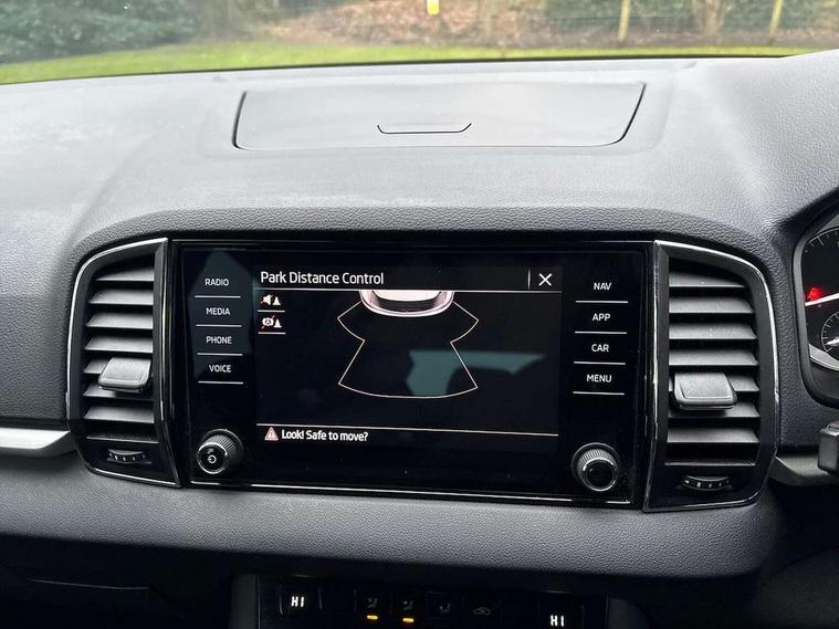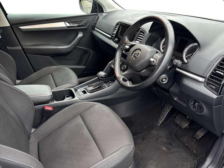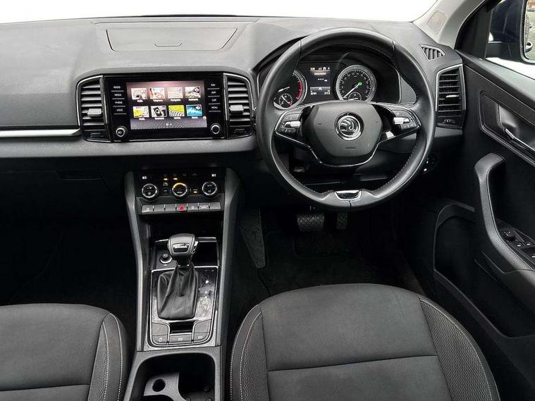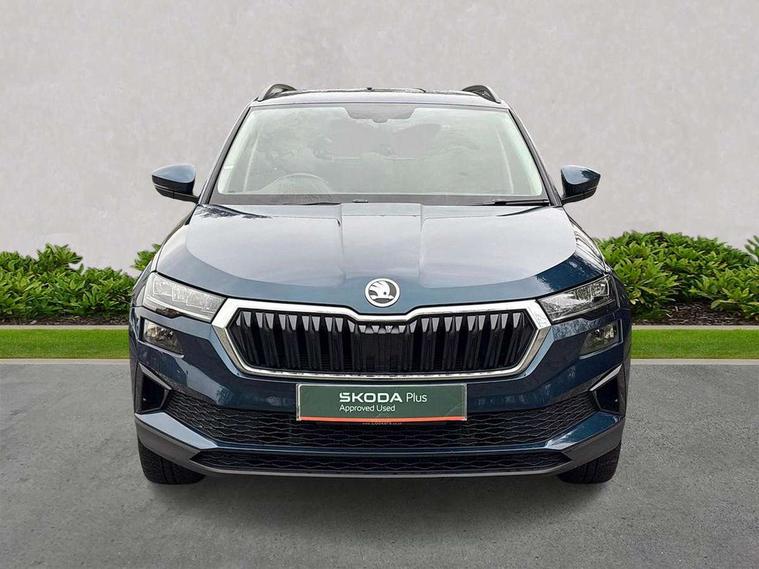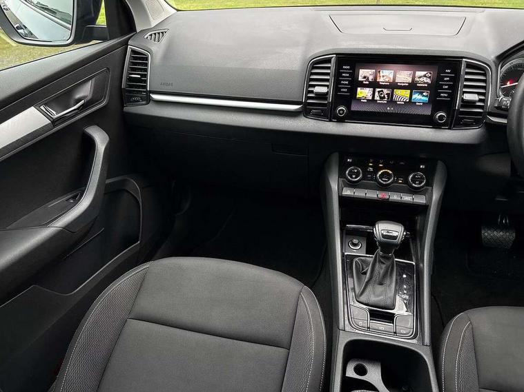 Amundsen satellite navigation with 8" touchscreen display with maps Europe, WLAN and web radio, Care connect, Driver fatigue sensor, Emergency services call system, Multifunction colour trip computer, Outside temperature gauge, Service interval indicator, SmartLink wireless for Apple and wired for Android, Start/stop system with regenerative braking, USB C Port x 2 in front centre console, 8 Speakers, DAB radio with Bluetooth, USB connection, Acoustic glass, Aero front windscreen wipers with intermittent function, Auto dimming rear view mirror with light and rain sensors, Automatic headlight control system, Black electric window control buttons, Body colour door mirrors and handles, Body coloured bumpers, Doors steps in front with Karoq badging, Electric front and rear windows with child proof lock, Electrically adjustable heated folding and auto dimming door mirrors, Front fog lights, Heated rear windscreen, LED daytime running lights, LED Headlights, LED rear lights with high functionality welcome effect and dynamic indicators, Light assistant (coming/leaving home/tunnel light), Privacy glass, Rear side wing doors, Rear wiper, Safety reflectors on front doors, 1.5 litre bottle holders in driver and front passenger door panels, 12V socket in boot, 12v socket in front centre armrest with storage compartment and rear air vents, 2 Folding hooks and nets in boot, 2 Front readings lights for driver and passenger, 2 x Tablet holder, 3 rear height adjustable headrests, 3 seat bench in 2nd row, 4 foldable roof handles with rear coat hooks, Black floor carpet, Chrome inner door handles, Double sided boot floor, Foldable hooks in the boot, Folding tables on the front seat backrests, Front head restraints, Height adjustable driver and passenger seat, Height adjustable front three point seats belts with tensioners, Height/reach adjust steering wheel, Ice scraper, Illuminated and cooled glovebox, Illuminated luggage compartment, Isofix child seat preparation for front passenger seat, Isofix child seat preparation outer rear, Manual lumbar support for front seats, Pearl grey interior ceiling, Pen holder, Pollen filter, Rear boot cover, Rear reading lights, Rubbish bin door, Safety vest holder, Single front passenger seat, Storage box in upper central dashboard closed, Sunvisors with illuminated vanity mirrors, Textile floor mats, Umbrella under passenger seat, Airbags - Front side, head, knee and curtain, Automatic door unlocking in case of crash, Automatic fuel cut off in case of crash, Child locks on rear doors, Driver airbag, Electronic parking brake with auto hold function, Emergency rear braking signal, ESC including ABS, MSR, ASR, EDS, HBA, DSR, RBS, MKB and traction control, Front assist radar scanning of the space in front of the car with automatic braking, Hill hold control, Passenger airbag with switch-off function, Pedestrian monitor, Seatbelt reminder signalisation and pretensioner for all seats, Three point seatbelts rear, Two tone horn, Tyre pressure display, Tyre pressure monitor, Alarm with interior monitoring, back up horn and tilt sensor with safe function, Electronic engine immobiliser, Remote central locking with 2 remote folding keys, Black centre console, Chrome framed air vents, Satin black dashboard, Satin black door trim, Anti-theft wheel bolts protection, Storage on wheel cover,