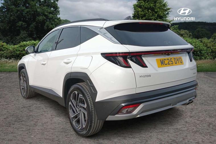 12.3" LCD display with driver's supervision instrument cluster, 12.3" widescreen navigation with bluelink and mapcare, Blind spot view monitor, Bluetooth system, Cruise control - smart adaptive speed control with stop and go function, Digital clock, Drive mode selector, Driver attention warning, E-call, Emergency stop signalling system, Forward Collision Avoidance Assist (FCA) - Car, Pedestrian and Cycle, Forward Collision Avoidance Assist Junction Turning (FCAJX), Front and rear parking sensors, Front, rear and side parking distance warning, Highway Driving Assist (HDA), Hyundai road side assistance, Intelligent speed limit assist, Lane follow assist, Lane keep assist, Over the air updates(OTA), Parking collision avoidance assist (PCA), PAS, Rear camera and guidance parking system, Rev counter, Smart power tailgate, Surround view monitor, Tailgate open warning light, Trip computer, Trip odometer, Voice recognition, Water temperature gauge, Windscreen washer fluid sensor and warning indicator, Wireless Apple CarPlay/Android Auto, Wireless phone charging pad, 2 front and 2 rear USB-C ports, DAB Digital radio, Krell premium audio system with 8 speakers and subwoofer, Steering wheel mounted audio/phone controls, Adjustable intermittent front windscreen wipers with aero wiper blade, Auto dimming rear view mirror, Automatic defog system, Automatic headlights with dusk sensor, Automatic windscreen wipers with rain sensor, Black wheel arches, Body colour bumpers, Body colour door mirrors with integrated indicators, Body colour exterior door handles, Electric tilt/slide panoramic sunroof, Electrically adjustable, heated and power folding door mirrors, Follow me home headlights, Front and rear electric windows with anti-trap mechanism and one touch control, Front fog lights, LED 3rd brake light, LED daytime running lights, LED rear lights, Matrix LED headlights, Positioning Lights - LED, Privacy glass - Rear windows and tailgate, Rear side wing doors, Rear wash/wipe with intermittent wipe setting, Roof rails, Tinted glass with windscreen shade band, Trailer stability assist, 12V power outlets in front console and luggage compartment, 3 seat bench in 2nd row, 40/20/40 split folding rear seat, 64 colours interior ambient lighting, Adjustable head restraints (Up and down), Cupholders in rear armrest, Door courtesy lights, Driver and passenger sunvisors with illuminated LED vanity mirrors, Driver's seat electric adjustments, Driver's seat memory, Front and rear door pockets, Front armrest with storage box, Front centre console and door bottle holders, Front passenger's seat electric adjustments, Heated front seats, Heated rear seats, Heated steering wheel, Height/reach adjustable steering column, Illuminated/air conditioned glove compartment, ISOFIX child seat anchorage points attached on outer rear seats, Leather upholstery, Leather wrapped steering wheel and gear knob, Luggage compartment lighting, Luggage cover, Luggage hooks, Luggage net, Map and reading lights, Rear seat remote folding function, Rear side window sunblind, Reclining rear seats, Retractable load cover, Single front passenger seat, Sunglasses holder, Three zone climate control, Touch sensitive climate controls with temperature dials, TUCSON branded metal door scuff plate, Underfloor boot compartment, Ventilated front seats, Trailer wiring package - Tucson, 3x3 point rear seatbelts, Active bonnet, Airbag - Front, front side, curtain and centre front airbags, Anti-lock brake system (ABS), Brake assist function, Childproof rear door locks, Curtain airbag roll over sensor, Downhill brake control, Electric parking brake, Electronic stability control, Front and rear seatbelt reminder, Front passenger airbag deactivation switch, Front seatbelt pretensioners, Hill start assist control (HAC), Multi-Collision braking, Outer rear seatbelt height adjustment, Seatbelt height adjustment for front seats, Traction control, Tyre pressure monitoring system with individual tyre pressure display - TPMS, Vehicle stability management, Deadlocks, Immobiliser, Locking wheel nuts, Remote control central locking, Smart key with keyless entry and engine start/stop button, Speed sensitive auto door locking, Thatcham category 1 alarm, 19" Alloy wheels, Tyre repair kit,