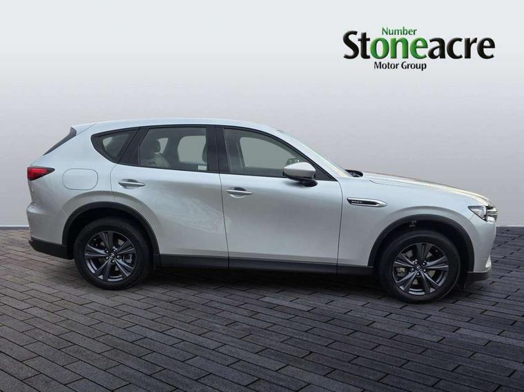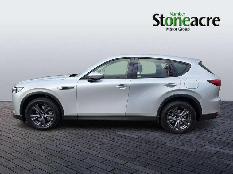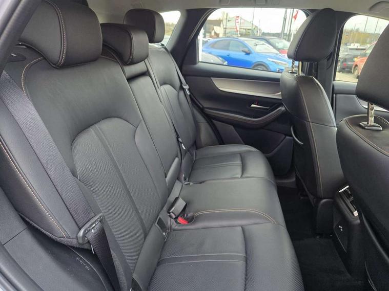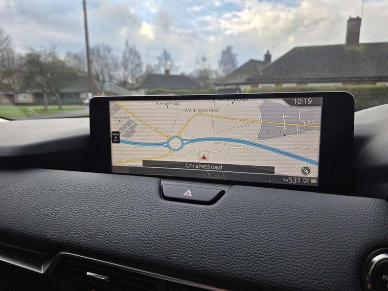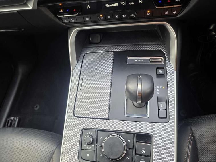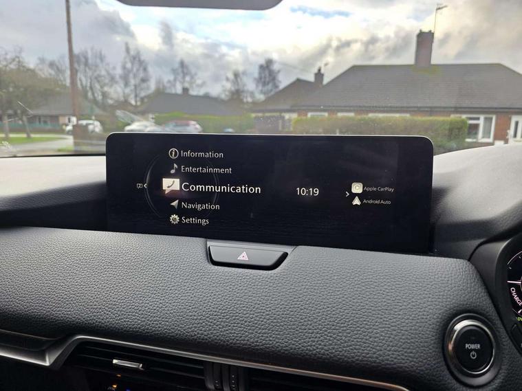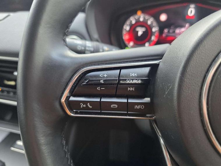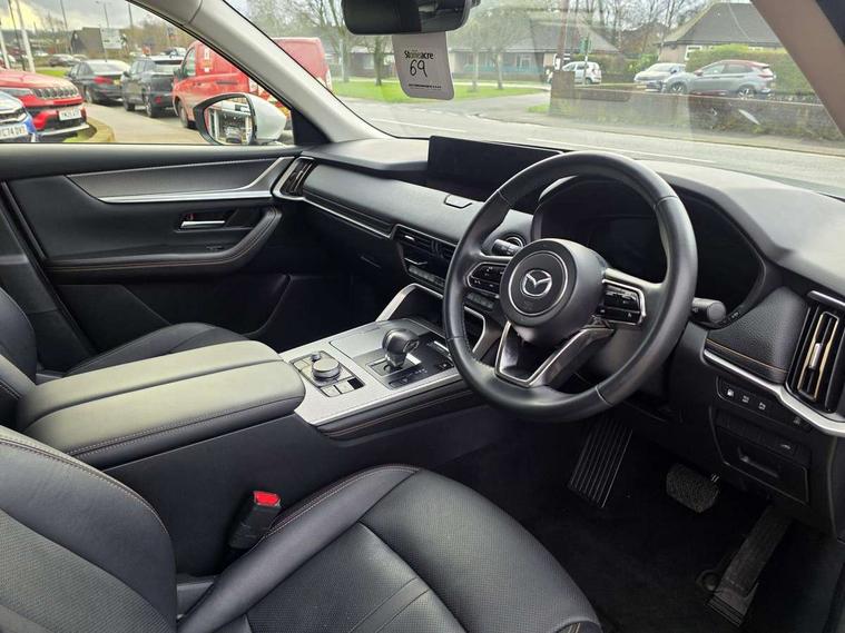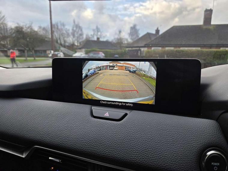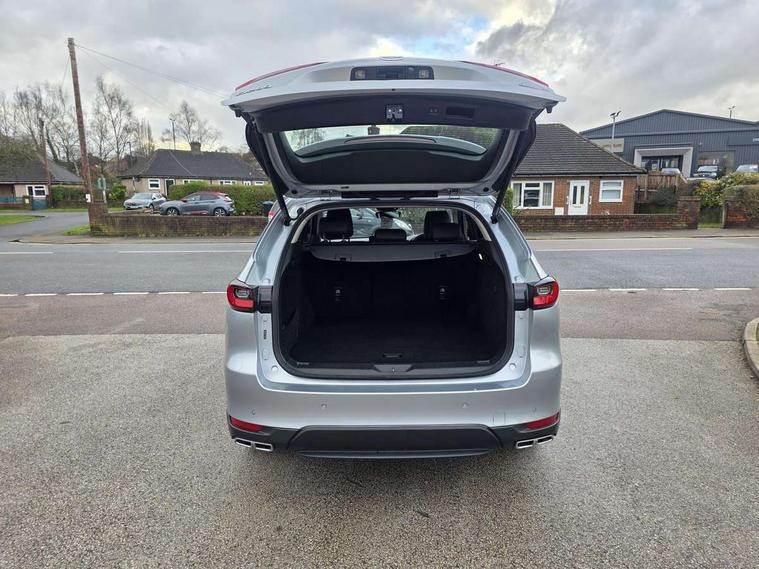 Emergency lane keeping with blind spot assist, Low washer fluid warning light, 12.3" Colour entertainment centre display with mazda connect infotainment, 12.3" TFT Colour display, Adjustable speed limiter, Blind spot assist, Blind spot monitoring with rear cross traffic alert, Cruise control, Distance alert system, Driver attention alert system, E-call with GPS, Emergency stop signalling system, Exit warning function, Front and rear parking sensors, Integrated bluetooth, Intelligent speed assist, Kinematic posture control, Lane keep assist system (LAS) with Lane departure warning system (LDWS), Mazda Navigation System with european mapping, Multimedia Commander, PAS, Power lift gate with handsfree function, Power liftgate, Power start/stop button, Reversing camera with static guide lines, Speed alert, Traffic sign recognition enhanced with mandated excessive speed warning, Trip computer, Windscreen projected colour active driving display, Wireless apple car play/android Auto, Type 2 Mode 2 cable for AC charging via UK 3-pin plug, 7.2 kw On board Charger, Mi-Drive (Normal, Sport, Off-road, Towing and EV mode), Paddle shift, Type 2 Mode 3 cable for AC charging via home or public charge points, AM / FM / DAB radio with 8 speakers, Steering wheel mounted audio/bluetooth controls, USB-C inputs (x2 front and x2 rear), Auto dimming driver's door mirror, Automatic headlight levelling, B-pillar and C-pillar garnishes in gloss black finish, Black wheel arch and side mouldings, Body colour roof spoiler, Body coloured bumpers, Body coloured door mirrors, Chrome finish signature wing in front grille, Chrome front side garish, Coming/leaving home lighting function, Dark plated headlight lense, Dusk sensing headlights, Electric front/rear windows with one touch auto up/down, Electrically adjustable, heated auto power folding door mirrors, Frameless auto dimming interior rear view mirror, Front kodo turn signal, Front wiper de-icer, Headlight washers, High beam control, LED 3rd brake light, LED headlamps, LED rear signature combination lamps, Piano black bar type front grille, Piano black window surrounds, Rain sensing front wipers with adjustable sensitivity and speed, Rear side wing doors, Rear wiper, Roof pillars and roof lining finished in lighter colour to soften the overall look, Signature LED daytime running lights, Silver decoration panel, 12v power outlet - front, 12V socket in boot, 3 height adjustable rear headrests, 3 seat bench in 2nd row, 40/20/40 split folding rear seats with quick levers in the boot, Cargo net, Chrome interior trim accents with steering wheel centre bezel, surround of engine start / stop button and glove box handle, Door panel trim vinyl leather with armrest, Driver and front passenger two rear grab handles with rear coat hooks, Driver and front passenger visors with covered vanity mirror and driver ticket holder, Driver seat manual slide, recline, height and seat tilt adjust, Driver, front passenger and two rear door pockets, Driver/passenger front seatback pockets, Dual zone climate control air conditioning with rear air vents, Featuring black vinyl leather dashboard trim with titanium coloured accents, Folding rear centre armrest with two cup holders, Front and rear signature illumination, Front centre storage with two cupholders, Front down lamp with front and rear foot lamps, Front headrests, Front passengers seat manual slide, recline and height adjustment, Glovebox illumination, Heated front seats with 3 stage setting, Heated leather wrapped steering wheel, ISOFIX child seat anchorage points attached on outer rear seats, Karakuri tonneau cover, Leather upholstery, Leather wrapped gear shift knob, LED illumination luggage compartment, Manual telescopic and tilt adjustment steering wheel, Practical and spacious front centre armrest storage, Rear seat recline function for rear passenger comfort, Remote fold down rear seats, Roof mounted sunglasses holder, Single front passenger seat, 3 point ELR front seat belts x2 with pretensioners, 3 point ELR rear seat belts, Active bonnet, Anti-lock braking system (ABS), Drivers knee airbag, DSC - Dynamic Stability Control, Electronic parking brake with auto disengage function and auto hold function, Front and rear curtain airbags, Front dual stage driver and single stage front passenger airbags, Front passenger airbag cut-off switch, Front side airbags, Front smart city brake support, Hill decent control, Hill launch assist, Manual rear child locks, Seatbelt reminder for driver/front passenger and rear seats, Traction control, Tyre pressure monitoring system (TPMS), Remote central locking with deadlocking and automatic door lock when driving, Smart keyless entry, Thatcham accredited alarm and immobiliser, Mesh metal film centre console panel, 18" Grey metallic alloy wheels, Emergency tyre repair kit,