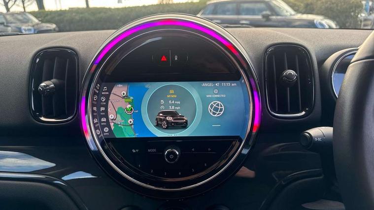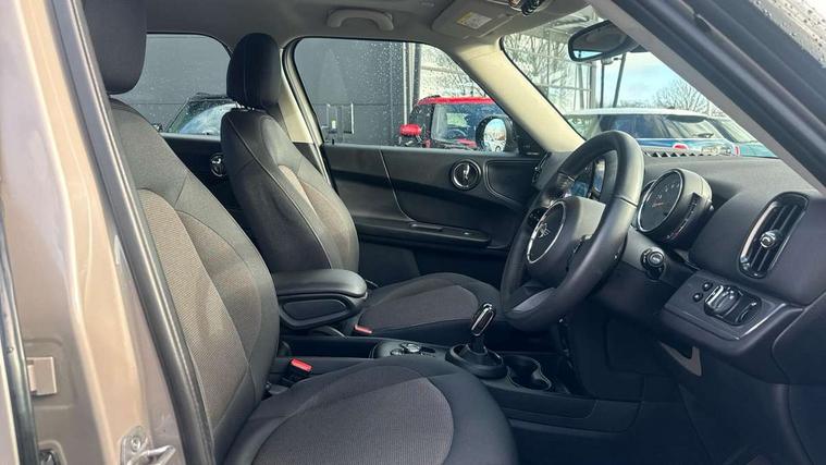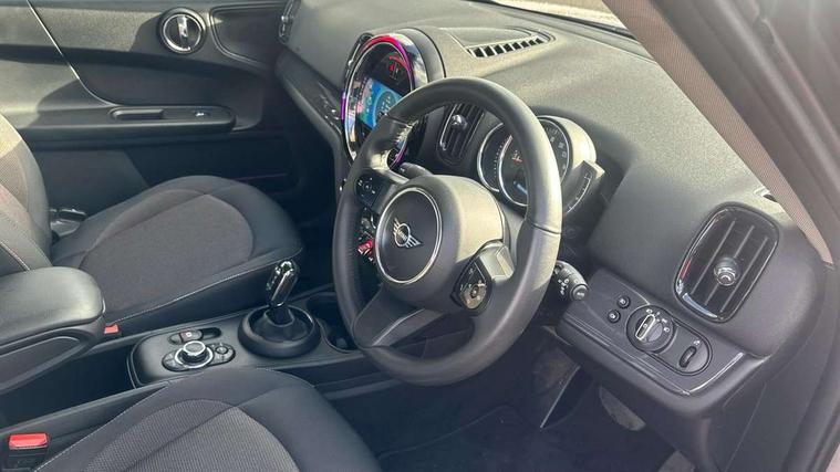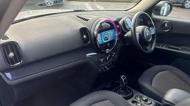 Active Guard incl speed limiting and lane departure functions with auto steering, and front collision warning with brake intervention, Automatic start/stop function with brake energy recuperation, Compatible mobile phone bluetooth with audio streaming, Cruise control with brake assist, Electro-mechanical speed dependant steering assistance, Instrument cluster, Mini E-call, On board computer, Rear parking distance control, 51 Litre fuel tank, Double Vanos system, Fully variable valve control, High precision injection, Performance Control, Steptronic transmission with double clutch, FM tuner and DAB digital radio, 3rd brake light, Body colour fuel filler cap, Day time driving lights, Door sill strips, Dynamic brake lights, Electric windows, Heated rear window, Heated windscreen washer jets, LED fog lights, LED Headlights, Left exhaust tailpipe with chrome finisher, Model logo, Model logo on Tailgate, Radiator grille, Rain sensor with auto headlights, Rear fog lights, Rear side wing doors, Rear window wiper, Side scuttle panel with integrated indicator, Split rear doors, Sun/heat protection glass, White indicator lenses, 12V socket in centre console, 3 seat bench in 2nd row, 3 spoke sport leather steering wheel + limiter function and audio controls, 360L luggage compartment capacity, 4 lashing eyes in luggage compartment, 40:20:40 split folding rear seats, Chrome interior highlights, Colour line - Carbon black, Cupholders, English handbook, Floor mats, Front headrests, Glove compartment, Headliner with grab handles and clothes hooks, Height and length steering column adjustment, Interior lighting with 12 basic colours selectable via toggle switch in roof, Isofix rear child seat preparation, Leather gearshift lever and handbrake gaiters, LED reading lights, vanity mirror lights, front foot well light and spotlight on front seats, Manual air conditioning, Mechanical seat adjustment, driver seat height adjust, forward/back and front seats backrest, Multifunction steering wheel, Passenger seat height adjuster, Rear headrests, Single front passenger seat, Storage compartments in doors, Sunvisors with vanity mirrors, Excitement pack - Countryman, Navigation pack - Countryman, 2 tone horn, 3 point seatbelts on all seats, 6 Airbags - front, side, head and seat belt tensioners, Anti-lock braking system (ABS), DSC - Dynamic Stability Control, Electronic handbrake, Front and rear disc brakes, Hill start assist, Manual rear child locks, Tyre pressure monitoring system, Alarm system with tilt sensor, monitoring doors, bonnet interior and tailgate, Auto drive away locking, Deadlocking function, Electronic vehicle immobiliser, Locking wheel bolts, Start/stop toggle with keyless go, Tool kit,