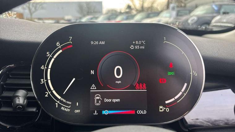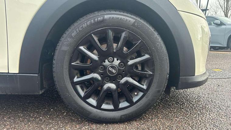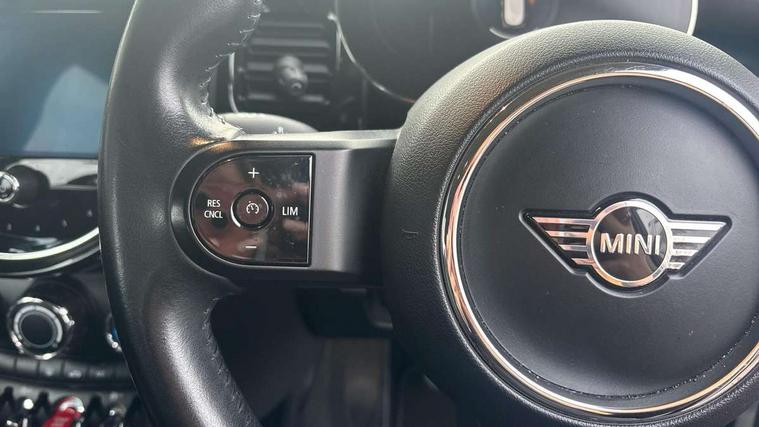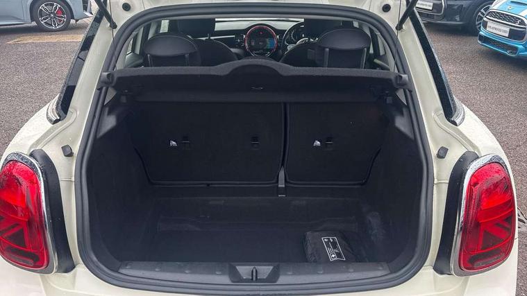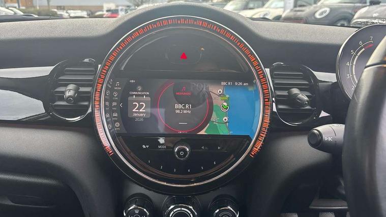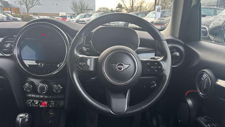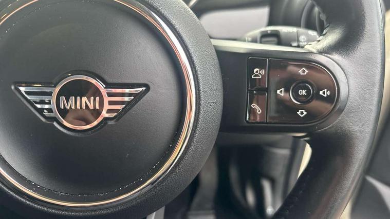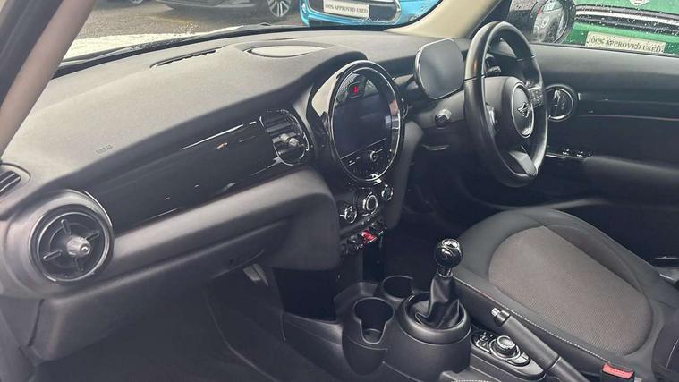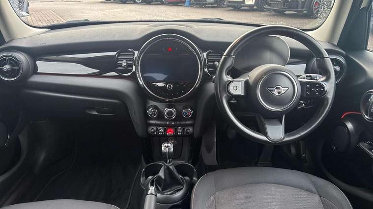 Automatic start/stop function with brake energy recuperation, Compatible mobile phone bluetooth with audio streaming, Cruise control with brake assist, Electro-mechanical speed dependant steering assistance, Flexible car sharing preparation, Instrument cluster, Mini E-call, MINI TeleServices, On board computer, Service interval indicator, 6 Speed manual transmission including gear change indicator display, Double Vanos system, Fully variable valve control, High precision injection, Performance Control, 6 speakers in front door trims and underneath front seats, 8.8" touchscreen with LED ring, FM tuner and DAB digital radio, Automatic headlight activation switch, Body colour fuel filler cap, Chrome border high gloss black slats radiator grille, Dynamic brake lights, Electric front+rear windows, Exhaust tailpipe on left with chrome finisher, Heated rear window, Heated windscreen washer jets, LED headlight with closed ring and daytime driving lights, Metal door sill strips with MINI imprint, Model logo Cooper on right of tailgate, Rain sensor window wipers, Rear fog lights, Rear LED lights with union jack design, Rear window wiper, Side scuttle panel with integrated indicator, Sun/heat protection glass, White indicator lenses, 12V Accessory socket in centre console, 4 lashing eyes in luggage compartment, 60/40 split folding rear seat, Ambient lighting, Carbon black colour line - Knee roll and door armrest, Chrome interior highlights, Cupholders, Front and rear head restraints, Front and rear isofix with front passenger airbag deactivation, Glove compartment, Height and length steering column adjustment, Interior lighting with 12 different colours across the dashboard, underneath door bezel with illuminated laser-engraved design on central display, Leatherette gearshift lever and handbrake gaiters, LED reading lights, vanity mirror lights, front foot well light and spotlight on front seats, Manual air conditioning, Mechanical seat adjustment - forward/back & backrest for front seats and driver seat height adjust, Multifunction steering wheel, Satellite grey headlining including grab handles and clothes hooks, Sport leather steering wheel with speed limiter and audio/communication controls, Storage compartments in doors, Sunvisors with vanity mirrors, Tool kit, Velour floor mats, 3 point seatbelts on all five seats, 6 Airbags - front, side, head and seat belt tensioners, Anti-lock braking system (ABS), DSC - Dynamic Stability Control, Front and rear disc brakes, Hill start assist, Single tone fanfare horn, Tyre pressure monitoring system, Alarm system with tilt sensor, monitoring doors, bonnet interior and tailgate, Electronic vehicle immobiliser, Start/stop toggle with keyless go, Piano black interior trim, Tyre repair kit,