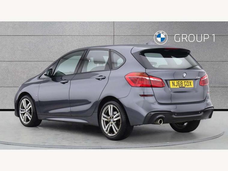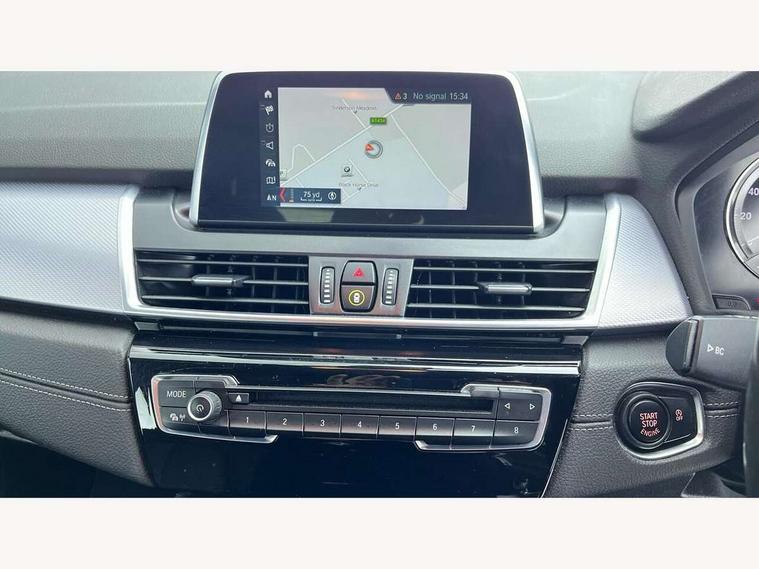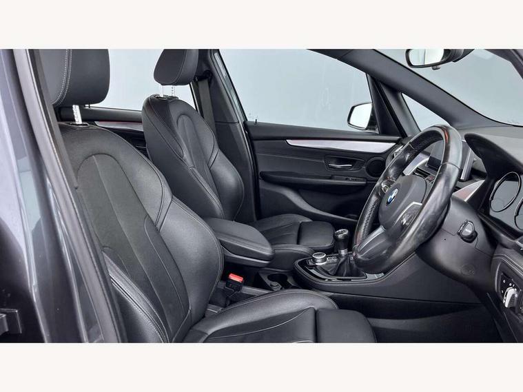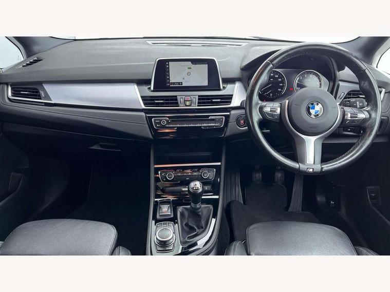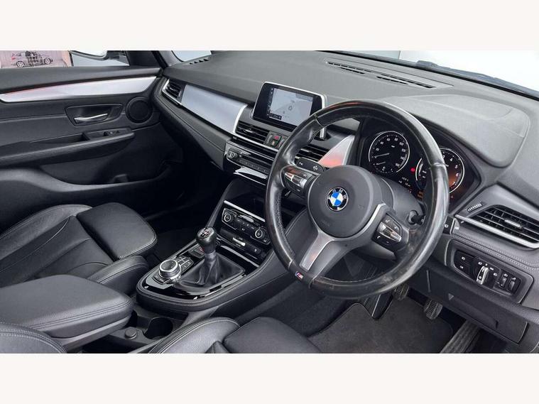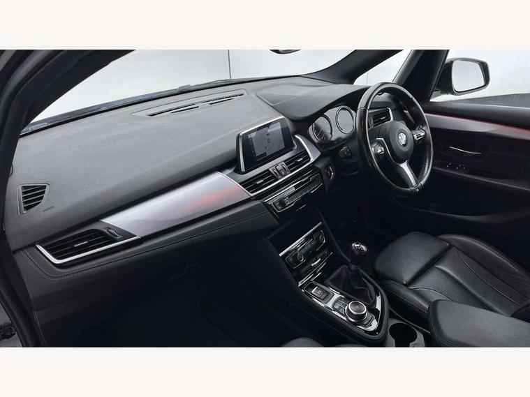 Attentiveness assist, Automatic tailgate operation, BMW Online services, BMW remote services, BMW Teleservices, Check control system, Cruise control with brake assist, Door/boot open warning light, Forward collision warning, Lights on warning, Oil temperature gauge, On board computer, Outside temperature display, Personal Profile, Service interval indicator, Speed limiter, Stop/start button, Drive Performance Control, Electronic differential lock, 2x USB sockets in front, Bluetooth audio streaming, BMW professional radio/CD/MP3, DAB Digital radio, Body colour bumpers, Body colour door handles, Body colour door mirrors, Body colour roof mouldings, Chrome exhaust tailpipe, Chrome kidney grille with black vertical slats, Door sill finishers, Electric adjustable heated door mirrors, Electric front/rear windows with one touch/auto up/down, Follow me home headlights, Heat insulating tinted glass, Heated windscreen washer jets, High beam assistant, LED daytime running lights, LED front fog lights, Rain sensor including auto headlights activation, Rear wiper, Welcome lighting, 3 rear headrests, 3 spoke leather M sport multifunction sports steering wheel, 4 grab handles, Anthracite headlining, Anthracite Velour floor mats, Dakota leather upholstery, Dual zone automatic air conditioning, Front armrest, Front head restraints, Front sports seats with electric side bolster adjustment, Front/rear armrests within door panels, Illuminated glovebox, Isofix front passenger and rear seat preparation, Luggage compartment lighting, Multifunction steering wheel, Reach + rake adjustable steering column, Rear centre armrest, Sliding rear seats with front under seat storage, Sunvisors, Extended storage pack - 2 Series Active/Gran Tourer, 3 point seatbelts on all seats, ABS, BMW emergency call, Brake assist function, Childproof rear door locks, Collision mitigation braking system, Crash Sensor - activates hazard/interior lighting + unlocks doors, Driver/Front Passenger airbags, DSC+, Dynamic Traction Control - DTC, Front and rear curtain airbags, Front passenger airbag deactivation, Front seatbelt force limiters, Front seatbelt pretensioner, Front side airbags, Hill start assist, Seatbelt warning, Side impact protection, Tyre pressure monitoring system, Warning triangle and first aid kit, Electronic immobiliser, Key integrated remote control central locking, Locking wheel bolts, Remote control Thatcham category 1 alarm, 18" M Double spoke alloy wheels - style 486, Run flat tyres,
