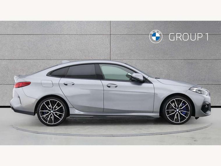 Active guard plus, Attentiveness assist, Auto start-stop, BMW ConnectedDrive online services, BMW Intelligent Personal Assistant, BMW Live Cockpit Professional with 10.25" high resolution instrument and control display, BMW Online services, BMW operating system with 7.0 mid interface, BMW Teleservices, Check Control warning system for monitoring of lights and door/luggage compartment open warning, Cruise control with braking function, iDrive controller with 7 short cut favourite buttons on centre console, Integrated navigation data with map data via USB +features such as 3D landmarks and micro city models, Integrated owners handbook, Intelligent voice assistant, Lane departure warning system, M Sports steering, On board computer - average speed+fuel consumption, service interval, clock/date, odometer/trip meter, outside temperature display and ice warning, Optimum shift indicator, Personal Profile, Pull away assistant, Speed limiting function, Aluminium lightweight construction, Balancer shaft, Double VANOS, Drive performance control with ECO PRO comfort + sport mode, Dual clutch automatic transmission, Electronic differential lock, High precision injection, M Sport suspension with stiffer spring/damper set-up and vehicle lowered by 10mm + twin tube gasfilled shock absorbers and Anti roll bars, Performance Control, Petrol Particulate Filter, VALVETRONIC engine management, 2x USB Type C ports (for charging and data transfer), 4G LTE Connectivity with hard wied 4G network sim card, DAB digital radio, MP3 players and RDS double tuner, Auto wipers, Automatically dimming rear view mirror, Body colour door handles, Body colour mirror caps, Chrome 'M' logo side designation, Chrome exhaust single tailpipe, round, Direction indicator side lights integrated exterior mirrors, Electric windows - front and rear, with open/close fingertip control and trap release, Exterior mirrors - electrically folding with anti-dazzle, Fading support, Follow me home headlights, Front and rear bumper system with replaceable deformation elements, Front door sill finishers in black plastic with M designation in metallic look, Heated, electrically adjustable exterior mirror aspheric on driver side, convex on passenger side, High gloss black B pillar finish, High gloss shadow line exterior trim, High level third brake light, LED daytime running lights, LED front fog lights, Lightweight engineering, Model designation on right side of tailgate, Preparation for high beam assistant, Rain sensor with automatic headlight activation, Rear boot, Rear fog lights, Rear side wing doors, Reversing light in rear light cluster, Welcome lighting, 12V power socket in centre console, 2 cupholders in front centre console, 3 rear seat head restraints, 3 rear seats, 3 spoke M sports design leather steering wheel finished in nappa leather with specific M badge, Anthracite finished floor mats with contrasting surround, Anthracite headlining, Automatic two zone climate control air conditioning, Child seat ISOFIX attachment for two outer rear seats and front passenger seat with anchorage points, Conditioned based service, Driver and front passenger seat heating, Front and rear door pockets including bottle trays, Front and rear side armrests integrated into door trim, Front armrest foldable with integrated storage compartment, Front centre interior light over interior mirror and rear centre automatic interior light when door is opened/ignition switched off or via remote key, Front head restraints, Front passenger seat, Front sports seats with electric side bolster adjustment, Glove compartment, Luggage compartment lighting, Manually adjustment steering wheel column, Multi-function controls for steering wheel, Sun visors with vanity mirrors and insert tab, Through loading system with 40/20/40 split folding rear seat, Two lashing eyes, Additional interior lighting pack - 2 Series Gran Coupe, Connected pack professional - 2 Series Gran Coupe, Extended storage pack - 2 Series Gran Coupe, M Sport exterior styling aerodynamics pack - 2 Series Gran Coupe, 2 tone horn, Airbag - Front driver and passenger, front and rear head, front side, curtain head protection, manual deactivation of front passenger airbag possible, Anti lock braking system (ABS) with cornering brake control, BMW emergency call, Brake drying, Braking readiness, City braking function, Crash sensor activating of airbags, Unlocking doors, hazard warning lights, interior light, safety battery terminal, Dynamic stability control + (DSC+), Dynamic Traction Control - DTC, Electrically operated hand brake, Rear brake discs, Rear child proof door locks, Seat belt security check for driver and front passenger, Seatbelt warning, Side impact protection, Three point seat belts on all seats including front belt stopper, pyrotechnic belt tensioners and belt force limiters, Trailer stability control, Tyre pressure monitoring system, Ventilated front disc brakes, Warning triangle and first aid kit, Central locking switch for all doors, fuel filler cap and luggage compartment, Deadlocking function system to all doors, Drive away locking system on all doors and luggage compartment, Locking wheel bolts, Start/Stop button (illuminated) in centre console with keyless engine start and Auto Start-Stop deactivation button, Thatcham Cat.1 alarm and immobiliser, Two remote control key with integrated key - open/close doors/fuel flap/tailgate +1 button for unlock compartment with M design high gloss black inlay, Contrast stitching on instrument panel, 18" Burnished M double spoke bi-colour alloy wheels finished in orbit grey - style 819M, Reduced rolling resistance tyres,