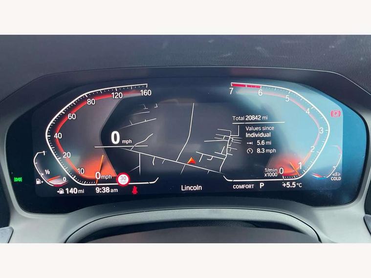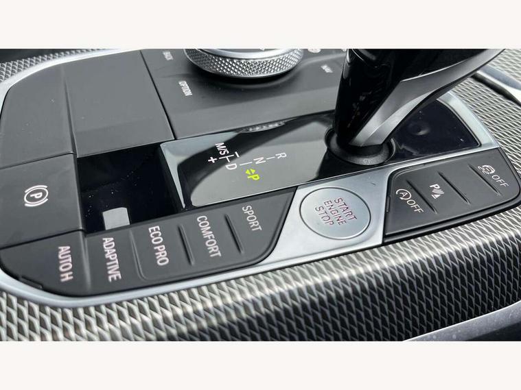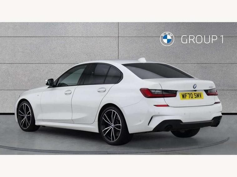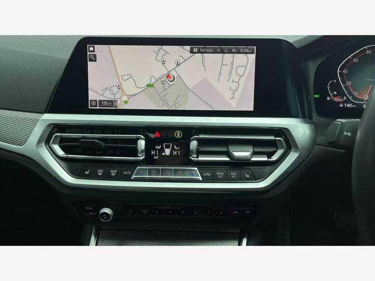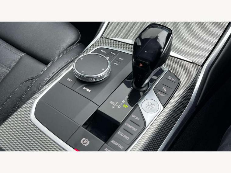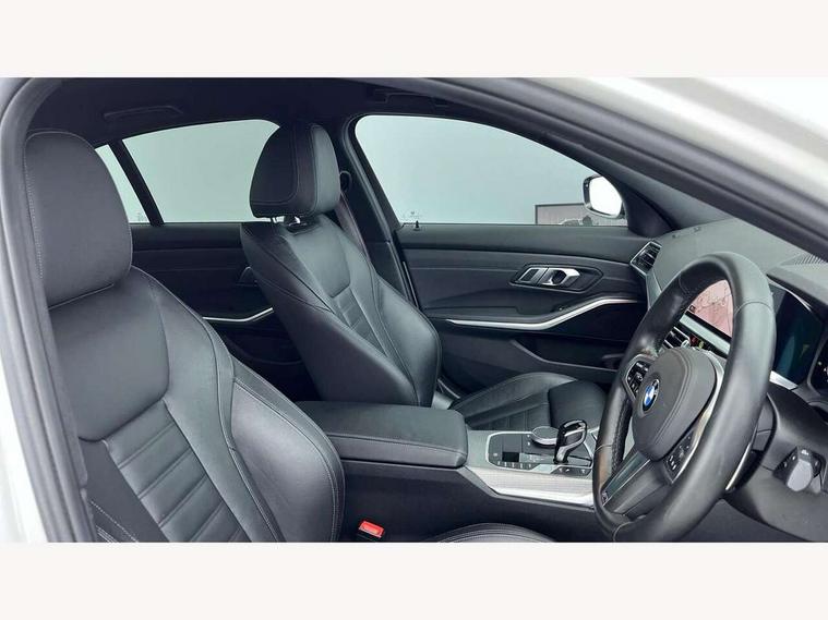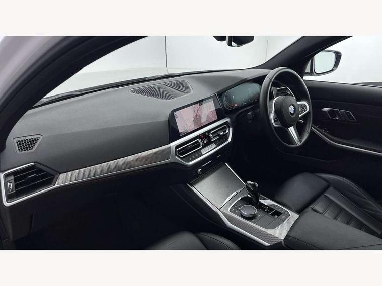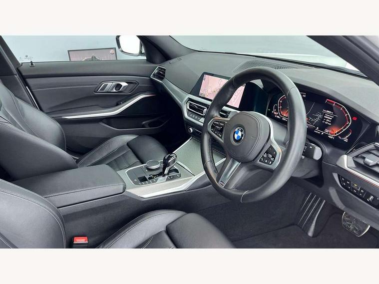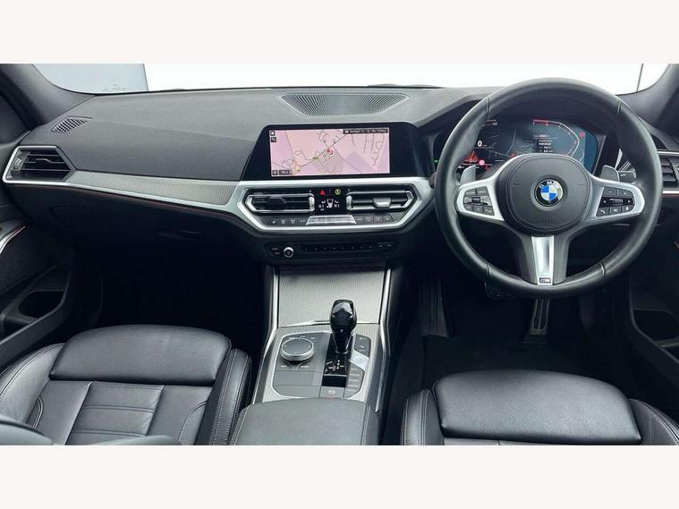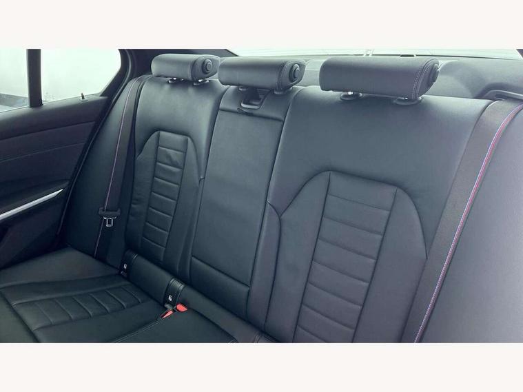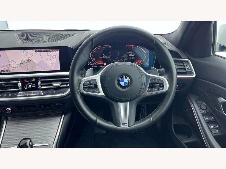 Active guard plus, Attentiveness assist, Auto start-stop, BMW iDrive controller on centre console, BMW Live Cockpit Professional Nav with 12.3" instrument display + 10.25" display, Intelligent Voice Assist, BMW OS 7, HDD, 2USB, 4G LTE connect, BMW service history, BMW Teleservices, Brake pad wear indicator in front and rear, Check Control warning system for monitoring of lights and door/luggage compartment open warning, Condition based service, Electric power steering with Servotronic steering optimised at all speed ranges, Instrument cluster with speedometer with mph readout, tachometer, fuel gauge and oil temperature gauge, Integrated owners handbook, Oil sensor for level and grade, warning by check control system, On board computer - average speed+fuel consumption, service interval, clock/date, odometer/trip meter, outside temperature display and ice warning, Optimum shift indicator, Personal Profile - automatic lock when driving away selectable, Variable sport steering, Balanced 50/50 weight distribution, Battery cut-out switch, Drive performance control - ECO PRO, comfort and sport modes, Larger capacity fuel tank, M sport suspension, Petrol Particulate Filter, Sport automatic transmission with steering-wheel mounted gearshift paddles and launch control, Stroke dependent dampers, DAB tuner, Electronic service booklet, Acoustic glazing, Automatic headlight beam throw control with load dependent regulating reaction, dynamic compensation of braking dive and acceleration squat, Black roof mouldings, Body colour door handles, Body colour fuel filler flap, Body colour mirror caps, Dynamic brake lights, Electric windows - front and rear, with open/close fingertip control, anti-trap facility and comfort closing, Exhaust tailpipe - split left and right, Exterior mirrors - electrically folding with anti-dazzle, Fading support, Front and rear bumper system with replaceable deformation elements, Front black door sill finishers with BMW designation, Green tinted heat protection glazing, High gloss shadow line exterior trim, Interior rear view electrochromatic mirror with automatic anti dazzle function, LED daytime running lights, LED front fog lights, Lightweight engineering, M designation on front side panels, left and right, Matt black exterior B pillar, Model designation on right side of tailgate, Rain sensor with automatic headlight activation, Shark fin antenna, Two part LED tailights in L-shape with components in smoked glass, brake light, LED turn indicator and rear fog light, Visible VIN plate, Welcome lights in interior and door handle area, Windscreen wipers with integrated washing jets, 12V power socket in front storage compartment, 2 front cupholder in centre console with clamping elements and matt black inlay, 3 rear seats with non folding headrests with 3 point seat belts, 3 zone automatic air conditioning, 4 pieces lashing eyelets in luggage compartment, 40:20:40 split folding rear seat with loading system, Ambient lighting with welcome carpet light, Anthracite headlining, Armrest integrated in front and rear door trim + front centre console armrest, Centred top Luggage compartment lights, Four grab handles integrated in roof lining, Front and rear door exit lighting (left / right), Front and rear door pockets, Front and rear reading lights, Front and rear velour floor mats, Front head restraints, Front sport seats, Heated driver and front passenger seats, Height adjustable mechanically and infinitely variable steering column, Illuminated armrest storage compartment, Illuminated glove compartment with separate small compartment, Interior lighting - front centre over interior mirror with soft light, rear centre and front and rear footwell lighting, M Sport multifunction leather steering wheel, Make-up mirror lights, Rear centre armrest with 2 cupholders, Rear centre console with storage compartment and ventilation grille, Sunvisors with vanity mirrors and ticket pocket, Toolkit located in luggage compartment, Connected pack professional - 3 Series Saloon/Touring, M Aerodynamics pack - 3 Series Saloon/Touring, 2 tone horn, BMW emergency call, Brake energy regeneration, Braking pre-tensioning, Child proof locking system in rear door, Child seat ISOFIX attachment rear outer seats, Coasting in idle in ECO PRO mode, Crash sensor activating of airbags, Unlocking doors, hazard warning lights, interior light, safety battery terminal, Driver and front passenger side airbags, integrated in the door side seat backrest bolsters for all seat variants, Driver/Front Passenger airbags, Dry braking, Dynamic brake control, Dynamic stability control + (DSC+) - Anti-lock Braking System (ABS) with brake assist and cornering brake control + Automatic Stability Control (ASC), Dynamic Traction Control - DTC, Electric parking brake including automatic hold function and automatic release of the parking brake when driving off, Electronic differential lock control (EDLC), Front passenger manual airbag deactivation, Head airbags for all 4 outer seats, Hill start assist, Seat belt security check for driver and front passenger, Side impact protection, Three 3 point seat belts on all seats including front belt stopper, pyrotechnic belt tensioners and belt force limiters, Tyre pressure monitoring with three level warning strategy, Ventilated front and rear disc brakes, Warning triangle and first aid kit, Alarm system (Thatcham 1) with remote control and electronic engine immobiliser, Central locking switch for all doors, fuel filler cap and luggage compartment, Remote control with integrated key one button open/close vehicle and windows, sole opening of the luggage compartment lid and panic mode, Start/stop button with Comfort Go keyless engine start and auto Start/stop deactivation button, Vehicle key with M specific designation, Reduced rolling resistance tyres,