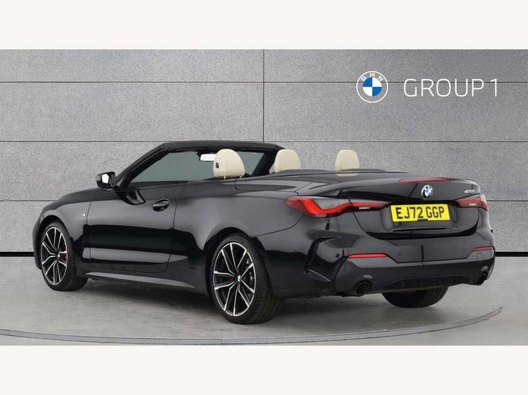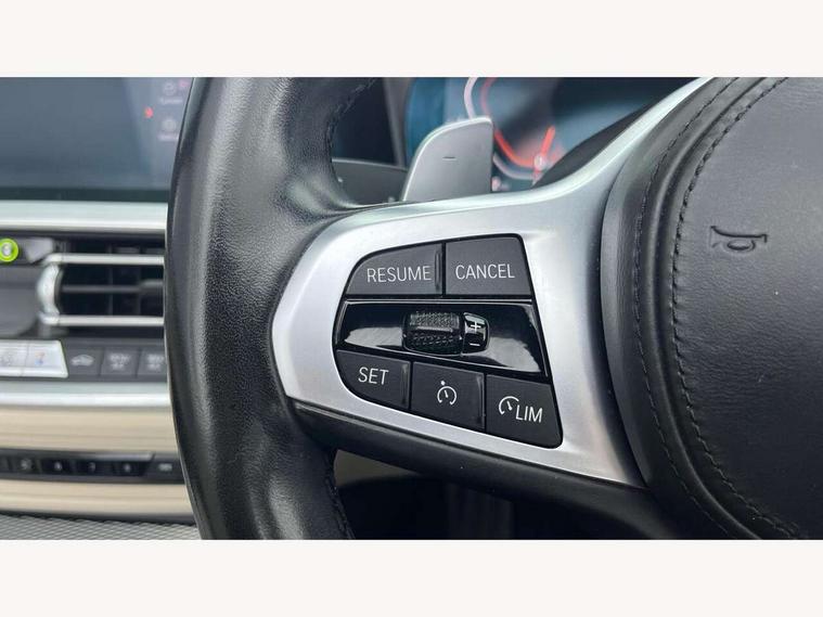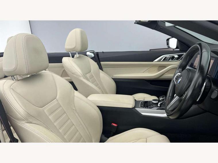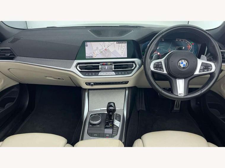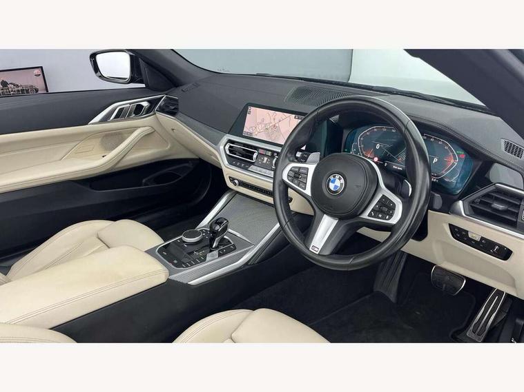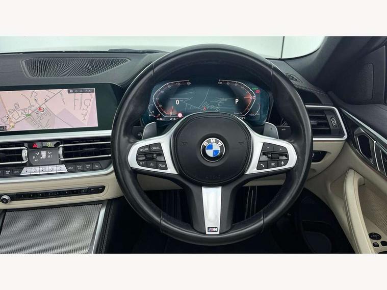 Active guard plus, Attentiveness assist, Auto start-stop, BMW ConnectedDrive online services, BMW Live Cockpit Professional Nav with 12.3" instrument display + 10.25" display, Intelligent Voice Assist, BMW OS 7, HDD, 2USB, 4G LTE connect, BMW service history, BMW Teleservices, Brake pad wear indicator in front and rear, Check Control warning system for monitoring of lights and door/luggage compartment open warning, Condition based service, Cruise control with speed limit function, Electric power steering with Servotronic steering optimised at all speed ranges, Gearshift time display in manual mode, iDrive controller on centre console, Instrument cluster with speedometer with mph readout, tachometer, fuel gauge and oil temperature gauge, Integrated owners handbook, Oil sensor for level and grade, warning by check control system, On board computer - average speed, fuel consumption, outside temp display with acoustic warning, clock/date, service interval, odometer/trip meter, Optimum shift indicator, Run flat indicator, Shifting point display, Variable sport steering, 8 speed automatic steptronic transmission with gearshift paddles, Balanced 50/50 weight distribution, Double joint spring strut front axle, Double VANOS, Drive performance control - ECO PRO, comfort and sport modes, High precision injection, Low centre of gravity, M sport suspension, Petrol Particulate Filter, Stroke dependent dampers, VALVETRONIC engine management, 2x USB Type C ports in front centre console for charging and data transfer, 2x USB Type C ports in rear centre console for charging, DAB tuner, Electronic service booklet, Acoustic glazing, Automatic headlight beam throw control with load dependent regulating reaction, dynamic compensation of braking dive and acceleration squat, Automatic windscreen wipers and automatic headlight, Automatically dimming electrochromatic rear view mirror, BMW emblem on engine compartment lid and tailgate, BMW kidney grille with mesh grille front side of the nuggets in matt aluminium and frame in chrome high gloss, Body colour fuel filler flap, Body colour roof fin, Brushed aluminium inserts in the front door sill finishers with BMW designation, Door sill strips, Dynamic brake lights, Electric windows - front and rear, with open/close fingertip control, anti trap facility and comfort closing function all round, Exterior mirrors - electrically folding with anti-dazzle, Fading support, Follow me home headlights, Front and rear bumper system, Front apron plastic in body colour, Green tinted heat protection glazing, High gloss shadow line exterior trim, Illuminated bow type door handles in body colour drivers side with door lock, Interior rear view electrochromatic mirror with automatic anti dazzle function, LED daytime running lights, LED front fog lights, LED front indicators, Licence plate panel integrated into front bumper and tailgate, Lightweight engineering, M designation on front side panels, left and right, Model designation on right side of tailgate, One piece front bumper cover including towing eye cover in body colour, Preparation for high beam assistant, Rear boot, Reversing light, Side frame decorative moulding black matt, Third brake light, Two part LED tailights in L-shape with components in smoked glass, brake light, LED turn indicator and rear fog light, Visible exhaust tailpipe finisher, Visible VIN plate, Welcome lights in interior and door handle area, Widened track and increased camber values for max transverse dynamics, agility and steering precision, Window recess cover black high gloss, Windscreen wipers with integrated heated washing jets, 12V power socket in front centre console, 2 2nd row folding seats, 2 front cupholder in centre console with clamping elements and matt black inlay, 2 Rear seat headrests, 2nd row centre armrest with built-in cupholders, 3 spoke M sport leather multifunction steering wheel, 3 zone automatic air conditioning, 4 pieces lashing eyelets in luggage compartment, Armrest integrated in front and rear door trim + front centre console armrest, BMW ID, Electric seat adjustment with memory, Four grab handles integrated in roof lining, Front and rear door pockets, Front and rear reading lights, Front sport seats, Heated driver and front passenger seats, Height adjustable front headrests, Height adjustable mechanically and infinitely variable steering column, Illuminated armrest storage compartment, Illuminated glove compartment with separate small compartment, Make-up mirror lights, Single front passenger seat, Storage compartment in rear centre console, Sunvisors with illuminated vanity mirrors and ticket pocket, Through load system, Toolkit located in luggage compartment, Velour front floor mats, Vernasca leather upholstery, Ambient lighting pack - 4 Series, Connected professional pack - 4 Series, M sport exterior styling pack - 4 Series, 2 x 3-point rear seat belts, Battery safety cut-off, BMW emergency call, Brake energy regeneration, Braking pre-tensioning, Coasting in idle in ECO PRO mode, Cornering brake control (CBC), Crash sensor activating of airbags, Unlocking doors, hazard warning lights, fuel cut off, interior lighting+activation of safety battery terminal clamp, Driver and front passenger side airbags, integrated in the door side seat backrest bolsters for all seat variants, Driver/Front Passenger airbags, Dry braking, Dynamic brake control, Dynamic stability control + (DSC+) - Anti-lock Braking System (ABS) with brake assist and cornering brake control + Automatic Stability Control (ASC), Dynamic Traction Control - DTC, Electromechanical parking brake including automatic hold function and automatic release of the parking brake when pulling away, Electronic differential lock control (EDLC), Front and rear ventilated brake disc, Front passenger manual airbag deactivation, Head airbags for all 4 outer seats, Hill start assistant, Seat belt security check for driver and front passenger, Seat belt with belt stopper, pyrotechnic bel