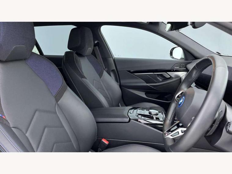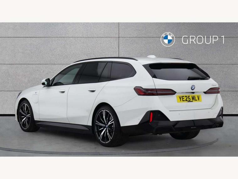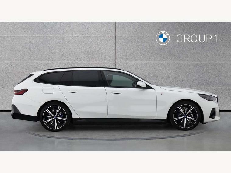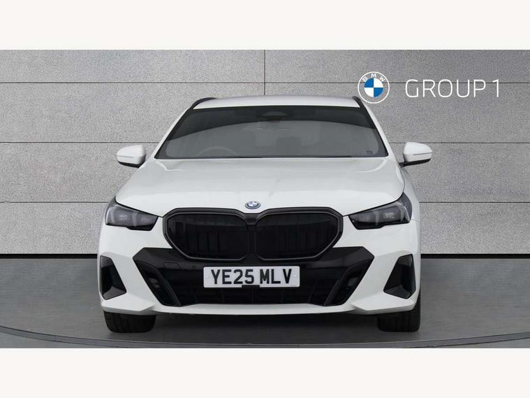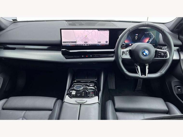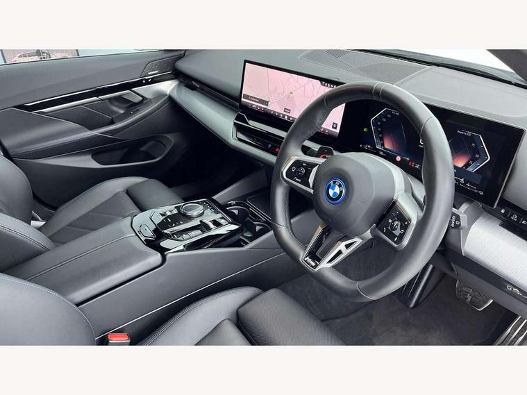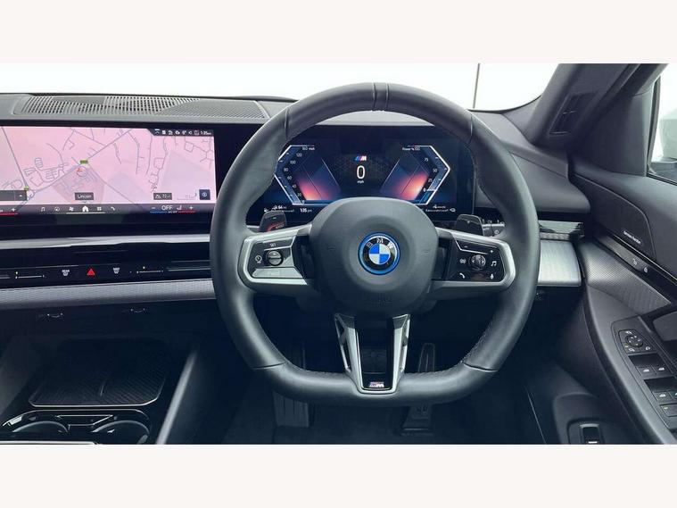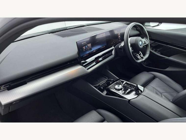 Automatic tailgate operation, BMW ConnectedDrive online services, BMW Iconic sounds electric, BMW legal emergency call, BMW Teleservices, Brake pad wear indicator, Cruise control with brake assist, Driving Assistant Plus Preparation, Front collision warning with brake intervention, Lane departure warning with active return, Left turn warning with brake function, Multifunctional instrument panel, Oil sensor for level and grade, On board computer inc. average speed, fuel consumption, liquid crystal Info display, journey computer, outside temperature display, personal profile, On-board diagnosis - OBD, PAS, Personal e-SIM, Powered by Operating System 7.0, Run flat indicator, Service interval indicator, Speed limit Info with manual speed limit assist, Stop/start button, 8 speed automatic steptronic transmission with gearshift paddles, AC charging cable professional (mode 3) for public charging, Expert mode, Launch control, DAB tuner, Acoustic glazing, Adaptive LED Headlights, Automatic cornering lights, Automatic windscreen wipers and automatic headlight, BMW selective beam, Body colour door handles, Body coloured bumpers, Dynamic brake lights with LED technology, Electric adjustable door mirrors, Electric front and rear windows with fingertip open/close + anti-trap facility and comfort closing function, Follow me home headlight function, Headlight elements in blue, Heated windscreen washer jets, LED daytime running lights, LED third brake light, Light colour close to that of ordinary daylight, M high gloss shadow line with extended contents - Radiator grille frame, struts and strip in rear light, M light shadowline - Dark design of selected elements of the headlight and rear lights, M rear spoiler, Optimum, homogeneous illumination of the road, Rear side wing doors, Rear wiper, 2 zone automatic air conditioning, 3 seat bench in 2nd row, 3 spoke leather M steering wheel in BMW M specific design with M badge, Armrest - front and rear integrated door trim, centre console includes storage compartment, rear centre includes 2 cupholders, Child seat ISOFIX attachment with rear outer seats includes top tether, Electric adjustable front sports seats, Electric adjustable steering column, Electrically adjustable lumbar support for driver and front passenger, Heated driver and front passenger seats, High-gloss black door switch cluster, power window switch and tailgate button on first and second row seat, M Anthracite headlining, M Sport pedal covers in stainless steel, Rear headrests, Single front passenger seat, Through loading system with 40/20/40 rear seat backrest split, Velour floormats, Wireless charging tray, Ambient lighting pack - 5 Series/I5, BMW Iconic glow kidney grille exterior package, Connected package professional - 5 Series/I5, Driving assistance pack - 5 Series/I5, Expanded exterior mirror package - 5 series/I5, M high gloss shadow line pack - 5 Series/ I5, M Sport exterior styling pack - 5 Series/I5, 3 rear three point seatbelts, Active protection, Airbag deployment is controlled with respect to the intensity and scope, Anti-lock braking system (ABS), Brake assist, Brake energy regeneration, Cornering brake control (CBC), Crash sensor activating central locking release, hazard warning lights, fuel cut off and interior lighting, Driver and front passenger airbags, Driver central airbag, Driver/front passenger side airbags, DSC - Dynamic Stability Control, Dynamic brake control, Dynamic Traction Control - DTC, Electromechanical parking brake with automatic drive away release and auto hold function, Electronic brake force distribution, Engine drag torque control, Front and rear brake discs with interior ventilation, Front and rear curtain airbags, Front head restraints with anti-whiplash, Head airbags for first and second row seats, Hill start assist, Locking of doors after driving off, M seat belts, Mechanical child proof lock on rear doors, PC iBrake PostCrash approach control warning with light braking function, Side impact protection, Trailer stability control, Two tone horn, Tyre pressure monitoring system, Warning triangle and first aid kit, Alarm system, Locking wheel bolts including wheel bolt adapter, Tyre repair kit,