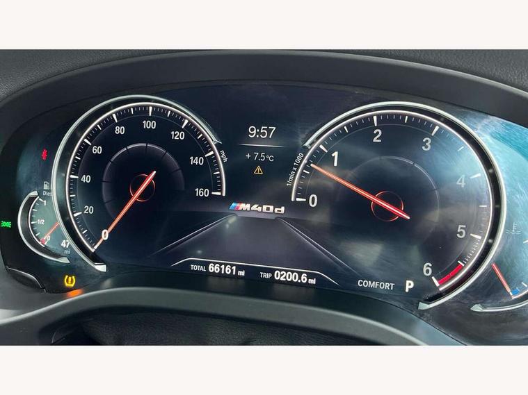 Active Guard incl speed limiting and lane departure functions with auto steering, and front collision warning with brake intervention, Attentiveness assist, Auto start-stop, Automatic tailgate operation, BMW Online services, BMW professional navigation with 10.25" touch display, BMW remote services, BMW Teleservices, Brake pad wear indicator in front and rear, Check Control warning system for monitoring of lights and door/luggage compartment open warning, Condition based service, Exterior temperature gauge, iDrive Controller with 8 favourite buttons, Instrument cluster with speedometer with mph readout, tachometer, fuel gauge and oil temperature gauge, Keyless ignition with push button start, Lights on warning, On board computer, Optimum shift indicator, Personal Profile, RTTI - Real time traffic information, Run flat indicator, Service interval indicator, Speed limiter, Trip computer, Variable sports power steering, Diesel particulate filter, Drive performance control with ECO PRO comfort + sport mode, M Sport differential, Performance Control, Sport automatic transmission, Bluetooth audio streaming, BMW professional radio/CD/MP3, DAB Digital radio, Body colour door handles, Body colour roof mouldings, Body coloured bumpers, Cerium grey air breather, Cerium grey air inlets, Cerium grey exterior mirror caps, Cerium grey frame and kidney grille with high gloss black vertical slats, Direction indicator side lights integrated exterior mirrors, Dynamic brake lights, Fingertip control / anti-trap function on electric window, Front and rear bumper system, Front and rear electric windows, Green tinted heat insulating glass, Heated windscreen washer jets, Height adjustable headlamps, High gloss black door sill finishers, High gloss shadow line exterior trim, Interior rear view electrochromatic mirror with automatic anti dazzle function, LED daytime running lights, LED fog lights, LED High level third brake light, LED Indicators, LED tail lights, M aerodynamic bodystyling, Rain sensor including auto headlights activation, Shark fin antenna, Twin Trapezoidal tailpipes, Visible VIN plate, Welcome light carpet, Windscreen wipers with adjustable interval, 12V socket in centre console and luggage area, 3 zone automatic air conditioning, Ambient lighting, Anthracite headlining, Bottle holders integrated into door, Centre console storage tray, Cupholders in centre console, Driver/passenger sunvisors with ticket holders + illuminated vanity mirrors, Front and rear door armrests, Front centre armrest with storage compartment, Front cupholders x 2, Front footwell lights, Front sports seats, Front/rear courtesy lights with soft on/off dimming, Front/rear reading lights, Gearshift paddles on steering wheel, Height adjustable front/rear head restraints, Isofix rear child seat preparation, Leather gear knob, Luggage area underfloor compartment, Luggage compartment lighting, M Sport multifunction leather steering wheel, Reach + rake adjustable steering column, Rear centre armrest with 2 cupholders, Removable rear parcel shelf, Storage pockets - front doors, Through loading system with 40/20/40 split folding rear seat, Toolkit located in luggage compartment, Visibility pack - X4, 3 rear 3 point seatbelts, ABS/EBD, ADB - Automatic Differential Brake, Automatic door lock when driving away, Automatic Stability Control (ASC), Battery safety cut-off, BMW emergency call, Brake drying, Brake energy regeneration, Braking pre-tensioning, CBC - (Cornering brake control), Child proof locking system in rear door, Crash Sensor - activates hazard/interior lighting + unlocks doors, Driver/front passenger airbag, Driver/front passenger side airbags, DSC - Dynamic Stability Control, Dynamic brake control, Dynamic Traction Control - DTC, Electromechanical parking brake, Front and rear head airbags, Front and rear pre-tensioning and force limiting seatbelts, Front passenger airbag deactivation, Front seat belts warning, Hill descent control, Hill start assist, M Sport braking system, Side impact protection, Tyre pressure monitoring system, Ventilated front and rear disc brakes, Warning triangle and first aid kit, Central locking switch for all doors, fuel filler cap and luggage compartment, Engine immobiliser, Incorrect fuel protection system, Remote control including two integrated key - one button for open/close all lockable content, windows and separate button for open luggage compartment, Remote control Thatcham category 1 alarm, Start/stop button with comfort go keyless engine start and auto start stop deactivation button, Reduced rolling resistance tyres,