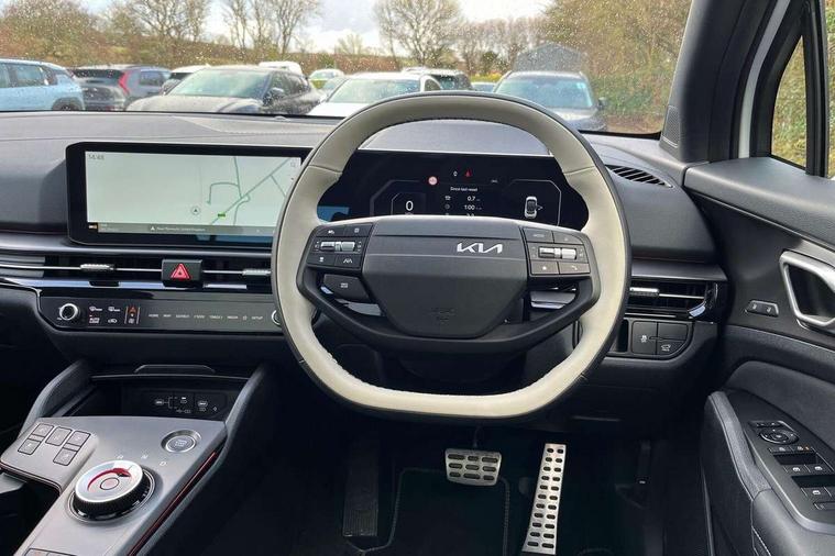 12.3" Driver display screen, 12.3" Touchscreen navigation system, 360 degree around view monitor, Blind spot collision avoidance assist, Blind spot view monitor, Bluetooth connection, Customisable head-up display, Digital key 2.0, Drive mode selector, Driver attention warning, E-call, Emergency stop signalling system, Forward collision avoidance assist 2.0, Front and rear parking sensors, Highway Driving Assist (HDA 2.0), Intelligent speed limit assist, Kia Connect (UVO), Lane Following Assist (LFA), Lane keep assist, Low washer fluid warning, Motor driven power steering, Over the air (OTA) functionality, Parking collision avoidance assist (PCA), Rear cross traffic collision avoidance assist (RCCA), Reversing camera, Safe exit warning (SEW), Smart cruise control with stop and go functionality, Smart power tailgate, Speed limiter, Trip computer, Windscreen washer level indicator, Wireless apple car play/android Auto, Wireless Smartphone charger, DAB Radio with MP3, Front passenger 1x USB-C port, Harman Kardon premium sound system with 8 speakers, Rear passenger 2x USB-C port, Steering wheel mounted audio controls, USB-C port for connection of a media device, Auto dimming rear view mirror, Automatic defog system, Automatic headlight control system, Black and body coloured bumpers, Body colour exterior door handles, Body colour radiator upper garnish and door garnish, Dual LED headlights with adaptive driving beam, Electric front and rear windows with front one touch function, Electrically adjustable/heated/folding door mirrors with LED indicators, Front and rear body colour skid plates, Gloss black door mirrors, Gloss black radiator grille, Gloss black wheel arches, Glossy black roof rails, GT-Line exterior styling, Heated rear window, High beam assist, LED daytime running lights, LED front fog lamps, LED High mounted stop light, LED rear lights, Panoramic sunroof with tilting and sliding function with electric blind, Privacy glass in rear windows and tailgate, Rain sensing wipers, Rear fog lamp, Rear roof spoiler, Rear side wing doors, Rear wiper, Satin finished beltline, Silver window surround, Trailer stability assist, 12V power socket in front and luggage compartment, 3 seat bench in 2nd row, 3 x passenger assist grips, 40/20/40 split folding rear seat, All-round height adjustable headrests, Alloy pedals, Automatic air conditioning, Black headlining, Centre console storage box, Cupholders in rear armrest, Customisable ambient lighting, Door courtesy lamps, Driver and front passenger sunvisors with illuminated vanity mirrors, Drivers seat power lumbar support, Electric adjustable driver seat with memory function, Electric adjustable front passenger seat, Front and rear door storage, Front seat and rear pockets, Gear shift indicator, Glovebox, GT-Line Interior Styling, Heated front and outer rear seats, Heated steering wheel, ISOFIX Child seat top tethers and anchor fixings outer rear seats, Leather steering wheel, Leather/suede upholstery, LED front cabin light, LED interior personal lamp, LED lighting in overhead console, LED rear reading lights, Luggage area LED light, Luggage area load cover, Luggage area parcel shelf, Luggage board, Luggage compartment under floor storage, Luggage net hooks, Manual adjust steering wheel, Metal paint interior door handles, Paddle shift controls, Rear air conditioning, Rear cabin light, Rear coat hooks, Single front passenger seat, Ventilated front seats, Ventilation ducts to rear compartment, Active front headrests, All round 3-point seatbelts, Anti-lock braking system (ABS), Dual front side airbags, Dual horn, Dynamic brake control, Electronic parking brake with auto hold function, Electronic stability control with downhill brake control, Front passenger airbag cut-off switch, Front seatbelt pretensioners + load limiters, Height adjustable front seatbelts, Hill start assist control (HAC), Impact sensing auto door unlocking, Multi collision brake assist, Rear airbags, Rear door child safety locks, Rear seat alert system, Seatbelt reminder warning, Traction control, Twin curtain airbags, Twin front airbags, Tyre pressure monitoring system, Vehicle stability management, Customisable automatic door locking, Customisable automatic door unlocking, Door deadlocks, Engine Start/Stop Button with Smart Entry System, Locking wheel nuts, Smart key with motion sensor, Speed sensitive auto door locking, Thatcham category 2 security alarm and immobiliser, Visible vehicle identification number, 18" GT-Line alloy wheels, Tyre mobility kit,