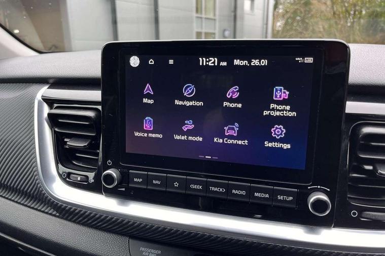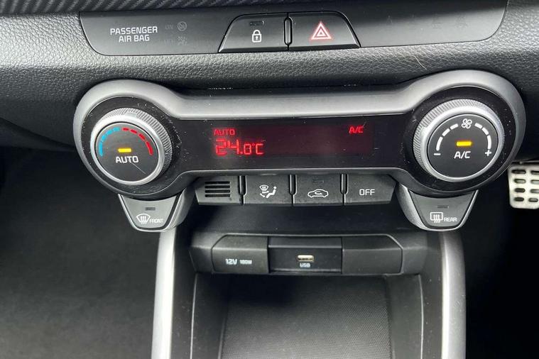 4.2" supervision colour cluster display, 8" touchscreen navigation, Apple car play/Android Auto with voice control, Blind spot collision warning, Cruise control + speed limiter, Drive mode selector, Electric power steering, Emergency call service, Emergency stop signalling system, External temperature display, Forward Collision-Avoidance Assist (FCA) - City/Pedestrian/Cyclist, Front parking sensors, Intelligent speed limit warning, Lane keeping assist system (LKAS), Driver attention warning (DAW) and High beam assist (HBA), Rear parking sensor, Reversing camera system, Trip computer, Intelligent Stop and Go, Audio system with 6 speakers, Bluetooth with music streaming, Front USB port, Steering wheel mounted controls, All round electric windows with drivers auto up/down function, Auto dimming rear view mirror, Automatic defog system, Automatic headlights control, Black side sill, door garnish and wheel arch trims, Black/body colour bumpers, Body coloured exterior door handles, Chrome side window trim, Electrically adjustable/heated/folding door mirrors with LED indicators, Front and rear silver skid plates, Gloss black door mirrors with matt black lower housing, GT-Line body kit, Headlight levelling device, Heated rear window, High gloss black and satin radiator grille, LED Bi-function projection headlights with static bending, LED daytime running lights, LED front fog lights, LED position light, LED rear combination lights, Privacy glass - Rear windows and tailgate, Rain sensing front wipers, Rear fog lights, Rear side wing doors, Rear wash/wipe, Roof coloured rear spoiler with high mounted braking light, Roof rails, Shark fin antenna, Solar windshield glass, Speed variable front aeroblade wipers, Tinted glass, Welcome and follow-me home light functionality, Windscreen Washer Level Warning, 12V power point front, 3 seat bench in 2nd row, 60/40 split folding rear seat, Air filter, All-round height adjustable headrests, Aluminium pedals, Automatic air conditioning, Centre armrest storage box, Centre console with cupholders, D-Cut perforated leather trimmed steering wheel, Dash illumination dimmer switch, Driver's seat height adjuster, Front and centre cabin lights, Front and rear door map pockets with bottle holder, Gear shift indicator, Glovebox illumination, GT-Line cloth/faux leather upholstery, Heated front seats, Heated steering wheel, ISOFIX Child seat top tethers and anchor fixings outer rear seats, Leather trimmed gearshift, Luggage area light, Luggage area parcel shelf, Luggage net, Luggage net with hooks, Overhead console lamp, Overhead console with sunglasses cases, Passenger front seatback pockets, Passenger seat height adjuster, Rear USB charging port, Satin chrome interior door handles, Single front passenger seat, Sunvisors with vanity mirror illumination (Driver and front passenger), Tilt/telescopic adjustable steering wheel, ABS with Electronic Brakeforce Distribution (EBD) and Brake Assist System (BAS), All round 3-point seatbelts, Electronic stability control (ESC) and vehicle stability management (VSM), Front passenger airbag cut-off switch, Front seatbelt pretensioners + load limiters, Height adjustable front seatbelts, Hill start assist control (HAC), Impact sensing auto door unlocking, Manual child lock in rear doors, Rear seat Occupancy alert, Seatbelt reminder warning, Twin curtain airbags, Twin front airbags, Twin front side airbags, Tyre pressure monitoring system, Alarm system, Door deadlocks, Engine immobiliser, Locking wheel nuts, Smart key with engine start/stop button, Speed sensitive auto door locking, Visible vehicle identification number, High gloss black centre fascia, 17" GT-Line alloy wheels, Tyre mobility kit,