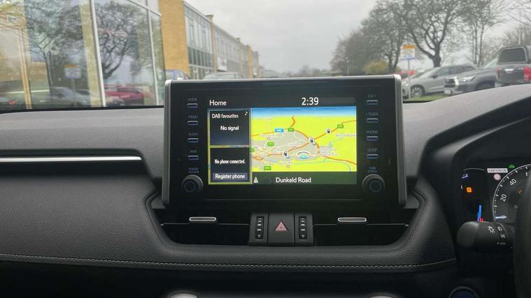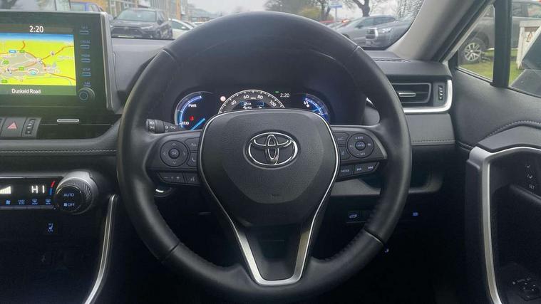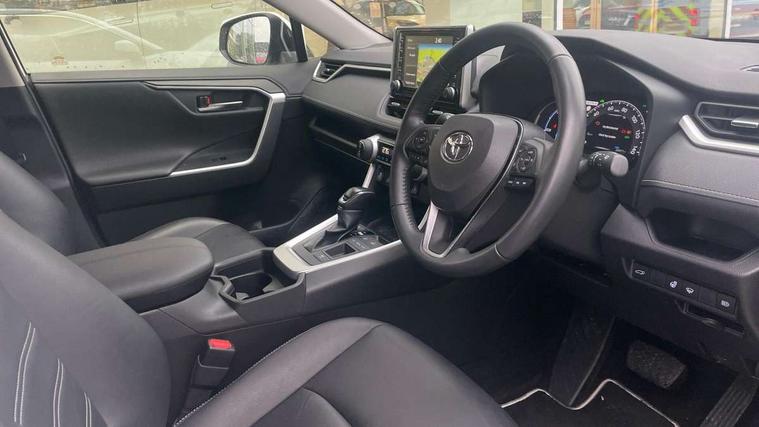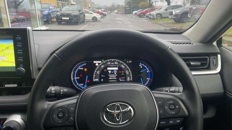 7" colour TFT display, Adaptive cruise control with lane trace assist, Adjustable speed limiter, Apple car play and Android auto, Blind spot monitoring with rear cross traffic alert, Bluetooth system, Cyclist Detection, Drive mode selector, eCall emergency call system, ECO-driving indicator, Electric power steering, EV audible alert, Hybrid system indicator, Lane departure warning system, Lights on warning, Low screen washer fluid warning, Night Time Pedestrian Detection, Pedestrial detection, Power boot opening and closing, Rear parking camera, Rear parking sensors, Remote boot door release in cabin, Tachometer, Touch 2 Go navigation system including 3D maps and voice control, Traffic sign recognition, Trip computer, Voice control system, Vehicle Stability Control (VSC), 6 speakers, 8" Multimedia display touch screen, Auxiliary socket for external MP3 player, DAB audio, Steering wheel mounted audio controls, Toyota touch media system, USB connection, Auto dimming interior mirror, Auto high beam, Automatic headlamp levelling, Automatic headlights, Automatically retractable door mirrors, Black roof rails, Body colour door handles, Body colour door mirrors, Body colour rear spoiler, Body coloured bumpers, Body coloured Shark-fin antenna, Door mirror puddle lights, Electric adjustable door mirrors, Emergency brake-light signal (EBS), Follow me home headlights, Front fog lights, Headlight cleaners, Heated door mirrors, LED daytime running lights, LED High mounted stop lamp, LED rear lights, Meshed upper front grille, Power front windows, Power rear windows, Privacy glass, Projector LED headlights, Rear screen wiper - intermittent, Rear windscreen defogger, Silver front under-run, Silver rear under-run, Trailer sway control, Turning signal integrated indicators in door mirrors, Windscreen wiper de-icer, 3 rear headrests, 60/40 split fold rear seat back, Boot light, Clean air filter, Driver and front passenger personal light, Driver and front passenger Whiplash Injury Lessening seats, Driver and passenger sunvisors with illuminated vanity mirrors, Driver seat memory function, Dual sided deck board in boot, Dual zone automatic air conditioning, Floor mats, Folding rear centre armrest, Front and rear bottle holders, Front centre armrest, Front footwell lights, Front headrests, Front seat and rear pockets, Front/rear roof mounted assist grips, Grey roof lining, Heated driver and front passenger seats, Heated steering wheel, Isofix child seat preparation, Leather gear shift with chrome surround, Leather upholstery, Light blue ambient lighting on front cupholders and open tray, Manual telescopic and tilt 3-spoke leather steering wheel with Chrome insert, Manually reclining and sliding front passenger seat, Pollen filter, Power height-adjustable sliding reclining and lumbar support for driver seat, Rear coat hooks, Rear door armrests, Rear passenger air vents, Reclining rear seats, Satin chrome interior door handles, Sunglasses holder, 3x3 point rear seatbelts, ABS/EBD, Adjustable front driver and passenger seat belt extender, Brake assist function, Child proof door locks, Collision mitigation braking system, Driver/Front Passenger airbags, Driver/front passenger side airbags, Drivers knee airbag, Electronic parking brake, Electronic Stability Programme (ESP), Emergency brake light system (EBS), Front and rear curtain airbags, Front and rear seatbelt reminder, Hill start assist, Passenger airbag cut-off device, Seatbelt pretensioners with load limiters, Traction control, Tyre pressure warning, Alarm/immobiliser, Glass-breaking alarm sensors, Light - on and Key in reminder, Remote central locking, Smart entry + Smart start, Speed sensitive auto door locking, Tilt detection sensors, Piano black centre console with silver insert, Soft-touch black lower dashboard, Soft-touch black upper dashboard with silver insert, Full size spare wheel,